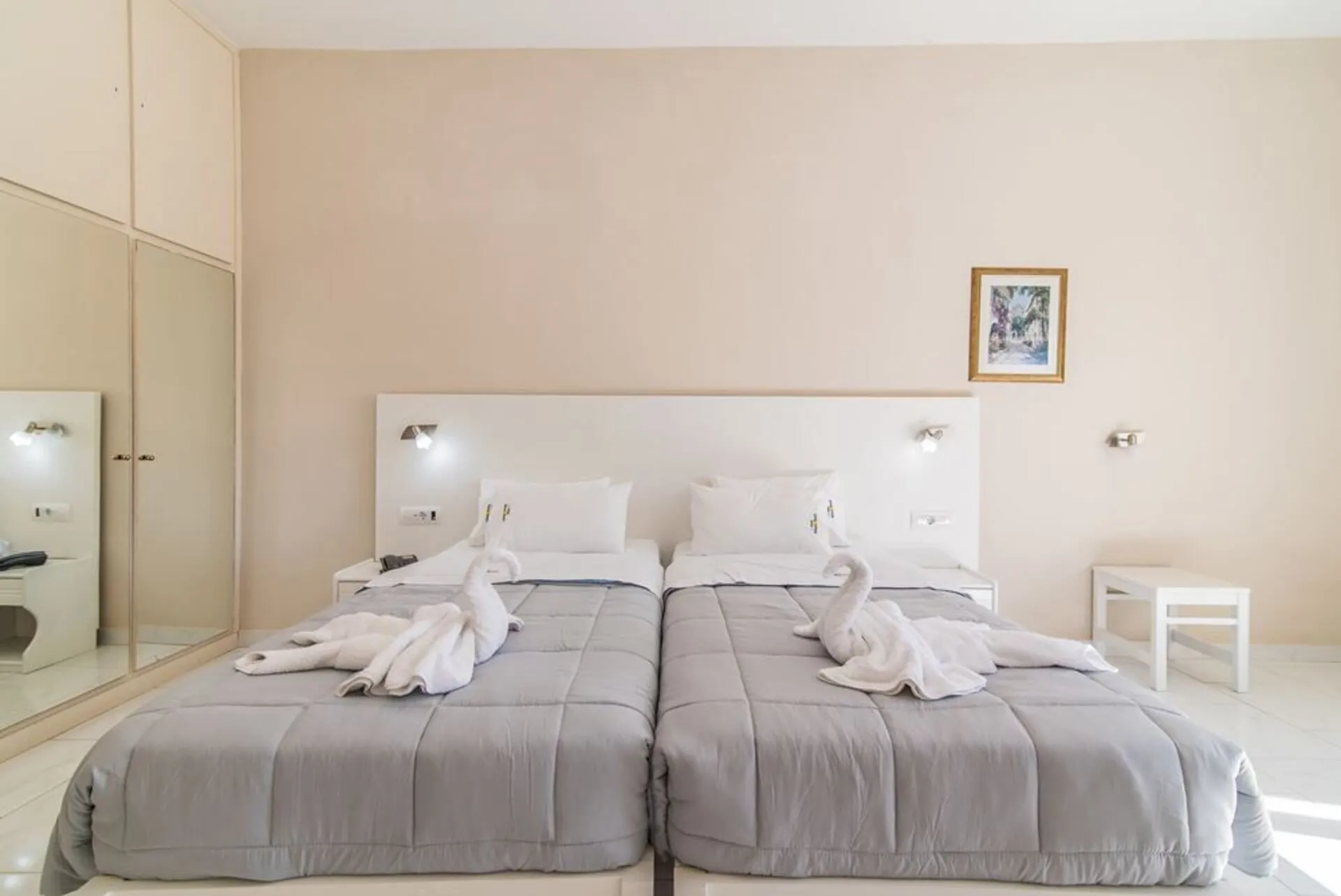 The accommodation Belussi Beach Hotel & Suites is around 4 km from the city centre. There is a shuttle service between the hotel and the airport. On the beach are sun loungers available. The hotel is equipped with a 24h reception (check-in is possible around the clock), a lobby bar, Wi-Fi (for a fee), internet access, a hairdresser, parking spaces as well as a TV lounge. In the outdoor area you will find a pool (open all year). Your valuables can be stored in the hotel safe (extra fee). There is also a laundry service available at an additional cost to customers. If you want to explore the holiday region, you can use the car rental service close to the hotel (extra fee). Pets like cats and dogs are allowed in the hotel (for a fee). Catering Breakfast is offered from the buffet. Dinner is served à la carte. Your physical well-being is catered for by the pool bar. Distances