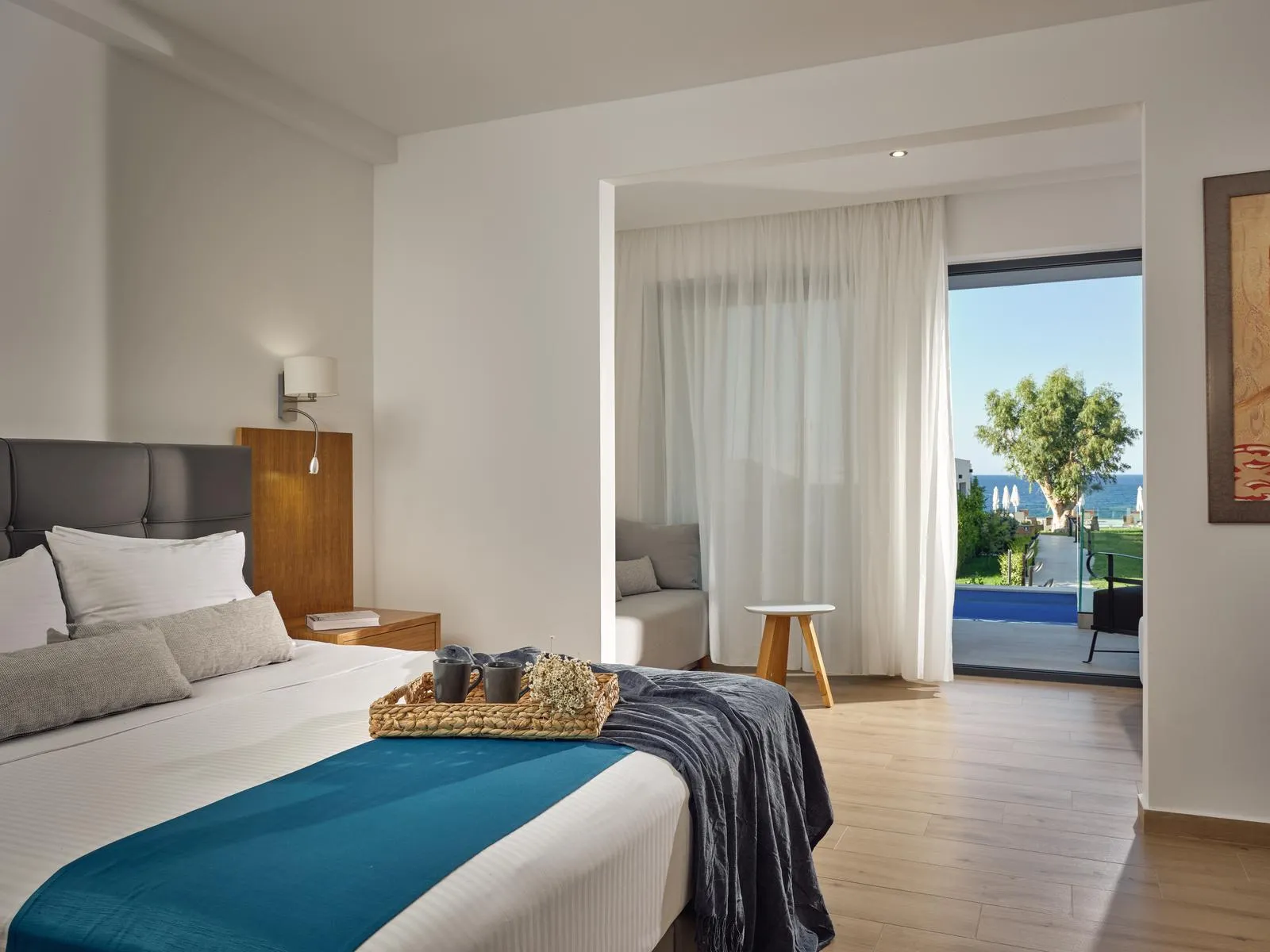 Visa and Euro / MasterCard. Junior Suite (Shared Pool): The rooms with one bedroom are equipped with king size bed, 2 extra beds (sofa bed), baby cot (for a fee), tiled floor, kettle (for free), shared pool, internet (for free), safe (for free) and flat screen sat TV as well as individually adjustable air conditioning (from May to October) and individually adjustable heating (from May to October). Bathroom with shower (room size: 35 m²). Towels are changed 3 times a week (free of charge). Bed linen is changed 2 times a week (free of charge). Standard Junior Suite (Pool-Sea View): The rooms with one bedroom are equipped with king size bed, 2 extra beds (sofa bed), baby cot (for a fee), tiled floor, kettle (for free), internet (for free), safe (for free) and flat screen sat TV as well as individually adjustable air conditioning (from May to October) and individually adjustable heating (from May to October). Bathroom with shower (room size: 35 m²). Towels are changed 3 times a week (free of charge). Bed linen is changed 2 times a week (free of charge). Double Deluxe Room: The rooms with one bedroom are equipped with king size bed, baby cot (for a fee), tiled floor, kettle (for free), internet (for free), safe (for free) and flat screen sat TV as well as individually adjustable air conditioning (from May to October) and individually adjustable heating (from May to October). Bathroom with shower (room size: 30 m²). Towels are changed 3 times a week (free of charge). Bed linen is changed 2 times a week (free of charge). Superior Room (Shared-PoolTerrace): The rooms with one bedroom are equipped with king size bed, baby cot (for a fee), tiled floor, kettle (for free), shared pool, internet (for free), safe (for free) and flat screen sat TV as well as individually adjustable air conditioning (from May to October) and individually adjustable heating (from May to October). Bathroom with shower (room size: 30 m²). Towels are changed 3 times a week (free of charge). Bed linen is changed 2 times a week (free of charge). Suite (Seaside): The rooms with one bedroom are equipped with king size bed, 2 extra beds (sofa bed), baby cot (for a fee), tiled floor, kettle (for free), balcony, internet (for free), safe (for free) and flat screen sat TV as well as individually adjustable air conditioning (from May to October) and individually adjustable heating (from May to October). Bathroom with shower (room size: 40 m²). Towels are changed 3 times a week (free of charge). Bed linen is changed 2 times a week (free of charge). Suite (Seaside, Honeymooners): The rooms with one bedroom are equipped with king size bed, 2 extra beds (sofa bed), baby cot (for a fee), tiled floor, kettle (for free), capsule coffee machine (for free), private pool, internet (for free), safe (for free) and flat screen sat TV as well as individually adjustable air conditioning (from May to October) and individually adjustable heating (from May to October). Bathroom with shower (room size: 40 m²). Towels are changed 3 times a week (free of charge). Bed linen is changed 2 times a week (free of charge). Suite (Seaside, Private Pool ): The rooms with one bedroom are equipped with king size bed, 2 extra beds (sofa bed), baby cot (for a fee), tiled floor, kettle (for free), capsule coffee machine (for free), private pool, internet (for free), safe (for free) and flat screen sat TV as well as individually adjustable air conditioning (from May to October) and individually adjustable heating (from May to October). Bathroom with shower (room size: 40 m²). Towels are changed 3 times a week (free of charge). Bed linen is changed 2 times a week (free of charge). Deluxe Suite (Private Pool ): The rooms with one bedroom are equipped with king size bed, 2 extra beds (sofa bed), baby cot (for a fee), tiled floor, kettle (for free), private pool, internet (for free), safe (for free) and flat screen sat TV as well as individually adjustable air conditioning (from May to October) and individually adjustable heating (from May to October). Bathroom with shower (room size: 40 m²). Towels are changed 3 times a week (free of charge). Bed linen is changed 2 times a week (free of charge). Deluxe Suite (SeaView): The rooms with one bedroom are equipped with king size bed, 2 extra beds (sofa bed), baby cot (for a fee), tiled floor, kettle (for free), balcony, internet (for free), safe (for free) and flat screen sat TV as well as individually adjustable air conditioning (from May to October) and individually adjustable heating (from May to October). Bathroom with shower (room size: 40 m²). Towels are changed 3 times a week (free of charge). Bed linen is changed 2 times a week (free of charge). Luxury Suite (Shared-PoolTerrace): The rooms with one bedroom are equipped with king size bed, 2 extra beds (sofa bed), baby cot (for a fee), tiled floor, kettle (for free), shared pool, internet (for free), safe (for free) and flat screen sat TV as well as individually adjustable air conditioning (from May to October) and individually adjustable heating (from May to October). Bathroom with shower (room size: 40 m²). Towels are changed 3 times a week (free of charge). Bed linen is changed 2 times a week (free of charge). Luxury Suite (SeaView): The rooms with one bedroom are equipped with king size bed, 2 extra beds (sofa bed), baby cot (for a fee), tiled floor, kettle (for free), balcony, internet (for free), safe (for free) and flat screen sat TV as well as individually adjustable air conditioning (from May to October) and individually adjustable heating (from May to October). Bathroom with shower (room size: 40 m²). Towels are changed 3 times a week (free of charge). Bed linen is changed 2 times a week (free of charge). Please be informed that after several incidents of room damages caused by guests in our hotel's rooms,we are obligated to introduce a damage deposit policy. Upon arrival guests will be required to provide a credit card for a pre-authorization of 30