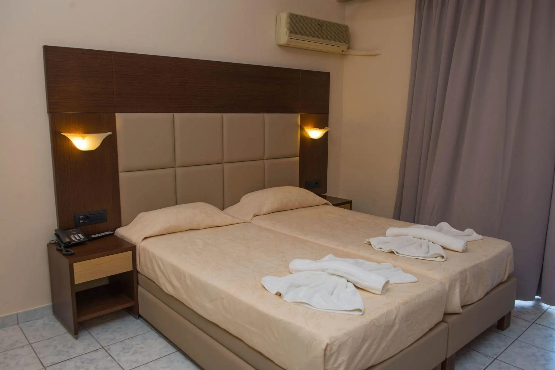 Descriere generală Hotelul Alexander The Great este situat la cca. 450 m de o plajă privată cu nisip. Pe plajă sunt disponibile umbrele de soare și șezlonguri la un cost suplimentar. Orașul Zakynthos este la aprox. 6 km. Veți găsi un supermarket la cca. 500 m. Cele mai apropiate baruri și restaurante sunt la cca. 300 m distanță. O discotecă aflată la aprox. 300 m vă invită la dans. Există posibilitatea de a închiria mașini și motociclete. De asemenea, aveți în apropiere o stație de autobuz (cca. 500 m) cea ce vă garantează mobilitatea pe insulă. Pentru îngrijiri medicale în caz de urgență, există un spital la cca. 8 km distanță. Facilități Resortul, care a fost renovat parțial în 2018, dispune de 4 etaje și peste 159 camere repartizate între o clădire principală și un total de 7 clădiri secundare. Acesta oferă oaspeților săi recepție (check-in de la 15:00, check out până la 11:00), lobby cu bar, un total de 4 lifturi, aer condiționat, seif (contra cost), minimarket, Sky-Bar (deschis între orele 09:00 - 00:00) și parcare (gratuită). O masă savuroasă va așteapta la unul dintre cele 3 restaurante a hotelului. Accesul la internet WiFi este disponibil gratuit pentru oaspeții hotelului. Pentru oaspeții care depind de un scaun cu rotile, hotelul oferă un lift accesibil pentru scaune cu rotile și acces fără bariere. Călcat și serviciul de concierge sunt gratuite. Spălătorie și serviciul medical sunt disponibile la un cost suplimentar. Este posibil să se perceapă un cost suplimentar pentru serviciul de menaj. Piscină În grădinile modernului hotelul există o piscină cu apă dulce precum și o piscină separată pentru copii (deschisă din aprilie până în octombrie). Acolo sunt disponibile gratuit șezlonguri și umbrele de soare. La barul de la piscină sunt disponibile băuturi răcoritoare (deschis între orele 09:00 - 00:00). Catering Mic dejun (între orele 07:30 - 10:30) bufet suedez. All Inclusive: micul dejun, prânzul și cina. Micul dejun, prânzul și cina pot fi servite numai în anumite restaurante. Apă și cocktailuri. Băutură de bun venit, mic dejun târziu (între orele 10:30 - 12:00), băuturi răcoritoare (09:00 - 23:00), cafea și ceai (17:00 - 18:00), prăjituri și produse de patiserie (17:00 - 18:00), aperitive (15:00 - 17:00), bere (09:00 - 23:00), vin (09:00 - 23:00), băuturi alcoolice naționale (09:00 - 23:00), anumite băuturi alcoolice importate (între orele 09:00 - 00:00, limitate în anumite restaurante sau baruri), 1 masă în restaurantul à la carte, internet gratuit și service 24h. Este posibil check-in mai devreme și check-out mai târziu (în funcție de disponibilitate). Sport/Leisure Oferte pentru sport și divertisment: Biliard (contra cost), fitness, yoga, Pilates și aerobic. La cca. 400 m de hotel, sunt oferite sporturi nautice (unele de către furnizori locali). Există serviciu de închiriere de biciclete. Oferte de wellness: Baie turcească și hamam contra cost. Zonă de spa, saună, jacuzzi și masaje posibil contra cost. Divertisment pentru adulți: program de animație cu spectacole de seară și muzică live. Îngrijirea copiilor: program de animație pentru copii (de la 0 - 12 ani) și babysitting (contra cost). Informații suplimentare Pentru anumite facilități sau activități se pot aplica taxe suplimentare. Unele servicii depind de anotimp și de condițiile climatice locale. Limba de serviciu: engleză. Carduri de credit: American Express. Unele servicii sau oferte pot fi utilizate doar într-o măsură limitată sau pot fi complet închise din cauza noilor protocoale de sănătate COVID19. Se pot aplica modificări fără informare prealabilă. Standard Familienzimmer: Cameră cu pat francez, pat twin sau pat single, o canapea extensibilă ca pat suplimentar, pat pentru bebeluși (gratuit), încălzire reglabilă individual, ceainic (gratuit), balcon, acces la internet (gratuit), seif (contra cost) și TV cu ecran plat prin satelit precum și aer condiționat reglabil individual (din aprilie până în octombrie, contra cost). Doppel Standard Zimmer: Cameră cu pat francez, pat twin sau pat single, o canapea extensibilă ca pat suplimentar, pat pentru bebeluși (gratuit), încălzire reglabilă individual, ceainic (gratuit), balcon, acces la internet (gratuit), seif (contra cost) și TV cu ecran plat prin satelit precum și aer condiționat reglabil individual (din aprilie până în octombrie, contra cost).