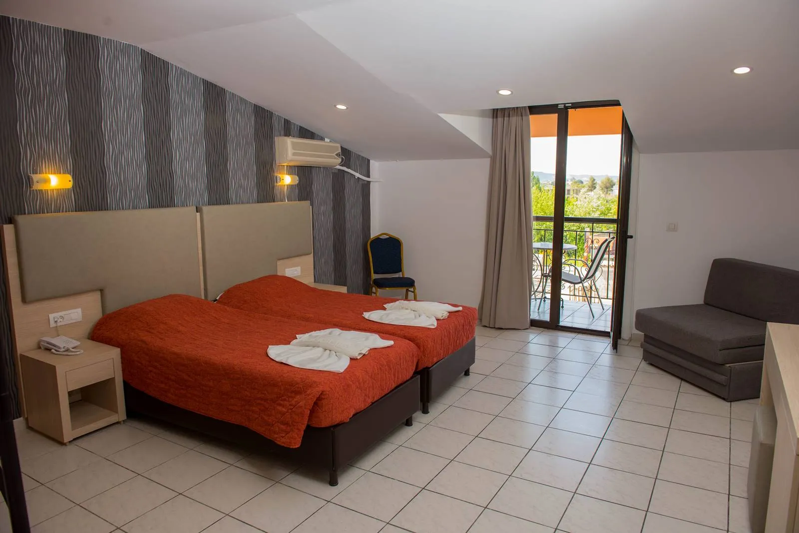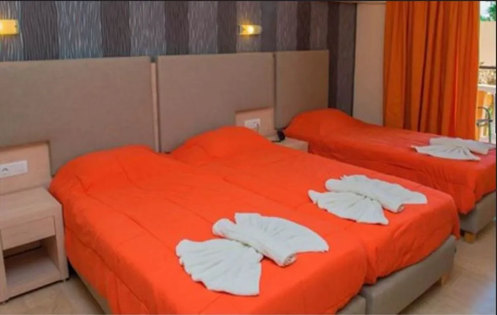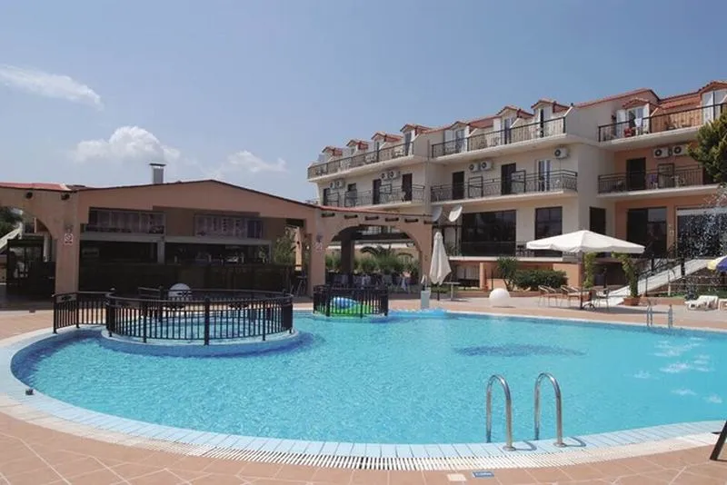 The hotel is situated in Laganas area, the most popular summertime holiday resort on the island. It is convenience at the utmost, with Lagana's unbeatable nightlife on the doorstep, only five minutes' walk, but also far enough in order sleep to be undisturbed. The centre of Laganas offers plenty of choices for nightlife and the famous bay, where the guests can admire Caretta-Caretta, is also very close. The group maintains the traditional colours of Zakynthos. The 175 comfortable rooms offer a range of facilities in a warm and hospitable environment. Its privileged position is ideal for demanding travellers who wish to relax and explore the island. This is the ideal choice for someone who wishes to combine relaxation with entertainment. The air-conditioned establishment welcomes guests in a lobby with 24-hour reception and check-out service. Facilities on offer to guests include a hotel safe, currency exchange facilities, lift access, a newspaper stand, children's playground, café, bar and a restaurant. Internet access is available at the hotel. All rooms provide either a balcony or a terrace with a pool view, garden view, or sea view. They feature individually regulated air conditioning (at extra charge, paid locally), a direct dial telephone, fridge, safe deposit box and bath amenities. The en suite bathrooms are fitted with a shower, bath and hairdryer. A satellite/cable TV and a kitchenette also come as standard. The hotel offers 3 outdoor swimming pools and a children's swimming area. Guests may also like to relax in the sauna (at extra charge, paid locally). There is a poolside snack bar where refreshments, drinks and meals are served. A breakfast buffet is served each morning. Location:1990 Year of construction; 2009 Year of most recent renovation; 175 Total number of rooms Hotel type:hotel Methods of payment:American Express; EC; JCB; Diners Club; MasterCard; Visa Distances (in meters):City centre (200); Airport (3000); Harbour (7000); Beach (280); Entertainment Area (200) Facilities:Wheelchair-accessible; Car park; 24-hour reception; Check-in hour; Check-out hour; Wi-fi; Air conditioning in public areas; Hotel safe; Currency exchange facilities; Lift access; Newspaper stand; Supermarket; Garden Catering:Café; Bar; Restaurant; Non-smoking area; Air conditioning in Restaurant Entertainment:Sun loungers; Parasols; Children playground Health:Sauna