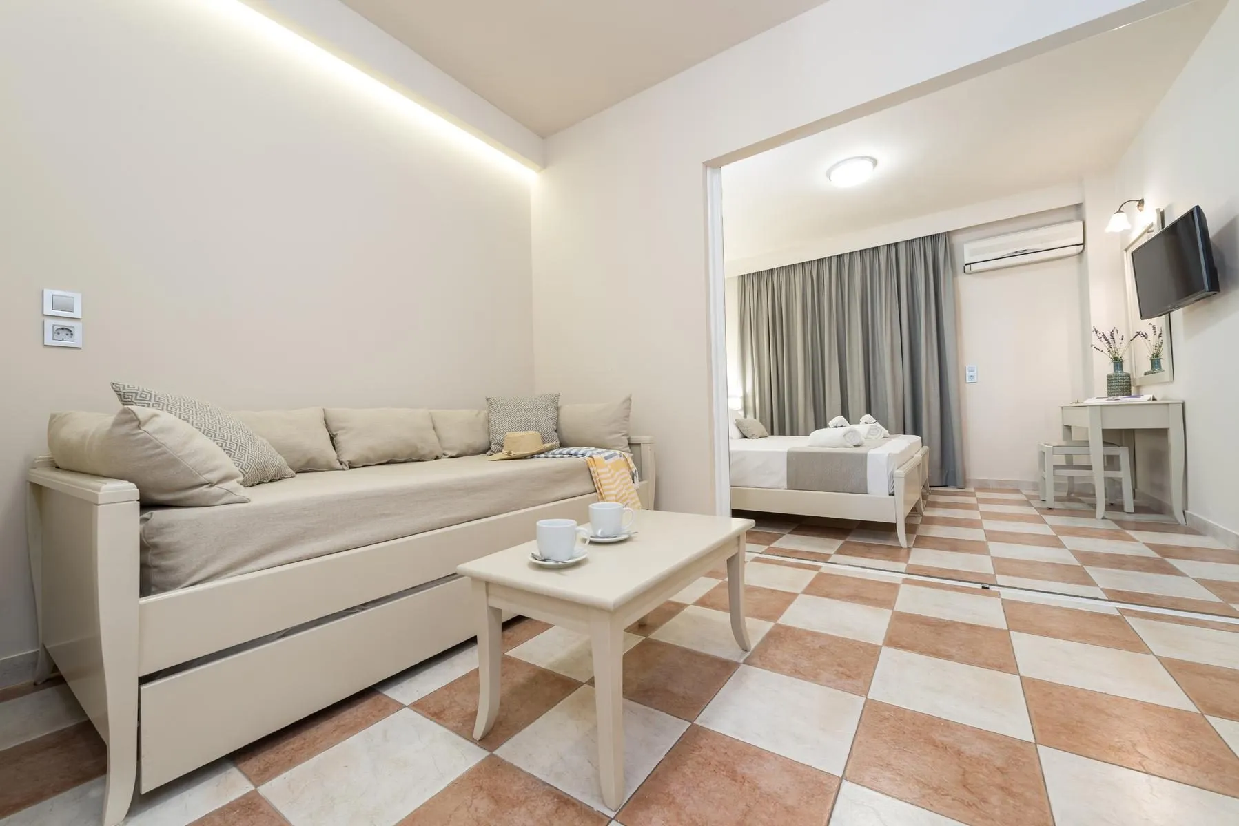 Euro / MasterCard and Visa. Double Room: With double bed or twin bed, balcony or terrace, kettle (for free), internet (for free), safe (for free) and flat screen TV as well as individually adjustable air conditioning. Bathroom with shower (room size: 18 m²). Towels are changed 2 times a week. Superior Room (Balcony or Terrace): With double bed or twin bed, balcony or terrace, kettle (for free), internet (for free), safe (for free) and flat screen TV as well as individually adjustable air conditioning. Bathroom with shower (room size: 28 - 30 m²). Towels are changed 2 times a week.