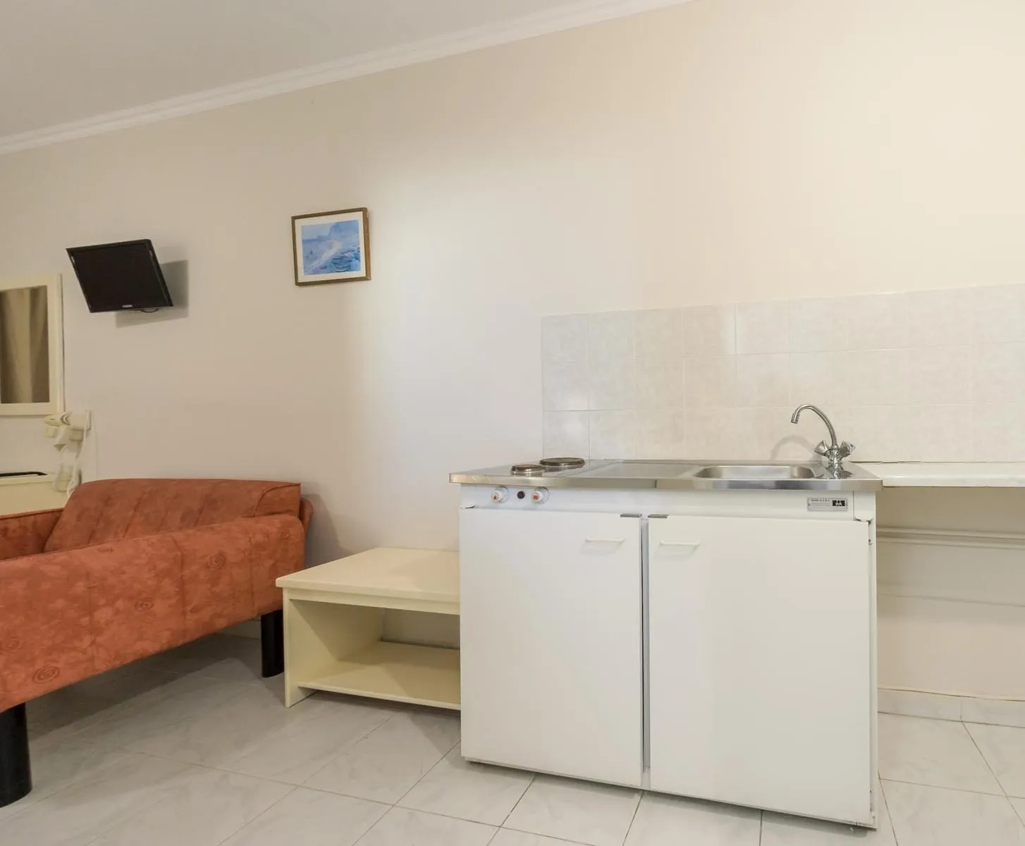 Descriere generală Hotelul Karras Livin este situat in Laganas, la cca. 450 m de o plajă cu nisip. Centrul turistic al stațiunii se află la aprox. 400 m. Orașul Zakynthos este la aprox. 6 km (Tsilivi cca. 9 km). Veți găsi un supermarket la cca. 200 m. La cele mai apropiate baruri și restaurante se poate ajunge, de asemenea, într-un timp foarte scurt. O discotecă aflată la aprox. 700 m vă invită la dans. De asemenea, la cca. 6 km de hotel este un cinematograf. Următoarele atracții pot fi accesate de la hotel: The Church of Agios Dionysios (cca. 6 km), Keri Lake (cca. 7 km) și Turtle Watching (cca. 800 m). Există posibilitatea de a închiria mașini și motociclete. De asemenea, aveți în apropiere o stație de autobuz (cca. 300 m) cea ce vă garantează mobilitatea pe insulă. Pentru îngrijiri medicale în caz de urgență, există un spital la cca. 7 km distanță. Aeroportul (ZTH) se află la aprox. 5 km. Facilități Hotelul dispune de 2 etaje și peste 30 camere repartizate între o clădire principală și o clădire secundară. Acesta oferă oaspeților săi recepție (check-in de la 15:00, check out până la 11:00), lift, aer condiționat și parcare (gratuită). Camerele au fost renovate în detaliu ultima dată în 2024. Accesul la internet WiFi este disponibil gratuit pentru oaspeții hotelului. Serviciul de menaj este gratuit. Piscină În grădinile acestui hotelul decorat în stil mediteranean există o piscină cu apă dulce (deschisă din aprilie până în octombrie). Acolo sunt disponibile gratuit șezlonguri și umbrele de soare. Sport/Leisure Există serviciu de închiriere de biciclete. Oferte de wellness: Masaje contra cost. Informații suplimentare Pentru anumite facilități sau activități se pot aplica taxe suplimentare. Unele servicii depind de anotimp și de condițiile climatice locale. Limbi de serviciu: engleză și greacă. Carduri de credit: Euro/MasterCard și Visa. Studio (Balkon): Dotate cu pat pentru bebeluși (gratuit). Doppel Standard Studio (Terrasse): Dotate cu pat pentru bebeluși (gratuit).