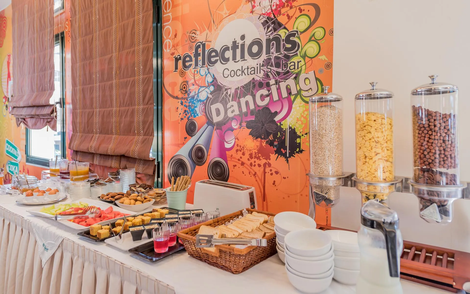 The 3-storey resort consists of a main building and 3 adjoining buildings, and has 48 rooms in total. It offers its guests a reception (check-in from 14:00, check-out until 12:00), a lobby with bar, air conditioning, a safe (for a fee), a free parking area and a money changing facility. For the meals, there is a restaurant and a snack bar. You will be warmly welcomed in both the hotel’s bars. WiFi is available for free. For guests with physical disabilities the hotel has a barrier-free access. Room cleaning is free of charge. Pool: In the outdoor area of the hotel you will find one fresh water pool with a separate children´s pool. Here, there are sun umbrellas and sun loungers for free available.