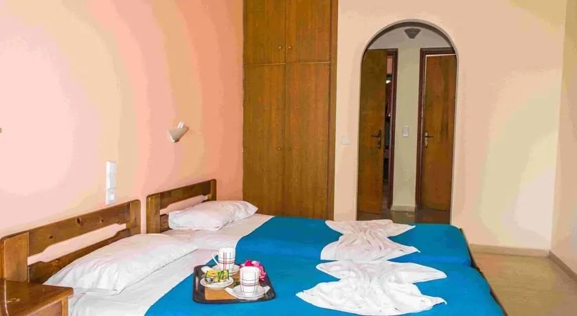 The hotel Savvas Hotel is located approximately 600 m from a beach. The hotel is equipped with a reception, Wi-Fi, a hairdresser as well as parking spaces. Furthermore, you can relax outdoors in the garden. You can store your luggage in the hotel's storage room. There is also a laundry service. If you want to explore the holiday region, you can use the car rental service close to the hotel. Distances
