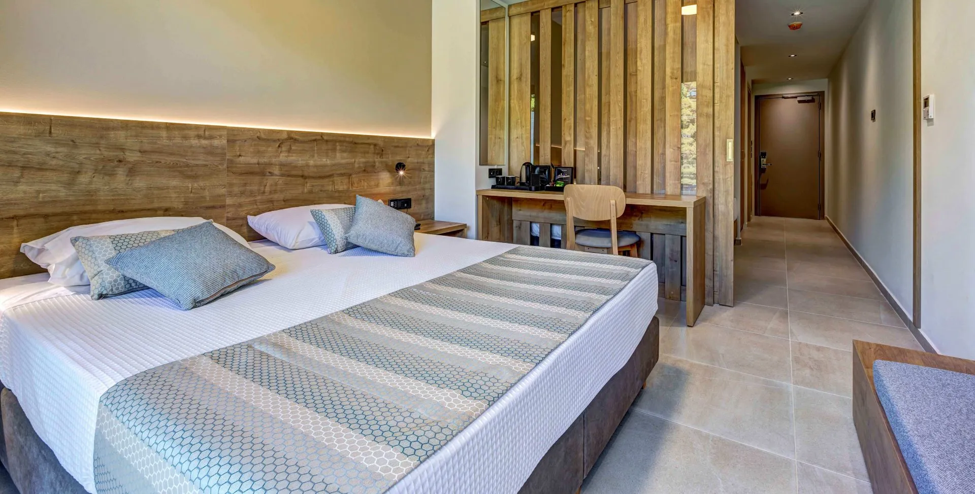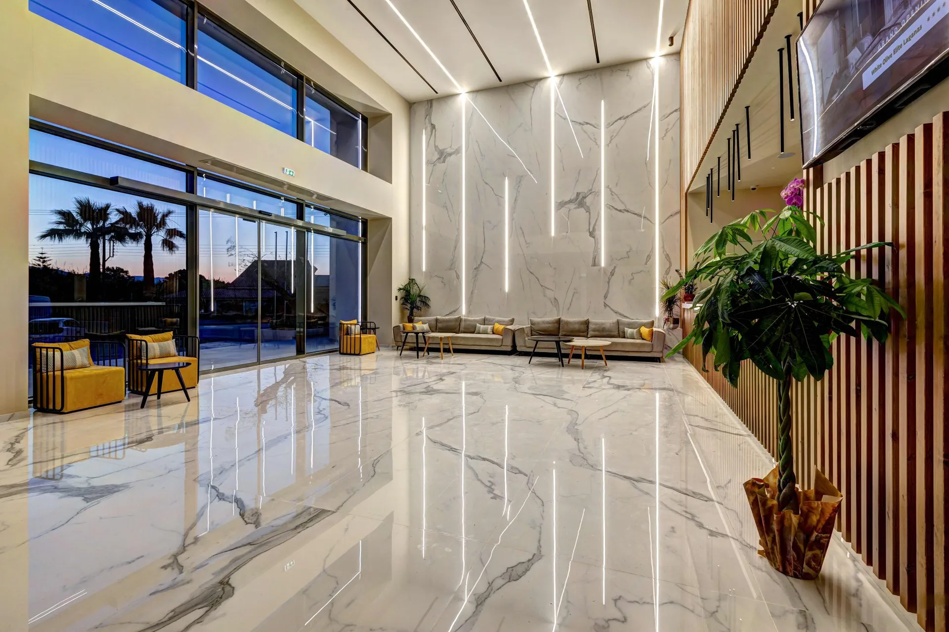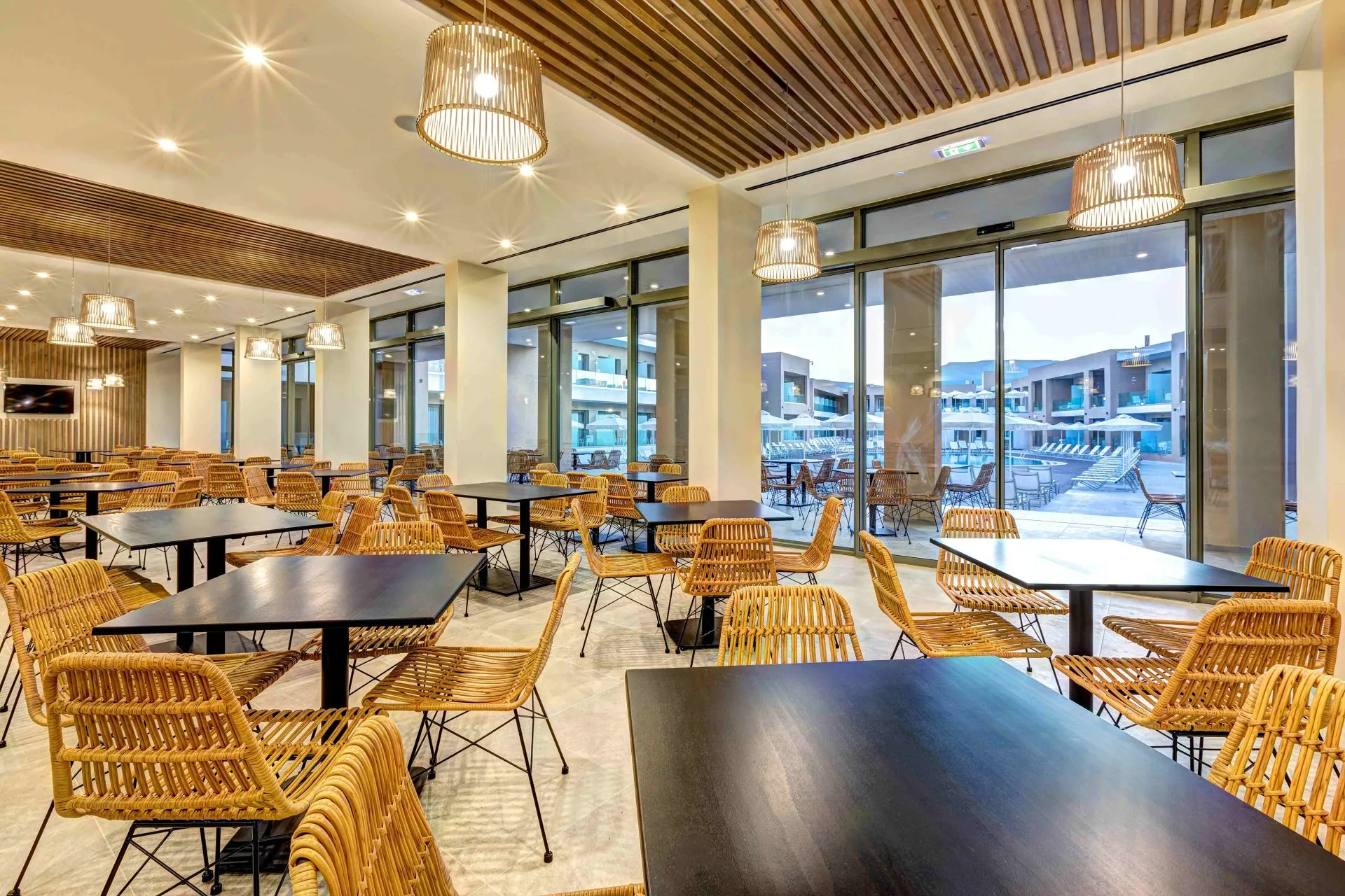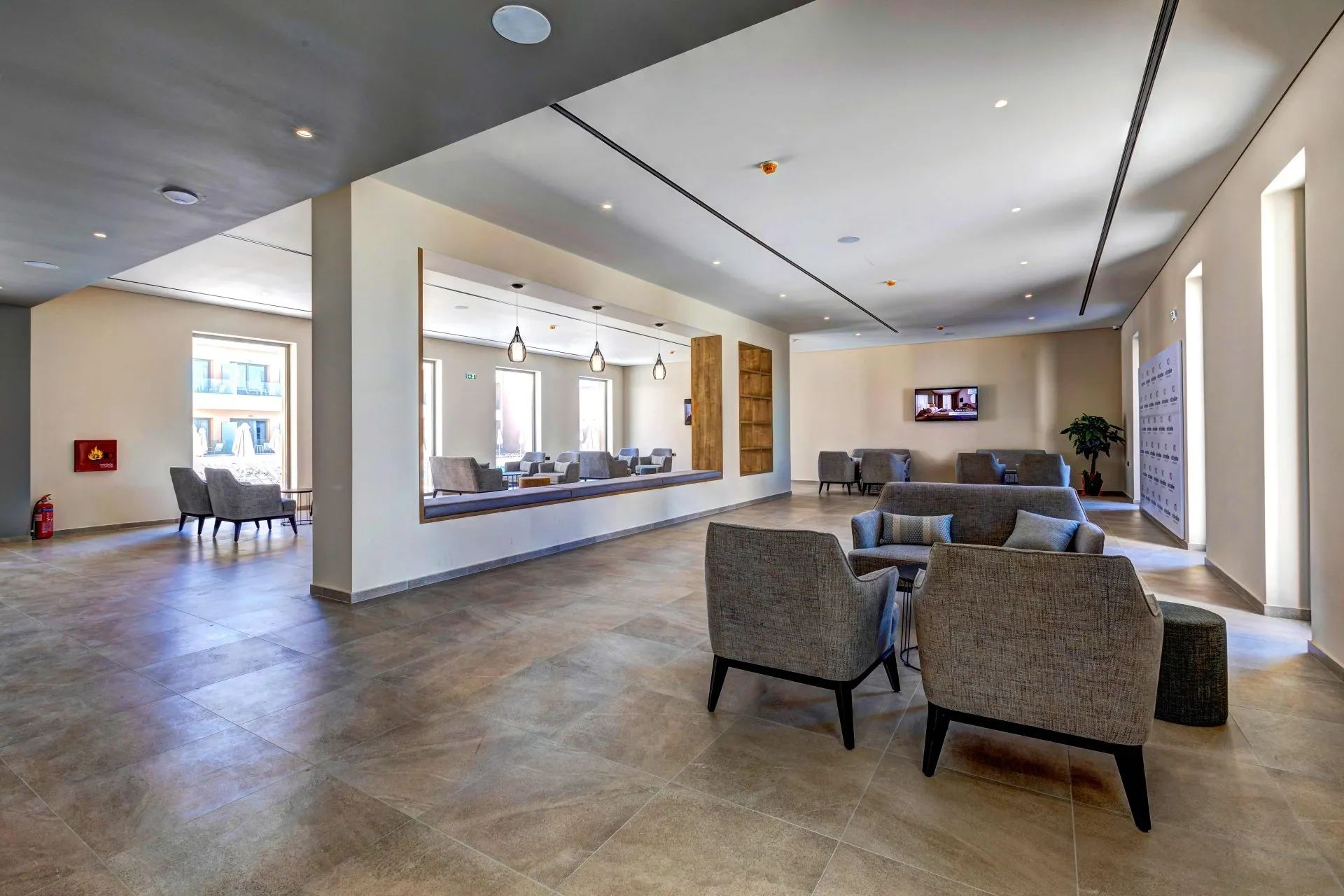 Around 300 m from a beach lies the hotel WHITE OLIVE ELITE HOTEL LAGANAS. The nearest restaurants and bars can be found within 500 m. A supermarket is around 1 km away. The beach is patrolled by a lifeguard. The air-conditioned hotel has a 24h reception, a lobby bar, Wi-Fi, internet access, a hairdresser, a jacuzzi, showers and changing rooms, a first aid kit as well as parking spaces. In the outdoor area you will find a pool (open all year). There is also a separate children's pool. For very young guests, kid`s chairs can be provided. You can store your luggage in the hotel's storage room. There is also a laundry service available at an additional cost to customers. For conventions and other business meetings, the hotel offers a conference area. Due to its barrier-free facilities , such as wheelchair accessible rooms and a wheelchair accessible lift, the hotel is also suitable for wheelchair users. Catering As catering services the hotel offers all-inclusive and breakfast only. Breakfast is offered from the buffet. Lunch and dinner are also served from the buffet. All Inclusive Light includes local alcoholic beverages. For the meals, there are a buffet restaurant with terrace (gluten-free dishes) and the pool bar. Distances