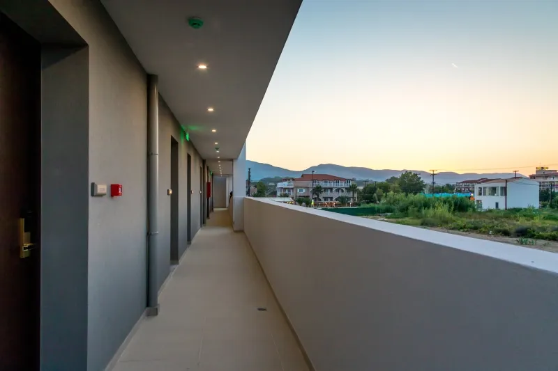 The hotel _WHITE OLIVE PREMIUM HOTEL LAGANAS is located approx. 100 m from a beach. The nearest restaurants and bars can be found within 800 m. The city centre is around 9 km away. A supermarket is around 200 m away. In the vicinity a disco (approx. 400 m away) offers entertainment for holidaymakers. The beach is patrolled by a lifeguard. Here, there are sun umbrellas and beach towels available. The air-conditioned hotel has a 24h reception (check-in is possible around the clock), a lobby bar, Wi-Fi, internet access, a jacuzzi, showers and changing rooms, a first aid kit as well as parking spaces. In the outdoor area you will find a pool (open all year), where sun loungers and pool towels are available for free. There is also a separate children's pool. You can store your valuables in the safe, and your luggage in the hotel`s storage room. For very young guests, kid`s chairs can be provided). To clean your clothes there are a laundry service (extra fee) and an ironing service. For conventions and other business meetings, the hotel offers a conference area with a reception. In your hotel, a lot of focus is placed on sustainability. This includes among others a central room air-conditioning. Due to its barrier-free facilities , such as barrier-free entrances, wheelchair accessible rooms and a wheelchair accessible lift, the hotel is also suitable for wheelchair users. Catering As catering services the hotel offers all-inclusive and breakfast only. Breakfast is offered continental or from the buffet. Enjoy your lunch from the buffet with desserts. Dinner is also served as a buffet. All Inclusive Light includes local alcoholic beverages. Your physical well-being is catered for by a buffet restaurant (gluten-free and vegetarian dishes). For dinner, guests are asked to wear appropriate clothing in the restaurant. Distances