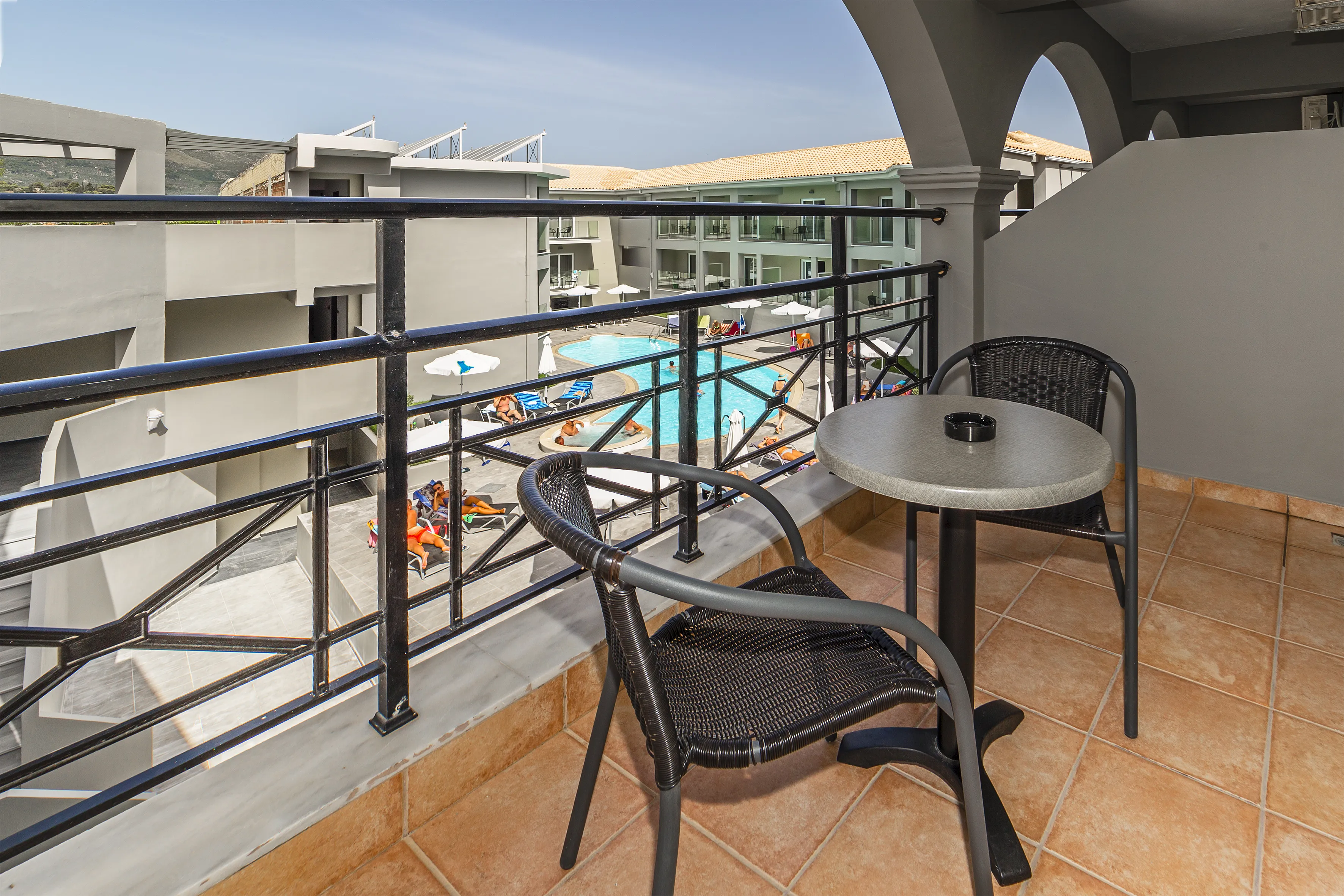 White olive Premium hotel is a 4* hotel in the centre of Laganas. Located just 100 metres from the sea and 800 metres from the centre of Laganas, White Olive Premium is the perfect place for your holiday. You can relax in one of the two swimming pools, enjoy a drink while watching the sea, or indulge authentic Greek and Mediterranean cuisine. Newly renovated rooms will ensure you have a pleasant and tranquil stay and the hotels friendly staff will make sure to satisfy all your needs. Location:2016 Year of most recent renovation; 89 Total number of rooms; 3 Number of floors (main building); Connecting rooms Hotel type:hotel Distances (in meters):City centre (800); Nearest Bus / Metro Stop (350); Airport (10000); Beach (130) Room facilities (Standard room):Disability-friendly bathroom; Shower; Hairdryer; Wi-fi; Internet access; Direct dial telephone; Satellite TV ; Fridge; Individually adjustable air conditioning; Safe; Wheelchair-accessible; Smoking rooms; Extra beds on demand; Cot on demand Facilities:Small pets allowed (under 5 kg); Large pets allowed (over 5 kg); Wheelchair-accessible; Car park; Garage; 24-hour reception; Check-in hour; Check-out hour; Wired Internet; Wi-fi; Lift access; Terrace; Sun terrace; Gym; Luggage room; 1 Dining area Catering:1 Restaurant; Highchairs; Poolside snack bar Entertainment:2 Outdoor freshwater pool; Sun loungers; Parasols Health:Sauna