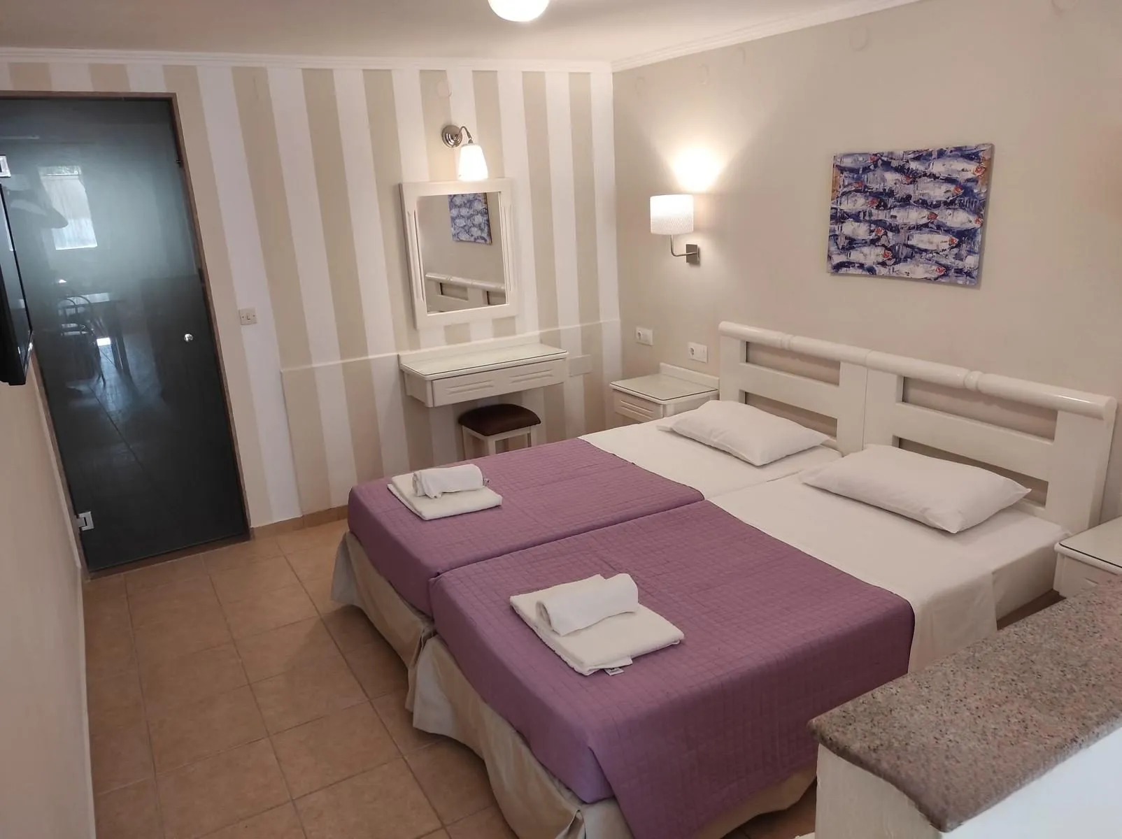Euro / MasterCard and Visa. 1 Bedroom Standard Apartment (GardenView, Balcony): With double bed or twin bed, kitchenette, balcony, kettle (for free), internet (for free), safe (for a fee) and flat screen TV with local broadcasters as well as individually adjustable air conditioning (extra fee). Bathroom with shower (room size: 35 m²).