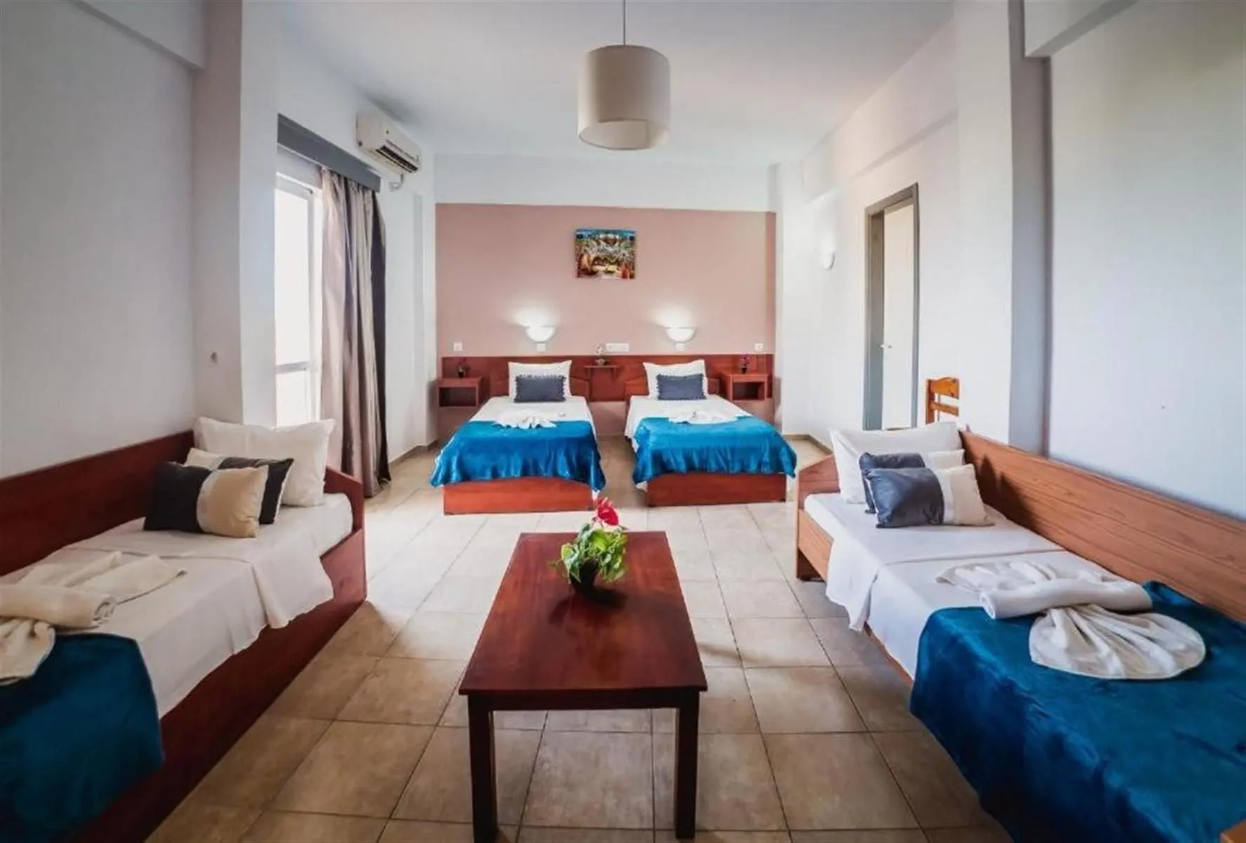 Descriere generală Orașul HERAKLION este la aprox. 35 km (HERSONISSOS cca. 10 km, STALIDA cca. 5 km). Aveți la dispoziție o stație de autobuz și o stație de taxi (cca. 1 km) cea ce vă garantează mobilitatea în oraș. Pentru îngrijiri medicale în caz de urgență, există un spital la cca. 39 km distanță. Aeroportul (CHQ) se află la aprox. 180 km. Un alt aeroport (HER) este la cca. 30 km. Facilități Complexul de cluburi, care a fost renovat parțial în 2020, dispune de 2 etaje și peste 25 camere repartizate între o clădire principală și de 4 clădiri secundare. Acesta oferă oaspeților săi recepție (check-in de la 15:00, check out până la 12:00) și lift. Accesul la internet WiFi este disponibil gratuit pentru oaspeții hotelului. Piscină În grădinile acestui hotelul există o piscină cu apă dulce. La piscină sunt disponibile gratuit șezlonguri și umbrele de soare. Sport/Leisure În apropiere a hotelului este situat un teren de golf. Informații suplimentare Pentru anumite facilități sau activități se pot aplica taxe suplimentare. Unele servicii depind de anotimp și de condițiile climatice locale. Limbi de serviciu: engleză și germană. Vierer Zimmer: Dotate cu pardoseală cu gresie, piscină comună și TV prin satelit. Dreier Zimmer: Cameră cu pat twin sau pat single, pardoseală cu gresie, piscină comună, acces la internet (gratuit), seif (contra cost) și TV prin satelit precum și aer condiționat reglabil individual (din mai până în octombrie, contra cost). Baie cu duș. Doppel Zimmer: Cameră cu pat twin sau pat single, pardoseală cu gresie, piscină comună, acces la internet (gratuit), seif (contra cost) și TV prin satelit precum și aer condiționat reglabil individual (din mai până în octombrie, contra cost). Baie cu duș.