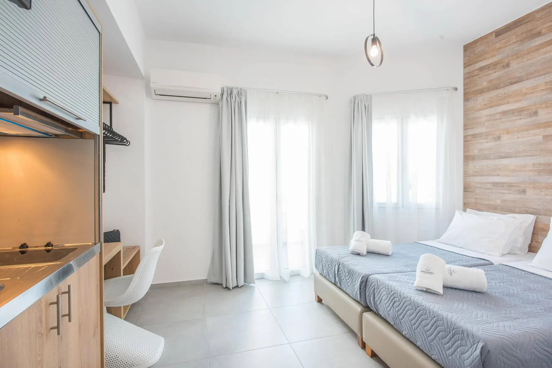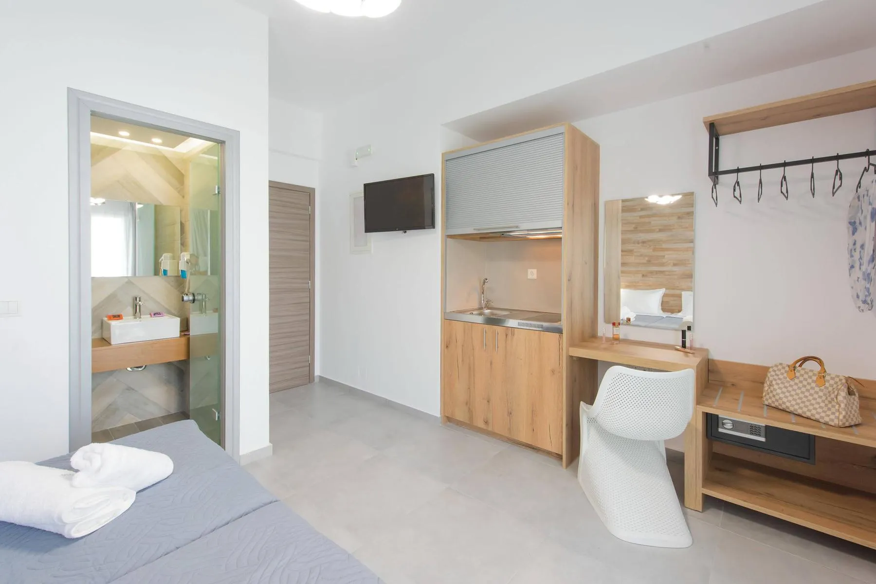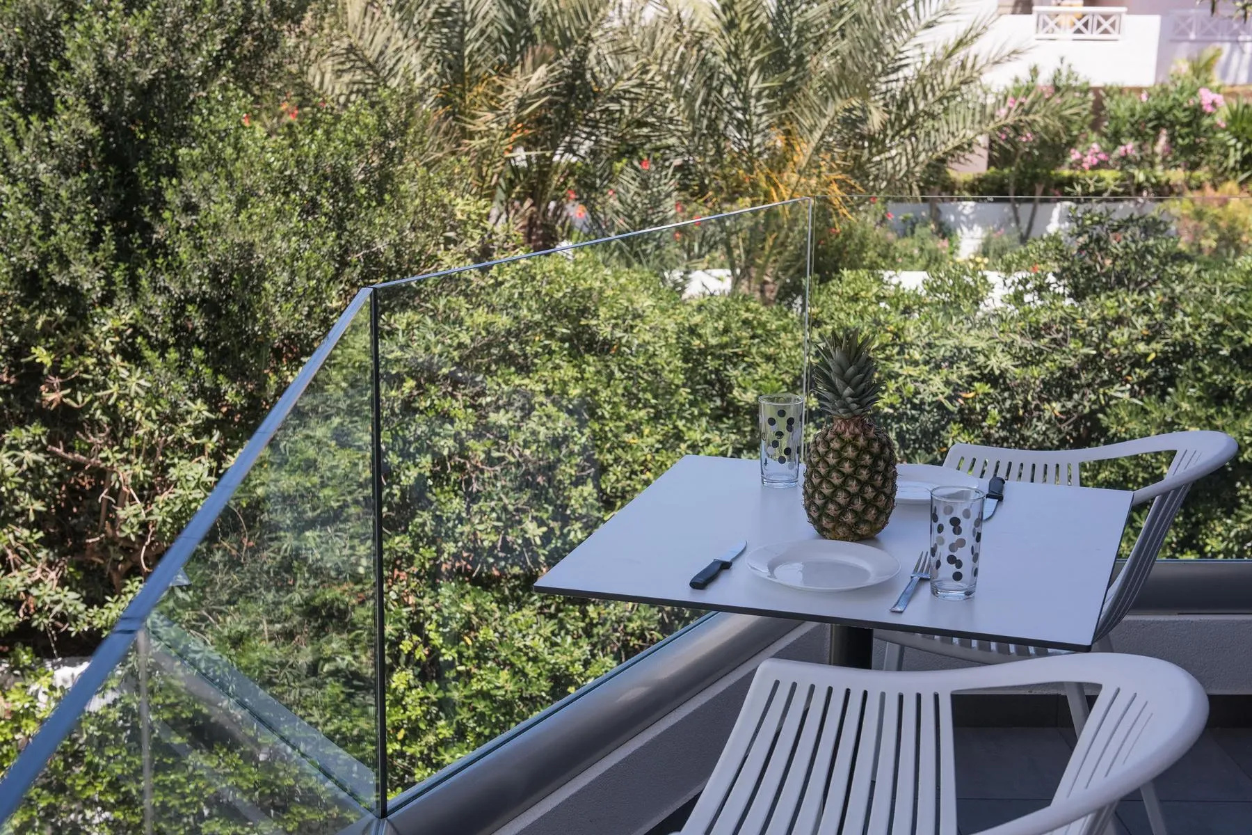 Visa and Euro / MasterCard. Triple JuniorSuite (GardenView): The modern furnished rooms are equipped with double bed or twin bed, sofa bed as extra bed, baby cot (for free), tiled floor, kitchenette, balcony, kettle (for free), internet (for free), safe (for free) and flat screen sat TV as well as individually adjustable air conditioning (extra fee). Bathroom with shower (room size: 27 m²). Towels are changed 2 times a week. Double Superior Studio (GardenView): The modern furnished rooms are equipped with double bed or twin bed, baby cot (for free), tiled floor, kitchenette, balcony or terrace, kettle (for free), internet (for free), safe (for free) and flat screen sat TV as well as individually adjustable air conditioning (extra fee). Bathroom with shower (room size: 18 m²). Towels are changed 2 times a week. Double Superior Studio (PoolView): The modern furnished rooms are equipped with double bed or twin bed, baby cot (for free), tiled floor, kitchenette, balcony or terrace, kettle (for free), internet (for free), safe (for free) and flat screen sat TV as well as individually adjustable air conditioning (extra fee). Bathroom with shower (room size: 18 m²). Towels are changed 2 times a week.