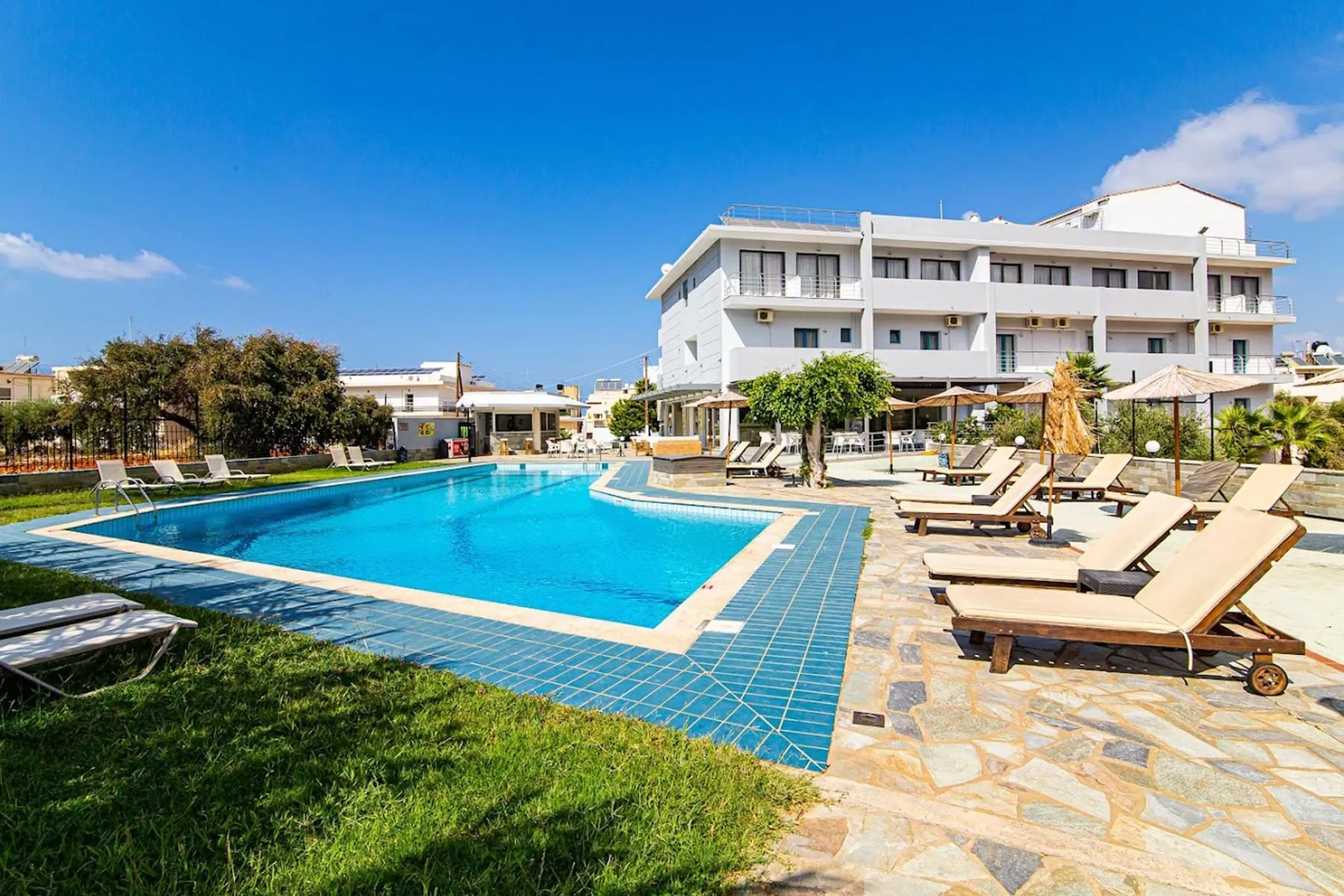 Descriere generală Hotelul Hermes Hotel Malia este locat in Malia, la cca. 1,4 km de o plajă cu nisip. Pe plajă sunt disponibile șezlonguri și umbrele de soare la un cost suplimentar. Centrul turistic al orașului se află la aprox. 500 m. Orașul Heraklion este la aprox. 35 km (Malia cca. 500 m, Hersonissos cca. 7 km). Magazinele sunt la aprox. 200 m de hotel, și veți găsi un supermarket la cca. 300 m. La cele mai apropiate baruri și restaurante se poate ajunge, de asemenea, într-un timp foarte scurt. Următoarele atracții pot fi accesate de la hotel: Knossos Palace (cca. 38 km), Golf Center Hersonissos (cca. 15 km), Lychnostatis Museum (cca. 6 km), Creta Aquarium (cca. 20 km) și Minoan Archaelogical sight of Malia. Aveți la dispoziție o stație de autobuz (cca. 30 m) cea ce vă garantează mobilitatea în timpul vacanțelor. Pentru îngrijiri medicale în caz de urgență, există un spital la cca. 35 m distanță. Aeroportul (CHQ) se află la aprox. 180 km. Un alt aeroport (HER) este la cca. 30 km. Facilități Hotelul de tip boutique dispune de 4 etaje și peste 51 camere. Hotelul are recepție (check-in de la 13:00, check out până la 11:00), lobby cu bar și aer condiționat. Pentru a satisface apetitul vă stau la dispoziție un snackbar. Accesul la internet WiFi este disponibil gratuit pentru oaspeții hotelului. Serviciul de menaj este gratuit. Spălătorie, călcat și serviciul medical sunt disponibile la un cost suplimentar. Piscină Zona exterioară a hotelului include o piscină cu apă dulce (deschisă din mai până în octombrie). La piscină sunt disponibile gratuit șezlonguri și umbrele de soare. Un bar lângă piscină oferă oaspeților băuturi răcoritoare. Informații suplimentare Pentru anumite facilități sau activități se pot aplica taxe suplimentare. Unele servicii depind de anotimp și de condițiile climatice locale. Limba de serviciu: engleză. Carduri de credit: Euro/MasterCard și Visa. Doppel Studio: Cameră cu pat twin, pat pentru bebeluși (gratuit), pardoseală cu gresie, chicinetă, ceainic (gratuit), balcon sau terasă și seif (contra cost) precum și aer condiționat reglabil individual (contra cost). Baie cu duș. Vierer Studio: Cameră cu pat twin, pat pentru bebeluși (gratuit), pardoseală cu gresie, chicinetă, ceainic (gratuit), balcon sau terasă și seif (contra cost) precum și aer condiționat reglabil individual (contra cost). Baie cu duș. Dreifach Studio: Dotate cu pat twin, pat pentru bebeluși (gratuit), pardoseală cu gresie, chicinetă, ceainic (gratuit), balcon sau terasă și seif (contra cost) precum și aer condiționat reglabil individual (contra cost). Baie cu duș.