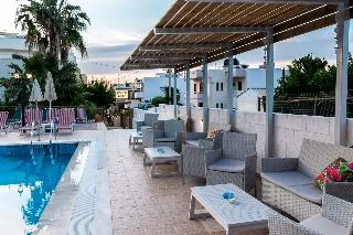 Newcastle Studios is a family ran business in the old town of Malia only 2km from the beach. The hotel consists of very well equipped studios. Newcastle Studios are located approximately 500 meters from the main road in the center with beach bars and water sports facilities in the resort of Malia. Newcastle Studios is comprised of a 3 story building with beautiful gardens, a large pool with free sunbeds and umbrellas and a pool bar where you can enjoy a wide variety of food and drinks and relax all day. All studios can accommodate 2 or 3 people.They all have a fully equipped kitchenette, fridge ,kettle , toaster , safe in room ,a dining table, hairdryer , private shower/toilet and private balcony. The international airport of Heraklion is 33 km away.