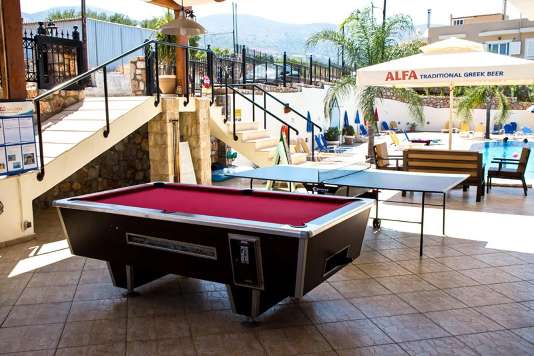 Descriere generală Hotelul Real Palace Studios, care este deosebit de popular printre cei aflați în luna de miere, este situat la cca. 1,8 km de o plajă cu nisip/de pietre. Pe plajă sunt disponibile șezlonguri și umbrele de soare la un cost suplimentar. Centrul turistic al orașului se află la aprox. 900 m. Orașul Hersonissos este la aprox. 9,2 km (Malia Old Town cca. 900 m). Veți găsi un supermarket la cca. 1 km. Cele mai apropiate baruri și restaurante sunt la cca. 350 m distanță. O discotecă aflată la aprox. 1,3 km vă invită la dans. Următoarele atracții pot fi accesate de la hotel: Archaeological Site Of Malia (cca. 2,4 km), Lychnostatis Museum (cca. 6,8 km) și Crete Aquarium (cca. 22,6 km). Există posibilitatea de a închiria mașini și motociclete. De asemenea, aveți în apropiere o stație de autobuz (cca. 800 m) și o stație de taxi (cca. 950 m) cea ce vă garantează mobilitatea în timpul vacanțelor. Pentru îngrijiri medicale în caz de urgență, există un spital la cca. 29,6 km distanță. Aeroportul (CHQ) se află la aprox. 180 km. Un serviciu de transfer (contra cost) face legătura între hotel și aeroport. Un alt aeroport (HER) este la cca. 30 km. Facilități Hotelul dispune de 3 etaje și peste 33 camere. Hotelul are recepție (check-in de la 13:00, check out până la 11:00), lobby și parcare (gratuită). Pentru a servi masa aveți la dispoziție un restaurant și un snackbar. Accesul la internet WiFi este disponibil gratuit pentru oaspeții hotelului. Este posibil să se perceapă un cost suplimentar pentru serviciul de menaj. Piscină Zona exterioară a hotelului include o piscină cu apă dulce precum și o piscină pentru copii. Acolo sunt disponibile gratuit șezlonguri și umbrele de soare. La barul piscinei va puteți bucura de o băutura răcoritoare (deschis între orele 07:30 - 02:30). Catering Mic dejun (între orele 08:00 - 10:30) bufet suedez. Demipensiunea include micul dejun și cina. Sport/Leisure Oferte pentru sport și divertisment: Tenis de masă (gratuit) și biliard (contra cost). La cca. 15 km de hotel este un teren de golf. Există serviciu de închiriere de biciclete. Informații suplimentare Pentru anumite facilități sau activități se pot aplica taxe suplimentare. Unele servicii depind de anotimp și de condițiile climatice locale. Nu se servește alcool în acest hotel. Limbi de serviciu: engleză și greacă. Carduri de credit: Visa și Euro/MasterCard. Superior Apartment: Dotate cu living, pat twin sau pat single, pat pentru bebeluși (gratuit), pardoseală cu gresie, chicinetă, ceainic (gratuit), balcon sau terasă, acces la internet (gratuit), seif (contra cost) și TV prin cablu/satelit precum și aer condiționat reglabil individual (contra cost). Baie cu duș. Prosoapele se schimbă de 3 ori pe săptămână, lenjeria de pat de 2 ori pe săptămână. Dimensiune: 30 m². Superior Studio (Nicht erstattbar): Cameră cu pat twin sau pat single, pat pentru bebeluși (gratuit), pardoseală cu gresie, chicinetă, ceainic (gratuit), balcon sau terasă, acces la internet (gratuit), seif (contra cost) și TV prin cablu/satelit precum și aer condiționat reglabil individual (contra cost). Baie cu duș. Prosoapele se schimbă de 3 ori pe săptămână, lenjeria de pat de 2 ori pe săptămână. Dimensiune: 30 m². Superior Studio (Garten-Poolblick): Cameră cu pat twin sau pat single, pat pentru bebeluși (gratuit), pardoseală cu gresie, chicinetă, ceainic (gratuit), balcon sau terasă, acces la internet (gratuit), seif (contra cost) și TV prin cablu/satelit precum și aer condiționat reglabil individual (contra cost). Baie cu duș. Prosoapele se schimbă de 3 ori pe săptămână, lenjeria de pat de 2 ori pe săptămână. Dimensiune: 30 m².
