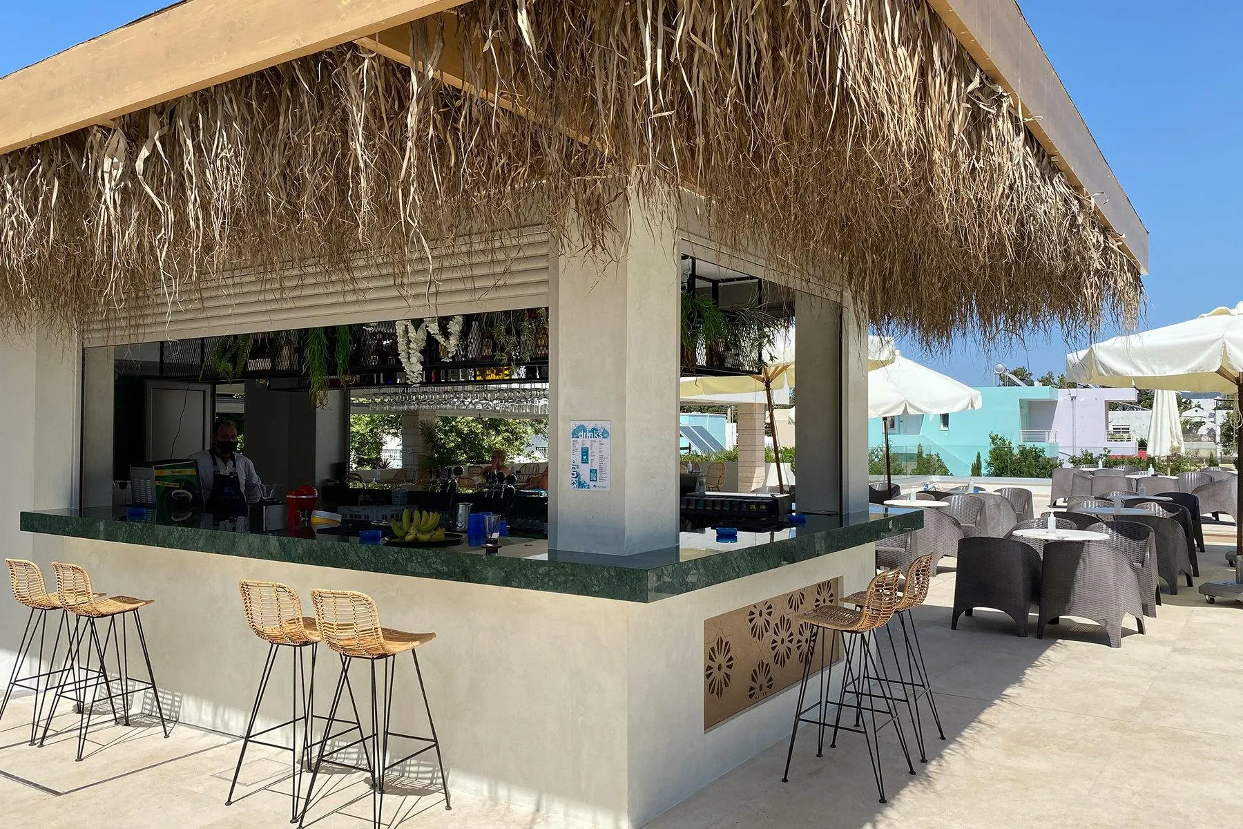 Partially renovated in 2021, the 3-storey resort consists of a main building and 6 adjoining buildings, and has 135 rooms in total. It offers its guests a reception (check-in from 14:00, check-out until 12:00), a lobby with bar, 2 lifts, a free parking area and a money changing facility. For the meals, there are two restaurants (air-conditioned). You will be warmly welcomed in both the hotel’s bars. WiFi is available for free. Room service and laundry / ironing service are available for a fee. Pool: In the outdoor area of the hotel you will find 2 fresh water pools with a separate children´s pool. Here, there are sun umbrellas and sun loungers for free available. Refreshing beverages can be consumed directly at the pool bar.
