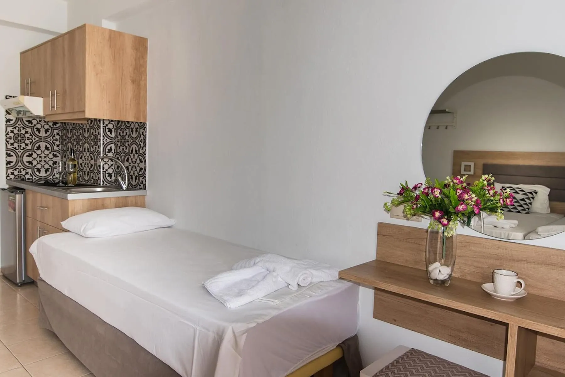 Descriere generală Hotelul Vagelis Comfort Apartments & Studios (doar pentru adulți) este locat in Malia, la cca. 850 m de o plajă cu nisip. Pe plajă sunt disponibile umbrele de soare și șezlonguri la un cost suplimentar. Orașul Malia este la aprox. 350 m (Chersonissos cca. 7 km, Heraklion cca. 33 km). În apropierea hotelului sunt diverse magazine, și veți găsi un supermarket la cca. 250 m. Următoarele atracții pot fi accesate de la hotel: Knossos Palace (cca. 38 km), Malia Minoan Palace, Lychnostatis Museum și Crete Aquarium. Există posibilitatea de a închiria mașini și motociclete. De asemenea, aveți în apropiere o stație de autobuz (cca. 500 m) și o stație de taxi (cca. 350 m) cea ce vă garantează mobilitatea în vacanța dumneavoastră. Aeroportul (CHQ) se află la aprox. 180 km. Un alt aeroport (HER) este la cca. 30 km. Facilități Hotelul, care a fost renovat în 2021, dispune de 3 etaje și peste 24 camere. Acesta oferă oaspeților săi recepție (check-in de la 14:00, check out până la 12:00), lobby, lift și parcare (gratuită). Pentru a satisface apetitul aveți la dispoziție în hotel un snackbar. Serviciul de menaj este gratuit. Piscină Zona exterioară a hotelului include o piscină cu apă dulce. Acolo sunt disponibile gratuit șezlonguri și umbrele de soare. Catering Mic dejun continental (între orele 07:30 - 09:30). Informații suplimentare Pentru anumite facilități sau activități se pot aplica taxe suplimentare. Unele servicii depind de anotimp și de condițiile climatice locale. Limba de serviciu: engleză. Carduri de credit: Visa și Euro/MasterCard.