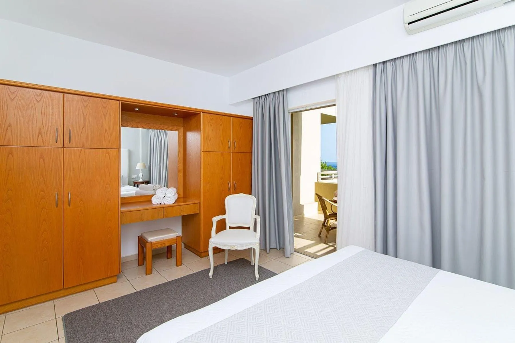 Visa and Euro / MasterCard. 1 Bedroom Luxury Apartment (SeaView): With living room, single bed or twin bed, baby cot (for free), tiled floor, kitchenette, balcony or terrace, kettle (for free), internet (for free), safe (for a fee) and flat screen sat TV as well as individually adjustable air conditioning (extra fee). Bathroom with shower (room size: 40 m²). Towels are changed 2 times a week. 2 Bedroom FamilyApartment (GardenView): With living room, double bed, single bed or twin bed, baby cot (for free), tiled floor, kitchenette, balcony or terrace, kettle (for free), internet (for free), safe (for a fee) and flat screen sat TV as well as individually adjustable air conditioning (extra fee). Bathroom with shower (room size: 70 m²). Towels are changed 2 times a week. Double Superior Studio: With single bed or twin bed, baby cot (for free), tiled floor, kitchenette, balcony or terrace, kettle (for free), internet (for free), safe (for a fee) and flat screen sat TV as well as individually adjustable air conditioning (extra fee). Bathroom with shower (room size: 20 m²). Towels are changed 2 times a week. Double Superior Studio (Non-Refundable): With single bed or twin bed, baby cot (for free), tiled floor, kitchenette, balcony or terrace, kettle (for free), internet (for free), safe (for a fee) and flat screen sat TV as well as individually adjustable air conditioning (extra fee). Bathroom with shower (room size: 20 m²). Towels are changed 2 times a week. Triple Superior Studio: With single bed or twin bed, baby cot (for free), tiled floor, kitchenette, balcony or terrace, kettle (for free), internet (for free), safe (for a fee) and flat screen sat TV as well as individually adjustable air conditioning (extra fee). Bathroom with shower (room size: 25 m²). Towels are changed 2 times a week. Triple Superior Studio (Non-Refundable): With single bed or twin bed, baby cot (for free), tiled floor, kitchenette, balcony or terrace, kettle (for free), internet (for free), safe (for a fee) and flat screen sat TV as well as individually adjustable air conditioning (extra fee). Bathroom with shower (room size: 25 m²). Towels are changed 2 times a week.