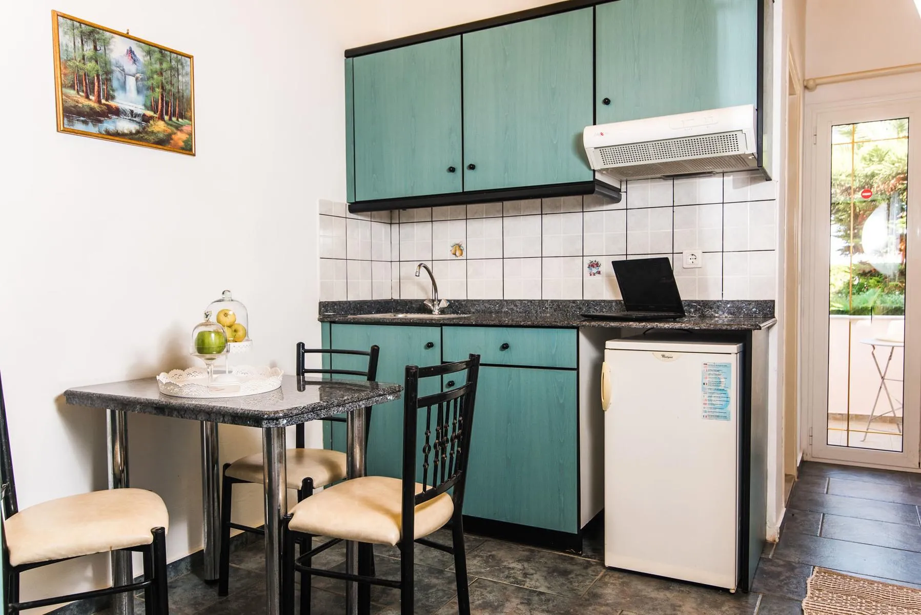 Visa and Euro / MasterCard. The hotel is especially popular with honeymooners. 1 Bedroom Standard Apartment: With living room, single bed or twin bed, baby cot (for free), tiled floor, kitchenette, balcony or terrace, kettle (for free), internet (for free) and sat TV as well as individually adjustable air conditioning (extra fee). Bathroom with shower (room size: 33 m²). Towels are changed 3 times a week. Standard Studio (LateralSeaView): With single bed or twin bed, baby cot (for free), tiled floor, kitchenette, balcony or terrace, kettle (for free), internet (for free) and sat TV as well as individually adjustable air conditioning (extra fee). Bathroom with shower (room size: 25 m²). Towels are changed 3 times a week. Standard Studio (LateralSeaView, Non-Refundable): With single bed or twin bed, baby cot (for free), tiled floor, kitchenette, balcony or terrace, kettle (for free), internet (for free) and sat TV as well as individually adjustable air conditioning (extra fee). Bathroom with shower (room size: 25 m²). Towels are changed 3 times a week. Triple Standard Studio (GardenView): With twin bed, baby cot (for free) and internet (for free). Triple Standard Studio (GardenView, Non-Refundable): With twin bed, baby cot (for free) and internet (for free). Twin Standard Studio: With single bed or twin bed, baby cot (for free), tiled floor, kitchenette, balcony or terrace, kettle (for free), internet (for free) and sat TV as well as individually adjustable air conditioning (extra fee). Bathroom with shower (room size: 20 m²). Towels are changed 3 times a week. Triple Superior Studio (GardenView): With single bed or twin bed, baby cot (for free), tiled floor, kitchenette, balcony or terrace, kettle (for free), internet (for free) and sat TV as well as individually adjustable air conditioning (extra fee). Bathroom with shower (room size: 25 m²). Towels are changed 3 times a week.