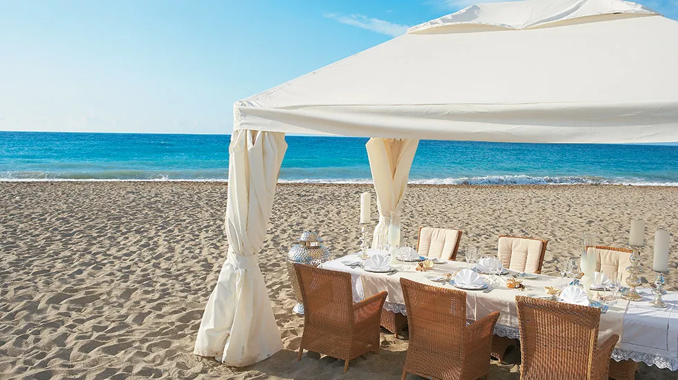 Experience a escape where every room, suite, villa, and bungalow is thoughtfully designed to evoke the comforts of home while exuding an air of unparalleled luxury & elegance. The hotel is situated on 300 m of sandy and pebbled beach awarded the “Blue Flag” as complying with the directives of the European program: water quality, environmental management, safety, services and facilities, environmental education and information. Hotel offers 1 large freshwater main pool (786 m2), 1 children’s pool with 2 water slides (200 m2), 10 private pools for villa guests, 1 indoor freshwater pool (55 m2, heated October & April). Pool amenities include sunbeds, umbrellas, towels & showers. Fitness & Wellness: Morning Gymnastics, Aqua Gym, Aerobics, Yoga, Aerial Yoga, Hiking, TRX Training, Trekking, Jogging, Private Fitness (extra charge), Outdoor Fitness. Spa facilities include indoor pool with hydro massage and water cannon, indoor whirlpool, saunas, private massage rooms, beauty salon, gazebo open-air massage, open-air atrium with relaxation loggia and changing rooms. Sports and fun: Table Tennis, 2 AstroTurf Tennis Courts, Boccia, Beach Volley. Evening Entertainment: Cretan and Greek festivals, Live Music Performances, Dance Parties, Professional external entertainment shows: Atelier (Silk, T-shirt, glass & wood painting) (extra charge). Located right on the hotel's beach (ages 8 and above, extra charge): Water-Ski, Jet ski, Wet Bikes, Scuba Diving, Parasailing, Pedal Boats, Canoes, Banana, Rings, Swimming Lessons. Creta Palace’s Grecoland creates a magical holiday experience for children aged 4-12 years. Children at Creta Palace enjoy a dedicated holiday program with toys and facilities made from environmentally safe materials, qualified personnel, creative activities with fun and games, teenager program with the emphasis on sports and beach games. Children under 4 are welcome to use the Grecoland facilities but must be supervised at all times by a parent or guardian. Kids activities include water sports (ages 8 and above), tennis (age 7 and above), mountain Biking (ages 8 and above), diving (ages 8 and above) and more (extra charge).
