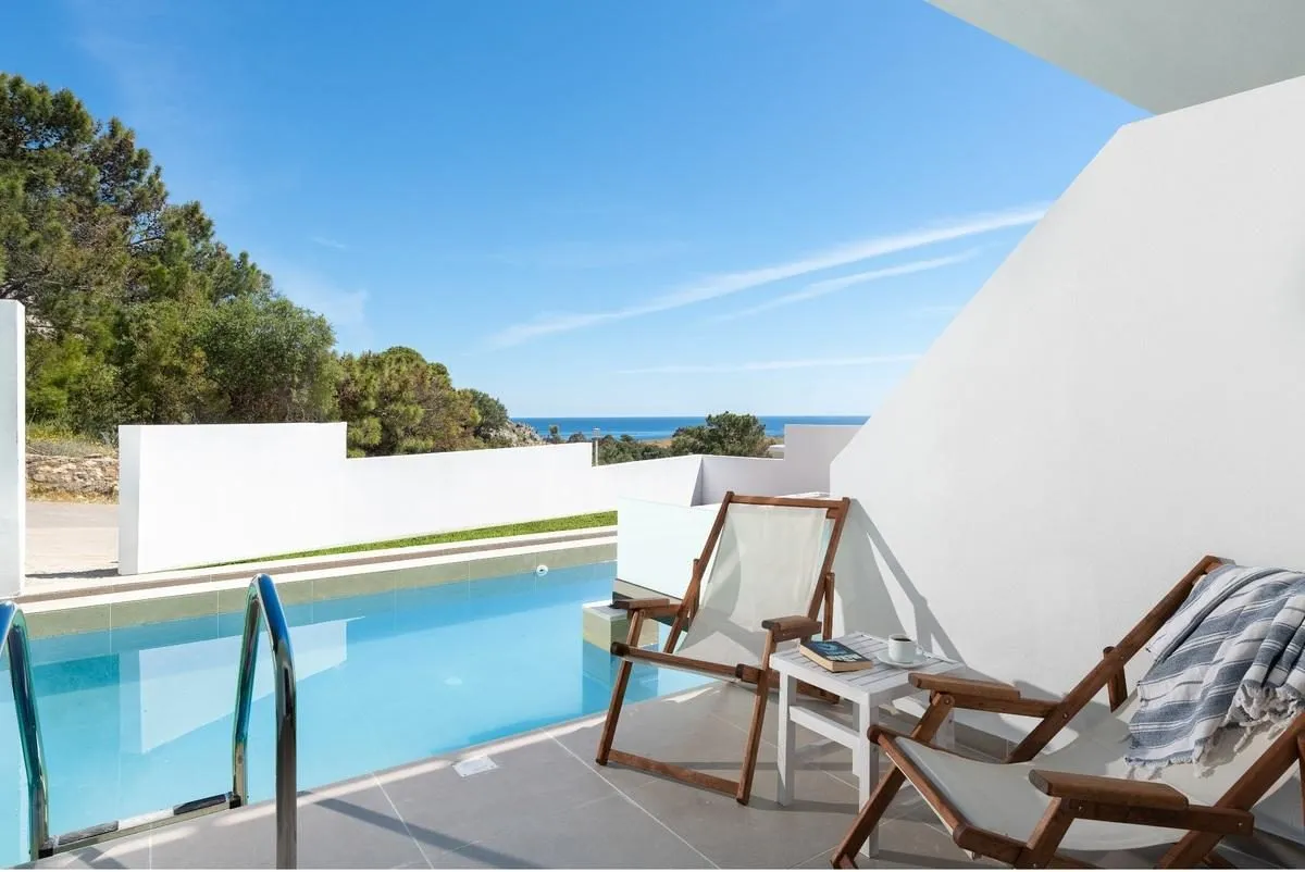 Descriere generală Hotelul Eagles Nest este locat in Pefkos, la cca. 1 km de o plajă cu nisip/pietriș. Pe plajă sunt disponibile șezlonguri și umbrele de soare la un cost suplimentar. Centrul turistic al orașului se află la aprox. 500 m. Orașul Lindos este la aprox. 3 km (Rhodes Town cca. 50 km, Pefkos cca. 500 m). Veți găsi un supermarket la cca. 500 m. La cele mai apropiate baruri și restaurante se poate ajunge într-un timp foarte scurt. O discotecă aflată la aprox. 500 m vă invită la dans. Următoarele atracții pot fi accesate de la hotel: Lindos (cca. 3 km), Prassonisi (cca. 35 km), Old Town (cca. 50 km) și Tsambika Beach (cca. 20 km). Există posibilitatea de a închiria mașini și motociclete. De asemenea, aveți în apropiere o stație de autobuz și o stație de taxi (cca. 500 m) cea ce vă garantează mobilitatea pe insulă. Pentru îngrijiri medicale în caz de urgență, există un spital la cca. 50 km distanță. Aeroportul (RHO) se află la aprox. 65 km. Facilități Hotelul de tip boutique dispune de 3 etaje și peste 46 camere. Acesta oferă oaspeților săi recepție (check-in de la 14:00, check out până la 12:00), lobby, lift, aer condiționat și parcare (gratuită). Pentru a satisface apetitul aveți la dispoziție în hotel un restaurant cu aer condiționat. Accesul la internet WiFi este disponibil gratuit pentru oaspeții hotelului. Serviciul de menaj este gratuit. Spălătorie, călcat și serviciul medical sunt disponibile la un cost suplimentar. Piscină În grădinile acestui hotelul există o piscină cu apă dulce. La piscină sunt disponibile gratuit șezlonguri și umbrele de soare. La barul piscinei va puteți bucura de o băutura răcoritoare. Catering Mic dejun (între orele 07:00 - 10:00) bufet suedez. Sport/Leisure Există serviciu de închiriere de biciclete. Informații suplimentare Pentru anumite facilități sau activități se pot aplica taxe suplimentare. Unele servicii depind de anotimp și de condițiile climatice locale. Limbi de serviciu: engleză și germană. Carduri de credit: Visa și Euro/MasterCard. Deluxe Zimmer (Privater Pool): Cameră cu pardoseală cu gresie, piscină privată, ceainic (gratuit), acces la internet (gratuit), seif (gratuit) și TV cu ecran plat prin satelit precum și aer condiționat controlat central (din mai până în octombrie). Baie cu duș. Dimensiune: 26 m². Doppel Deluxe Zimmer: Dotate cu pat dublu, pat pentru bebeluși (gratuit), pardoseală cu gresie, ceainic (gratuit), balcon sau terasă, acces la internet (gratuit), seif (gratuit) și TV cu ecran plat prin satelit precum și aer condiționat controlat central (din mai până în octombrie). Baie cu duș. Dimensiune: 24 m². Doppel Standard Zimmer (Mit Jacuzzi): Cameră cu pardoseală cu gresie. Baie cu duș. Dimensiune: 26 m². Standard Suite: Cameră cu pat dublu, 2 paturi suplimentare, pat pentru bebeluși (gratuit), pardoseală cu gresie, ceainic (gratuit), balcon sau terasă, acces la internet (gratuit), seif (gratuit) și TV cu ecran plat prin satelit precum și aer condiționat controlat central (din mai până în octombrie). Baie cu duș. Dimensiune: 32 m².