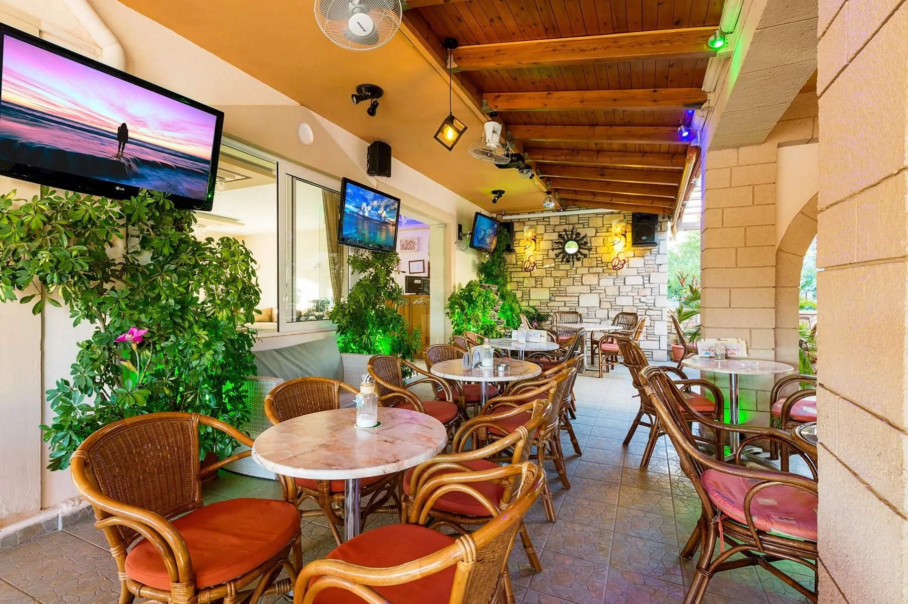 The 2-storey 2nd row beach hotel has 37 rooms, and spread over one main building and one adjoining building. The rooms were last renovated in 2024. It is equipped with a reception (check-in from 15:00, check-out until 11:00), a lobby, a safe (for a fee) as well as a parking area (for free). For the meals, there is a restaurant. You can relax in good company in the hotel bar. WiFi is available for free. For guests dependent on a wheelchair the hotel has a barrier-free access. Room cleaning is free of charge. Pool: In the outdoor area of the mediterranean-style hotel you will find one fresh water pool with a separate children´s pool (open from May to October). Here, there are sun loungers and sun umbrellas for free available. A bar at the pool offers guests refreshing beverages (open from 08:30 - 00:00).