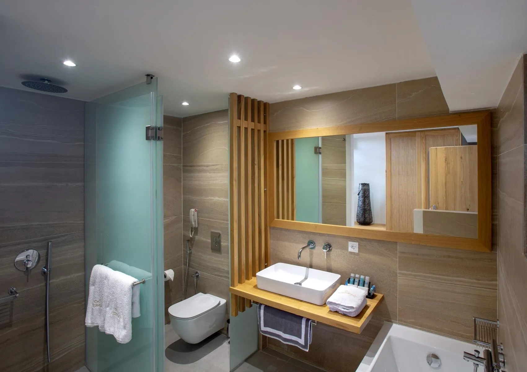 Visa and Euro / MasterCard. Deluxe Maisonette: With king size bed, sofa bed as extra bed, baby cot (for free), balcony, minibar (where applicable, for a fee), internet (for free), safe (for free) and sat TV as well as centrally controlled air conditioning. Bathroom with shower (room size: 40 m²). Deluxe Maisonette (Private-PoolTerrace): With king size bed, sofa bed as extra bed, baby cot (for free), balcony, minibar (where applicable, for a fee), internet (for free), safe (for free) and sat TV as well as centrally controlled air conditioning. Bathroom with shower (room size: 40 m²). Deluxe Room: With single bed or king size bed, sofa bed as extra bed, baby cot (for free), balcony, minibar (where applicable, for a fee), internet (for free), safe (for free) and sat TV as well as centrally controlled air conditioning. Bathroom with shower (room size: 27 m²). Superior Room: With single bed or king size bed, sofa bed as extra bed, baby cot (for free), balcony or terrace, minibar (where applicable, for a fee), internet (for free), safe (for free) and sat TV as well as centrally controlled air conditioning. Bathroom with shower (room size: 29 m²).