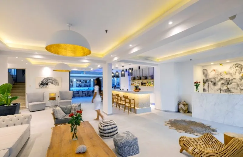 About 400m m from a beach is located the hotel La Stella Suites. The city centre is also just a few steps away. The hotel is equipped with Wi-Fi as well as parking spaces. You can store your valuables in the safe (extra fee), and your luggage in the hotel`s storage room. There is also a laundry service. If necessary, you can contact the medical centre (for a fee). If you want to explore the holiday region, you can use the car rental service close to the hotel (extra fee). Pets like cats and dogs are allowed in the hotel (on request) . Distances