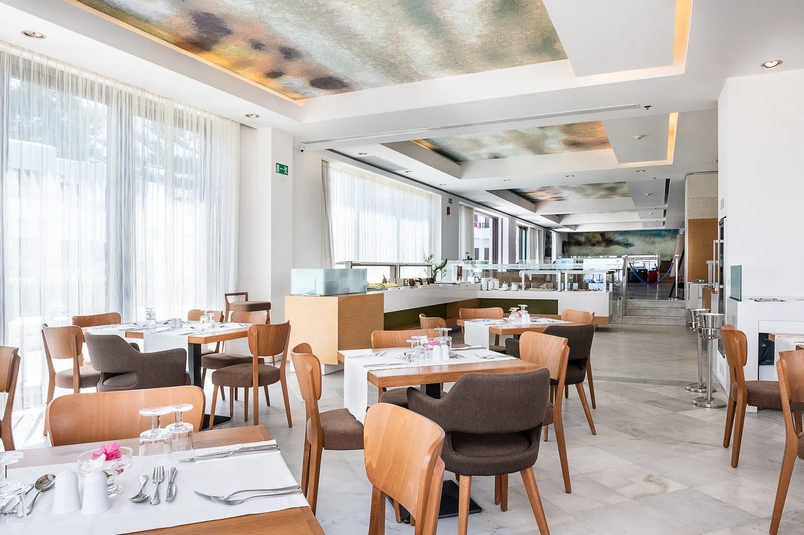 The hotel consists of 81 hotel rooms and 65 fully equipped apartments scattered around the stunning greenery. The beach has been awarded with The Blue Flag, which stands for a clean sea and a safe beach. The beach close by the hotel is also an important breeding place for the sea turtles Caretta-Caretta. The hotel offers 2 large pools for adults, 3 separate children's pools, and a playground. The hotel services guests with two intimate restaurants, the main one, and the Cretan one "Ouzaki". The former allows guests to enjoy all of their main meals of the day, breakfast, lunch, and dinner. It also hosts theme nights every week for further taste and fun exploration. The latter is a Cretan concept restaurant with a cozy Greek atmosphere, and small plates to share inspired by Cretan flavors. The pool bar is the best place for a break from swimming and sunbathing. There are plenty of refreshing beverages, fresh homemade pizza cooked and served at a show cooking, and many small meals that allow guests to recharge their batteries to the fullest.