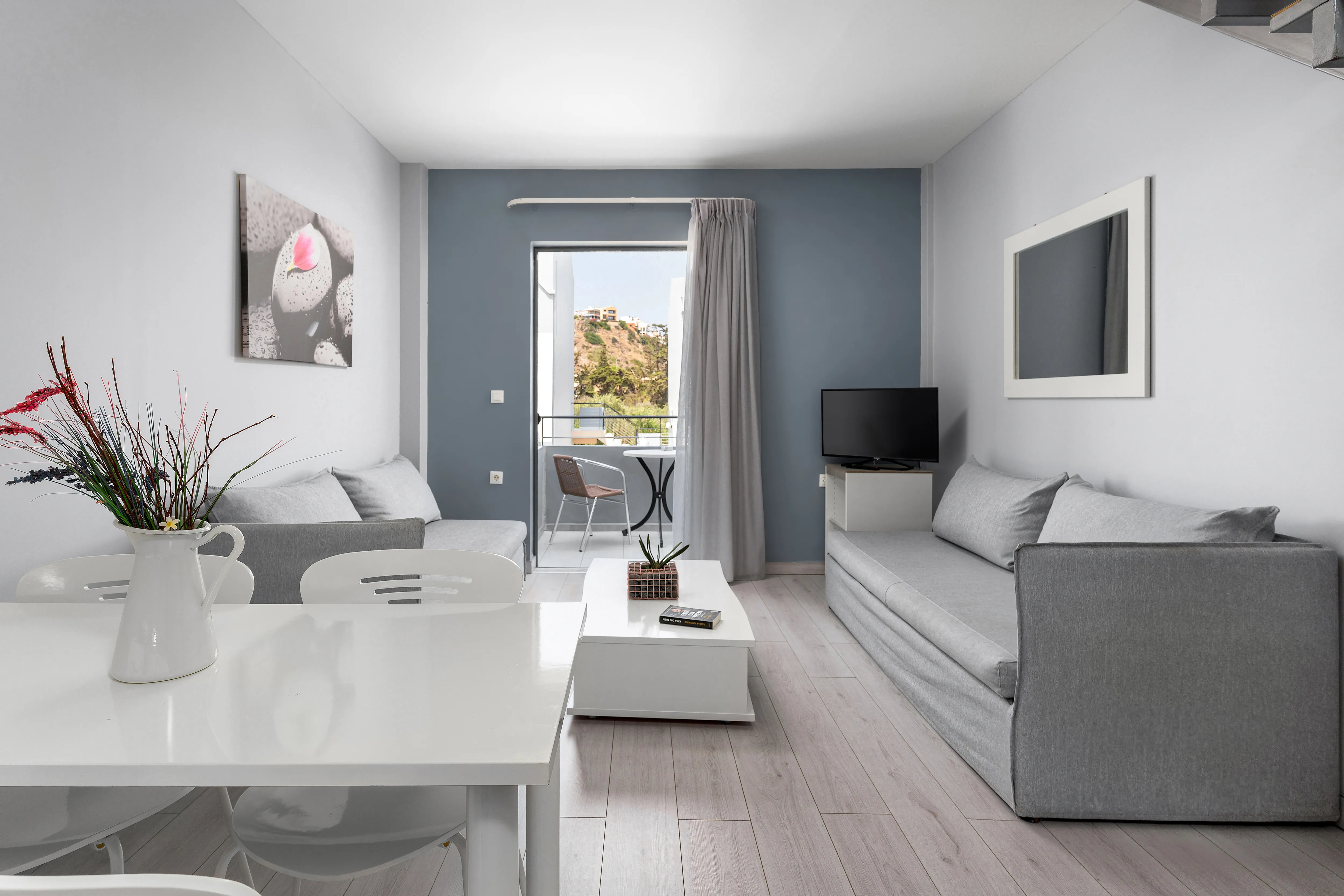 This award-winning establishment enjoys a convenient location in Platanias, a picturesque village on the Greek island of Crete. Its prime situation just 500 metres from the beach and just a short driving distance from the international airport makes this hotel the best choice for business and leisure travellers alike. Boasting a warm and friendly atmosphere, this establishment offers an excellent service based on attention to detail, sensitivity and understanding. With the aim of guarantee the quality of the offered services and provide all the comforts travellers need, this hotel was fully refurbished in 2006. It offers different accommodation options to meet all visitors' expectations and provide a choice of fully-equipped studios, 1-bedroom apartments and comfortable maisonettes. The magnificent outdoor pool is the perfect place to take a refreshing dip while the pool bar is ideal to share a moment with friends. Location:2001 Year of construction; 2012 Year of most recent renovation; 65 Total number of rooms; 2 Number of floors (main building); 36 Junior suites; 12 Apartments; 17 Studios; 2 Disability-friendly rooms Hotel type:hotel Methods of payment:MasterCard; Visa; Visa Electrón Distances (in meters):City centre (800); Nearest Bus / Metro Stop (10000); Beach (550) Facilities:Wheelchair-accessible; Car park; 24-hour reception; Check-in hour; Check-out hour; Mobile phone coverage; Wi-fi; Transfer service (Extra Fee); Airport Shuttle (Extra Fee); Laundry service; Launderette; Medical service; Bicycle hire service; Multilingual staff; Hotel safe; Currency exchange facilities; Garden; Terrace; Bicycle storage; Concierge; Luggage room; Clothes dryer; Grill/BBQ Catering:Café; Bar; Restaurant; Non-smoking area; Smoking area; Highchairs; Poolside snack bar Entertainment:1 Outdoor freshwater pool; 1 Children’s swimming area; Sun loungers; Children playground; Entertainment programme for children; TV lounge; Game room; Pub Health:Massage (Extra Fee); Hairdressing salon (Extra Fee)