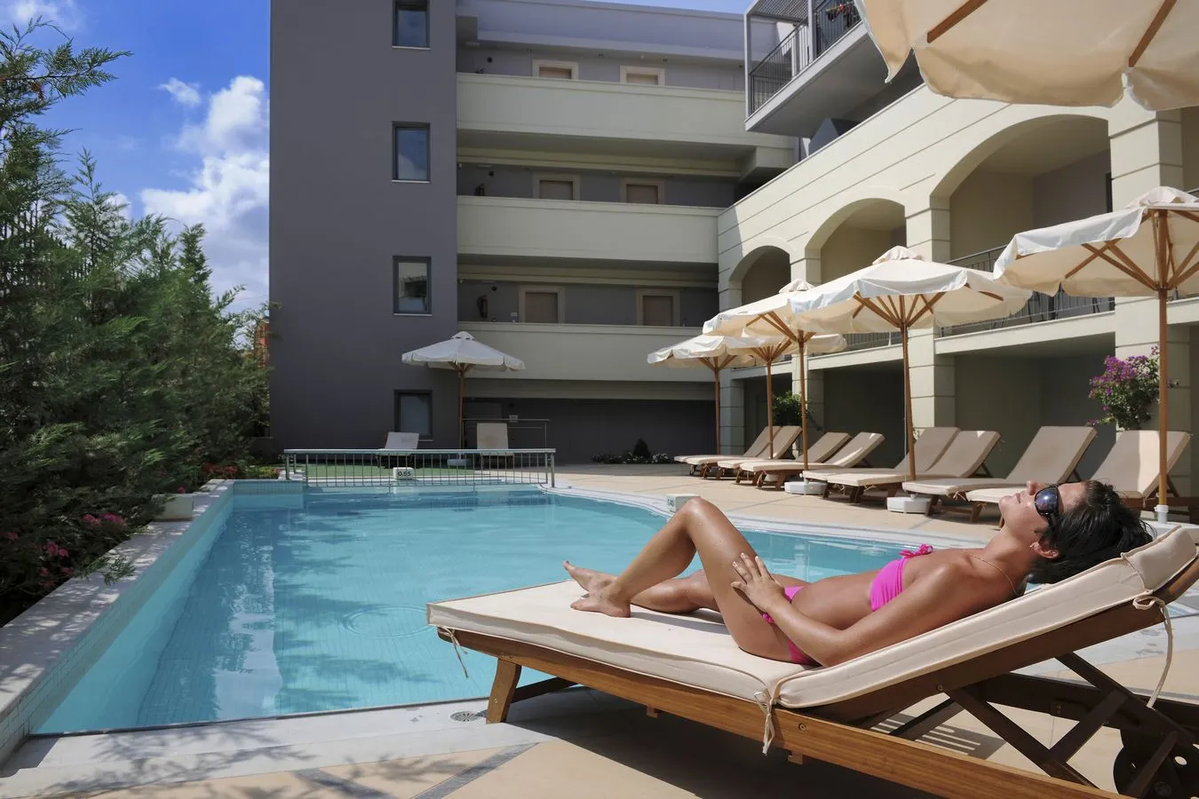 The 112 rooms of the Aegean Pearl offer a high level of comfort and are spread across the ground floor and the two floors. All air-conditioned rooms come with a satellite LCD TV, fridge, coffee/tea-making facilities, hairdryer, bathrobes and slippers. From the furnished balcony guests can enjoy garden views, pool views and some rooms offer sea views. Pearl Hotel's Restaurants compose the perfect gastronomical experience that combines fundamental elements of the renowned Greek cuisine with modern techniques and top-quality raw materials. The Buffet Restaurant offers the half board and bed & breakfast guests, both meals in a buffet style. At the poolside bar the guests can enjoy snacks and drinks. Wellness Center equipped with Indoor pool (heated during low season), gym, Finnish sauna, whirlpool and steam bath, offering massage & beauty treatments.