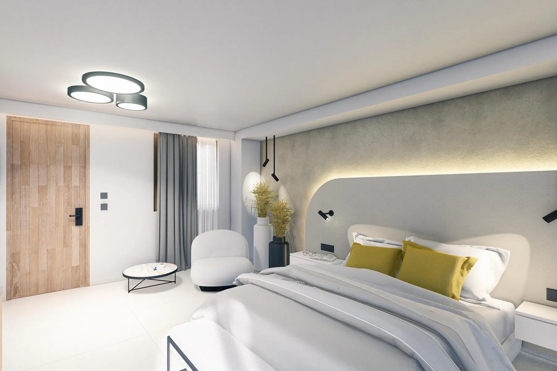 Recently renovated in 2024, the 3-storey beach hotel has 15 rooms in total. It offers its guests a reception (check-in from 14:00, check-out until 12:00), a lobby with bar, a lift, air conditioning, a safe (for free), a parking area (where applicable, for a fee) and a security entry system. For the meals, there is a restaurant and a snack bar. You can relax in good company in the hotel bar. WiFi is available for free. For guests dependent on a wheelchair the accommodation provides a barrier-free access. Room cleaning and concierge service are free of charge. Room service is available for a fee. Pool: In the outdoor area of the hotel you will find one fresh water pool with a separate children´s pool (open from April to October). Here, there are sun loungers and sun umbrellas for free available.