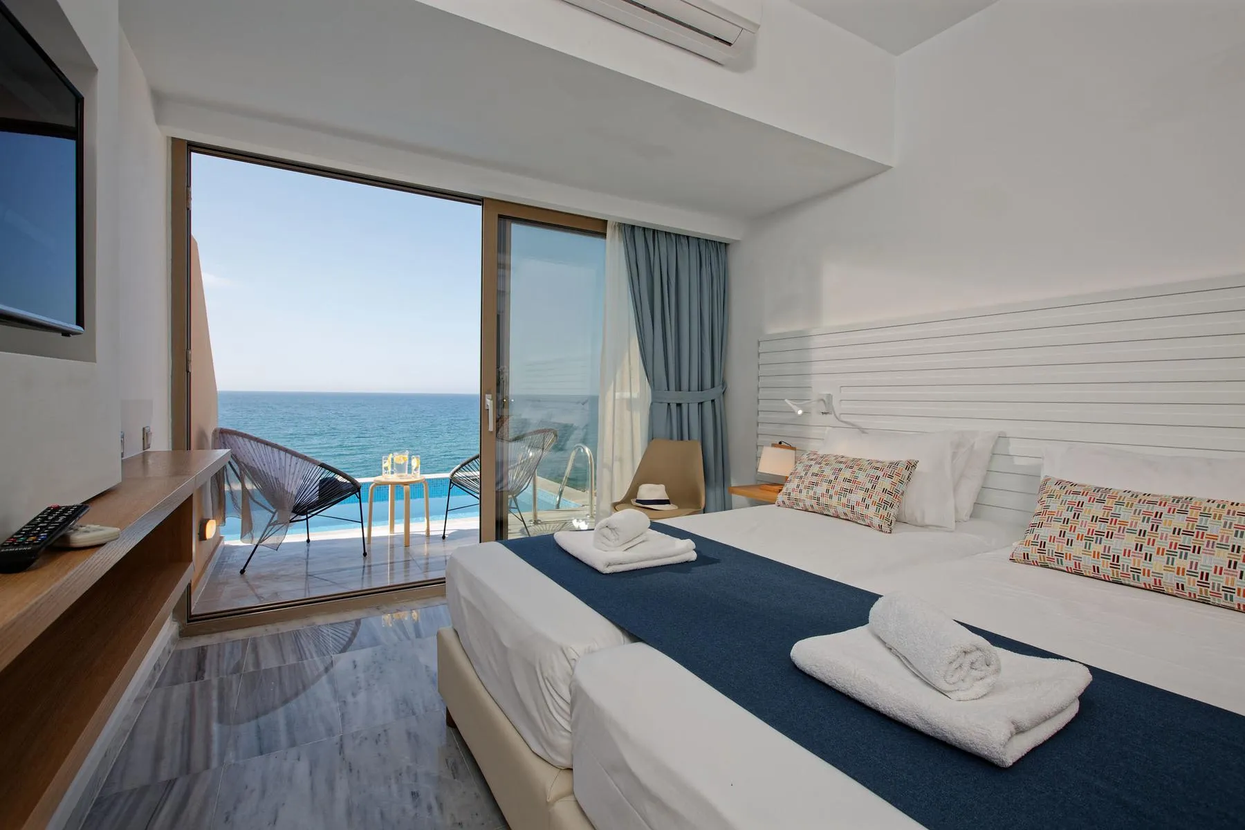Visa and Euro / MasterCard. 1 Bedroom Superior Apartment (SeaView): The rooms are equipped with double bed, extra bed (sofa bed), kitchenette, fridge, kettle (where applicable, for a fee), balcony or terrace, internet (for free), safe (for free) and sat TV with local broadcasters as well as individually adjustable air conditioning and individually adjustable heating. Room size: 20 m². 1 Bedroom Superior Apartment (SeaView, Type B): The rooms are equipped with extra bed (sofa bed), kitchenette, fridge, kettle (where applicable, for a fee), balcony or terrace, internet (for free), safe (for free) and sat TV with local broadcasters as well as individually adjustable air conditioning and individually adjustable heating. Room size: 20 m². Double Superior Room (LateralSeaView): The rooms are equipped with extra bed (sofa bed), kitchenette, fridge, kettle (where applicable, for a fee), balcony or terrace, internet (for free), safe (for free) and sat TV with local broadcasters as well as individually adjustable air conditioning and individually adjustable heating. Room size: 20 m². Superior Studio (SeaView): The rooms are equipped with double bed, extra bed (sofa bed), kitchenette, fridge, kettle (where applicable, for a fee), balcony or terrace, internet (for free), safe (for free) and sat TV with local broadcasters as well as individually adjustable air conditioning and individually adjustable heating. Room size: 24 m². Superior Studio (SeaView, Private Pool ): The rooms are equipped with extra bed (sofa bed), kitchenette, fridge, kettle (where applicable, for a fee), balcony or terrace, internet (for free), safe (for free) and sat TV with local broadcasters as well as individually adjustable air conditioning and individually adjustable heating. Room size: 20 m². Superior Studio (SeaView, Type B): The rooms are equipped with extra bed (sofa bed), kitchenette, fridge, kettle (where applicable, for a fee), balcony or terrace, internet (for free), safe (for free) and sat TV with local broadcasters as well as individually adjustable air conditioning and individually adjustable heating. Room size: 20 m².