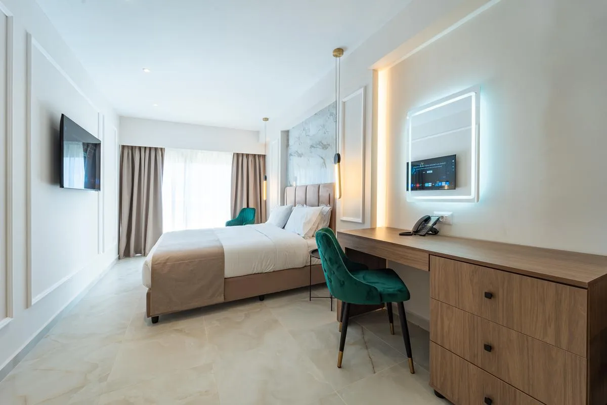 Descriere generală Hotelul din oraș Philia Center Suites, care este deosebit de popular printre cei aflați în luna de miere, se află. Cel mai apropiat oraș este Rhodes Town. În apropierea hotelului sunt diverse magazine și un supermarket. De asemenea, există o discotecă la mică distanță de hotel. De asemenea, la cca. 2 km de hotel este un cinematograf. Există posibilitatea de a închiria mașini și motociclete. De asemenea, aveți în apropiere o stație de autobuz (cca. 150 m) și o stație de taxi (cca. 350 m) cea ce vă garantează mobilitatea pe insulă. Pentru îngrijiri medicale în caz de urgență, există un spital la cca. 6 km distanță. Aeroportul (RHO) se află la aprox. 17 km. Facilități Hotelul, care a fost complet renovat în 2025, dispune de 5 etaje și peste 45 camere. Acesta oferă oaspeților săi recepție (check-in de la 15:00, check out până la 11:00), lobby cu bar și aer condiționat. Accesul la internet WiFi este disponibil gratuit pentru oaspeții hotelului. Room service, spălătorie, călcat și serviciul medical sunt disponibile la un cost suplimentar. Catering Mic dejun (între orele 07:30 - 10:30) bufet suedez. Informații suplimentare Limbi de serviciu: engleză și greacă. Carduri de credit: card EC, Euro/MasterCard și Visa. Familien Suite: Cameră cu pat twin, pat suplimentar, pat pentru bebeluși (gratuit), încălzire reglabilă individual, ceainic (gratuit), acces la internet (gratuit), seif (gratuit), aparat de cafea cu capsule (gratuit), TV prin satelit și canale locale precum și aer condiționat reglabil individual. Baie cu duș. Prosoapele și lenjeria de pat se schimbă de 2 ori pe săptămână. Dimensiune: 50 m². Familien Suite (Nicht erstattbar): Dotate cu pat twin, pat suplimentar, pat pentru bebeluși (gratuit), încălzire reglabilă individual, ceainic (gratuit), acces la internet (gratuit), seif (gratuit), aparat de cafea cu capsule (gratuit), TV prin satelit și canale locale precum și aer condiționat reglabil individual. Baie cu duș. Prosoapele și lenjeria de pat se schimbă de 2 ori pe săptămână. Dimensiune: 50 m². JuniorSuite (Ohne Balkon-Terrasse): Cameră cu pat twin, pat suplimentar, pat pentru bebeluși (gratuit), încălzire reglabilă individual, ceainic (gratuit), acces la internet (gratuit), seif (gratuit), aparat de cafea cu capsule (gratuit), TV prin satelit și canale locale precum și aer condiționat reglabil individual. Baie cu duș. Prosoapele și lenjeria de pat se schimbă de 2 ori pe săptămână. Dimensiune: 35 m². JuniorSuite (Ohne Balkon-Terrasse Nicht erstattbar): Cameră cu pat twin, pat suplimentar, pat pentru bebeluși (gratuit), încălzire reglabilă individual, ceainic (gratuit), acces la internet (gratuit), seif (gratuit), aparat de cafea cu capsule (gratuit), TV prin satelit și canale locale precum și aer condiționat reglabil individual. Baie cu duș. Prosoapele și lenjeria de pat se schimbă de 2 ori pe săptămână. Dimensiune: 35 m². Doppel Deluxe JuniorSuite: Dotate cu pat twin, pat suplimentar, pat pentru bebeluși (gratuit), încălzire reglabilă individual, ceainic (gratuit), balcon, acces la internet (gratuit), seif (gratuit), aparat de cafea cu capsule (gratuit), TV prin satelit și canale locale precum și aer condiționat reglabil individual. Baie cu duș. Prosoapele și lenjeria de pat se schimbă de 2 ori pe săptămână. Dimensiune: 34 m². Doppel Deluxe JuniorSuite (Nicht erstattbar): Cameră cu pat twin, pat suplimentar, pat pentru bebeluși (gratuit), încălzire reglabilă individual, ceainic (gratuit), balcon, acces la internet (gratuit), seif (gratuit), aparat de cafea cu capsule (gratuit), TV prin satelit și canale locale precum și aer condiționat reglabil individual. Baie cu duș. Prosoapele și lenjeria de pat se schimbă de 2 ori pe săptămână. Dimensiune: 34 m². Triple Deluxe JuniorSuite: Dotate cu pat twin, pat suplimentar, pat pentru bebeluși (gratuit), încălzire reglabilă individual, ceainic (gratuit), balcon, acces la internet (gratuit), seif (gratuit), aparat de cafea cu capsule (gratuit), TV prin satelit și canale locale precum și aer condiționat reglabil individual. Baie cu duș. Prosoapele și lenjeria de pat se schimbă de 2 ori pe săptămână. Dimensiune: 34 m². Triple Deluxe JuniorSuite (Nicht erstattbar): Dotate cu pat twin, pat suplimentar, pat pentru bebeluși (gratuit), încălzire reglabilă individual, ceainic (gratuit), balcon, acces la internet (gratuit), seif (gratuit), aparat de cafea cu capsule (gratuit), TV prin satelit și canale locale precum și aer condiționat reglabil individual. Baie cu duș. Prosoapele și lenjeria de pat se schimbă de 2 ori pe săptămână. Dimensiune: 34 m². Doppel Deluxe Zimmer: Cameră cu pat twin, pat suplimentar, pat pentru bebeluși (gratuit), încălzire reglabilă individual, ceainic (gratuit), balcon, acces la internet (gratuit), seif (gratuit), aparat de cafea cu capsule (gratuit), TV prin satelit și canale locale precum și aer condiționat reglabil individual. Baie cu duș. Prosoapele și lenjeria de pat se schimbă de 2 ori pe săptămână. Dimensiune: 30 m². Doppel Deluxe Zimmer (Nicht erstattbar): Dotate cu pat twin, pat suplimentar, pat pentru bebeluși (gratuit), încălzire reglabilă individual, ceainic (gratuit), balcon, acces la internet (gratuit), seif (gratuit), aparat de cafea cu capsule (gratuit), TV prin satelit și canale locale precum și aer condiționat reglabil individual. Baie cu duș. Prosoapele și lenjeria de pat se schimbă de 2 ori pe săptămână. Dimensiune: 30 m². Doppel Standard Zimmer: Cameră cu pat twin, pat suplimentar, pat pentru bebeluși (gratuit), încălzire reglabilă individual, ceainic (gratuit), balcon, acces la internet (gratuit), seif (gratuit), aparat de cafea cu capsule (gratuit), TV prin satelit și canale locale precum și aer condiționat reglabil individual. Baie cu duș. Prosoapele și lenjeria de pat s