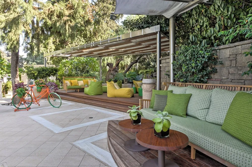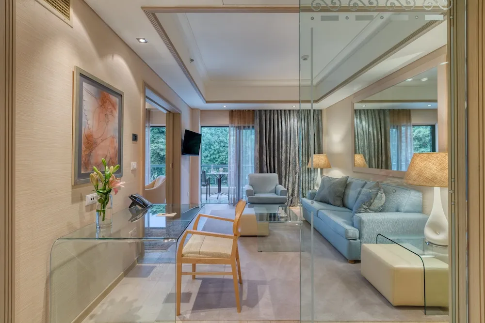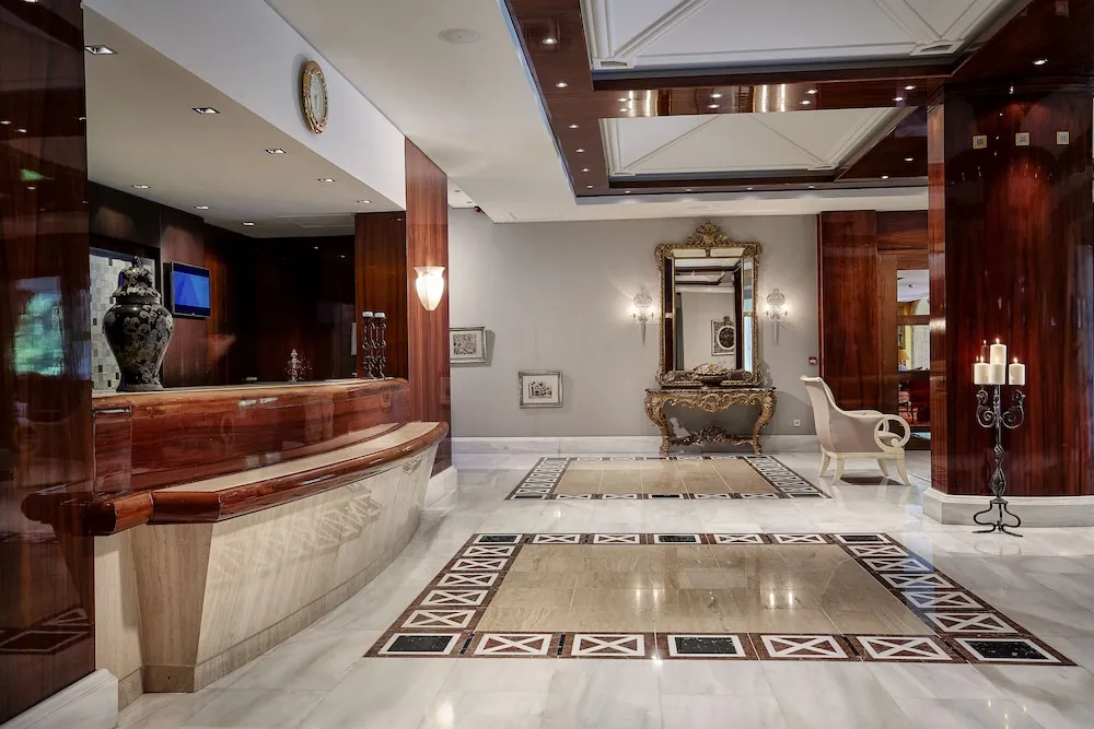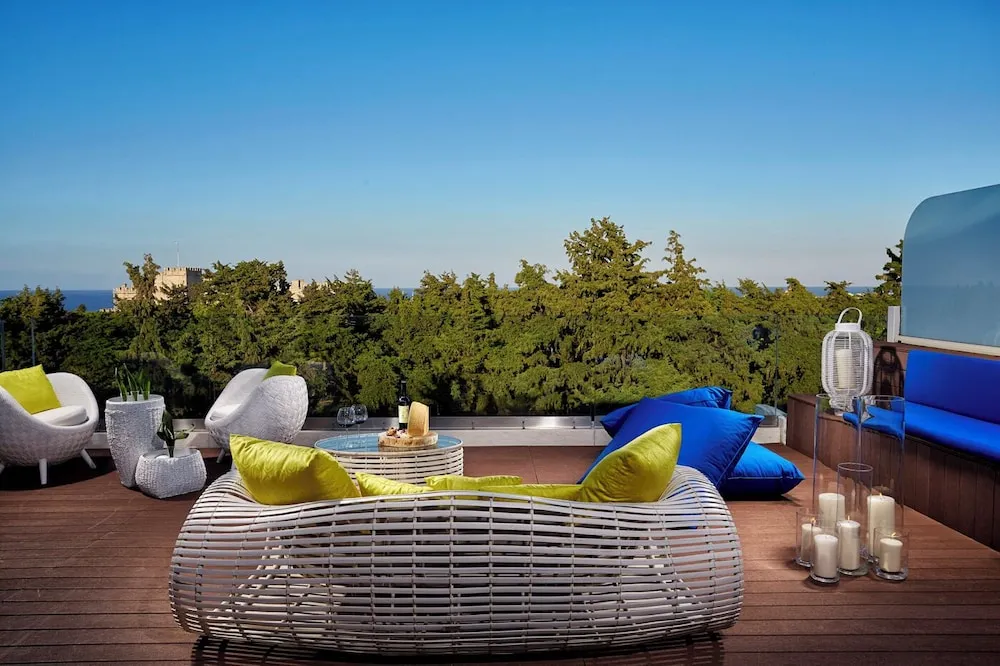 The hotel Rodos Park Suites & Spa is located approximately 1,2 km from a beach. The hotel has a 24h reception, a lobby bar as well as Wi-Fi (for a fee). In the outdoor area you will find a pool that is open seasonally. You can store your luggage in the hotel's storage room. There is also a laundry service available at an additional cost to customers. Ironing equipment can be rented at the hotel for a fee. Euro/Master Card and Visa are accepted as means of payment. Catering As catering services the hotel offers half board and breakfast only. Distances