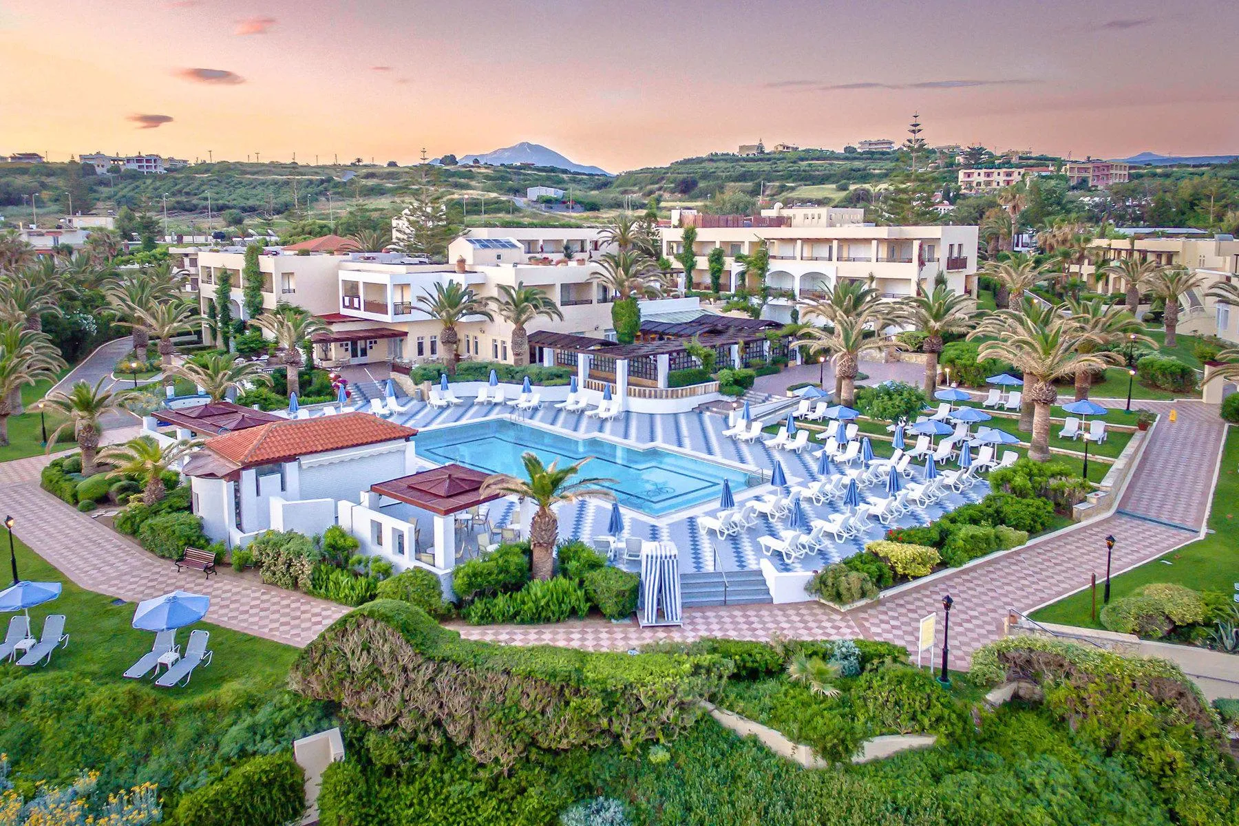 The hotel Creta Royal (adults only), especially popular with honeymooners, is located approx. 50 m from a sandy beach. At the beach, there are sun loungers and sun umbrellas free of charge. The tourist centre is about 6 km away. The town Rethymno is around 12 km away (Heraklion around 65 km, Chania around 70 km). The nearest shopping facilities are located approx. 6 km from the hotel, a supermarket can be reached after around 50 m. It is 2 km from the hotel to the nearest bars and restaurants. For evening dancing you will find a nightclub in a distance of approx. 12 km. Further entertainment facilities such as a cinema and a theatre are approx. 12 km away.