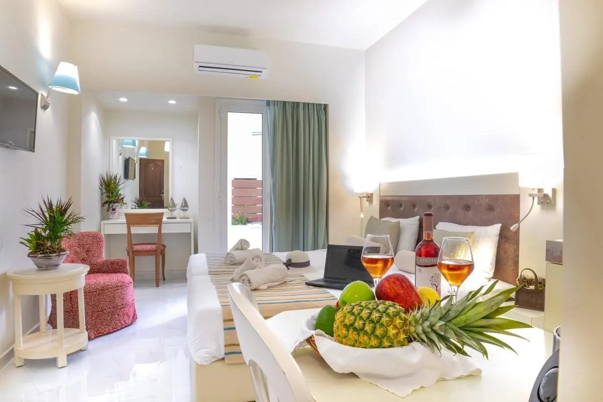 Descriere generală La cca. 260 m de o plajă cu nisip veți găsi hotelul Camelot Royal Beds. Pe plajă sunt disponibile șezlonguri și umbrele de soare la un cost suplimentar. Centrul turistic al stațiunii se află la doar câțiva metri de distanța. Orașul Heraklion este la aprox. 35 km. Un supermarket este la cca. 100 m. La cele mai apropiate baruri și restaurante se poate ajunge, de asemenea, într-un timp foarte scurt. Următoarele atracții pot fi accesate de la hotel: Malia Strip, Lixnostatis Folk Museum, Aquaworld Aquarium, Acqua Plus Waterpark și Labyrinth Park. Aveți la dispoziție o stație de autobuz (cca. 200 m) cea ce vă garantează mobilitatea în timpul vacanțelor. Pentru îngrijiri medicale în caz de urgență, există un spital la cca. 35 km distanță. Aeroportul (CHQ) se află la aprox. 177 km. Un alt aeroport (HER) este la cca. 28 km. Facilități Hotelul familiar, care a fost complet renovat în 2021, dispune de 2 etaje și peste 20 camere repartizate între o clădire principală și o clădire secundară. Hotelul are recepție (check-in de la 15:00, check out până la 11:00) și parcare (gratuită). Pentru a servi masa vă stau la dispoziție un restaurant și un snackbar. Accesul la internet WiFi este disponibil gratuit pentru oaspeții hotelului. Spălătorie și călcat sunt disponibile la un cost suplimentar. Este posibil să se perceapă un cost suplimentar pentru serviciul de menaj și room service. Piscină În grădinile modernului hotelul există o piscină cu apă dulce. Acolo sunt disponibile gratuit șezlonguri și umbrele de soare. Catering Mic dejun (între orele 08:30 - 10:30) bufet suedez. Demipensiunea include micul dejun și cina. Sport/Leisure Oferte pentru sport și divertisment: Tenis (posibil contra cost, la cca. 200 m distanță). La cca. 100 m de hotel, sunt oferite sporturi nautice (unele de către furnizori locali). La cca. 15 km de hotel este un teren de golf. Informații suplimentare Pentru anumite facilități sau activități se pot aplica taxe suplimentare. Unele servicii depind de anotimp și de condițiile climatice locale. Limbi de serviciu: engleză și greacă. Carduri de credit: Visa și Euro/MasterCard. Studio: Dotate cu pat dublu sau pat single, o canapea extensibilă ca pat suplimentar, pat pentru bebeluși (gratuit), chicinetă, ceainic (gratuit), balcon sau terasă, acces la internet (gratuit), seif (contra cost) și TV cu ecran plat precum și aer condiționat reglabil individual (contra cost). Baie cu duș. Prosoapele și lenjeria de pat se schimbă de 3 ori pe săptămână. Dimensiune: 35 m². Studio (Type B): Cameră cu pat dublu sau pat single, o canapea extensibilă ca pat suplimentar, pat pentru bebeluși (gratuit), chicinetă, ceainic (gratuit), balcon sau terasă, acces la internet (gratuit), seif (contra cost) și TV cu ecran plat precum și aer condiționat reglabil individual (contra cost). Baie cu duș. Prosoapele și lenjeria de pat se schimbă de 3 ori pe săptămână. Dimensiune: 35 m². Einzelbelegung Studio: Dotate cu pat dublu și , o canapea extensibilă ca pat suplimentar. Dimensiune: 35 m². Einzelbelegung Studio (Type B): Dotate cu pat dublu și , o canapea extensibilă ca pat suplimentar. Dimensiune: 35 m². Dreifach Studio: Cameră cu pat dublu sau pat single, o canapea extensibilă ca pat suplimentar, pat pentru bebeluși (gratuit), chicinetă, ceainic (gratuit), balcon sau terasă, acces la internet (gratuit), seif (contra cost) și TV cu ecran plat precum și aer condiționat reglabil individual (contra cost). Baie cu duș. Prosoapele și lenjeria de pat se schimbă de 3 ori pe săptămână. Dimensiune: 35 m². Dreifach Studio (Type B): Dotate cu pat dublu sau pat single, o canapea extensibilă ca pat suplimentar, pat pentru bebeluși (gratuit), chicinetă, ceainic (gratuit), balcon sau terasă, acces la internet (gratuit), seif (contra cost) și TV cu ecran plat precum și aer condiționat reglabil individual (contra cost). Baie cu duș. Prosoapele și lenjeria de pat se schimbă de 3 ori pe săptămână. Dimensiune: 35 m². Dreifach Studio (TypeC): Cameră cu pat dublu și , o canapea extensibilă ca pat suplimentar. Dimensiune: 35 m². Doppel Deluxe Studio: Dotate cu pat dublu sau pat single, o canapea extensibilă ca pat suplimentar, pat pentru bebeluși (gratuit), chicinetă, ceainic (gratuit), balcon sau terasă, acces la internet (gratuit), seif (contra cost) și TV cu ecran plat precum și aer condiționat reglabil individual (contra cost). Baie cu duș. Prosoapele și lenjeria de pat se schimbă de 3 ori pe săptămână. Dimensiune: 35 m². Einzelbelegung Deluxe Studio: Dotate cu pat dublu și , o canapea extensibilă ca pat suplimentar. Dimensiune: 35 m².