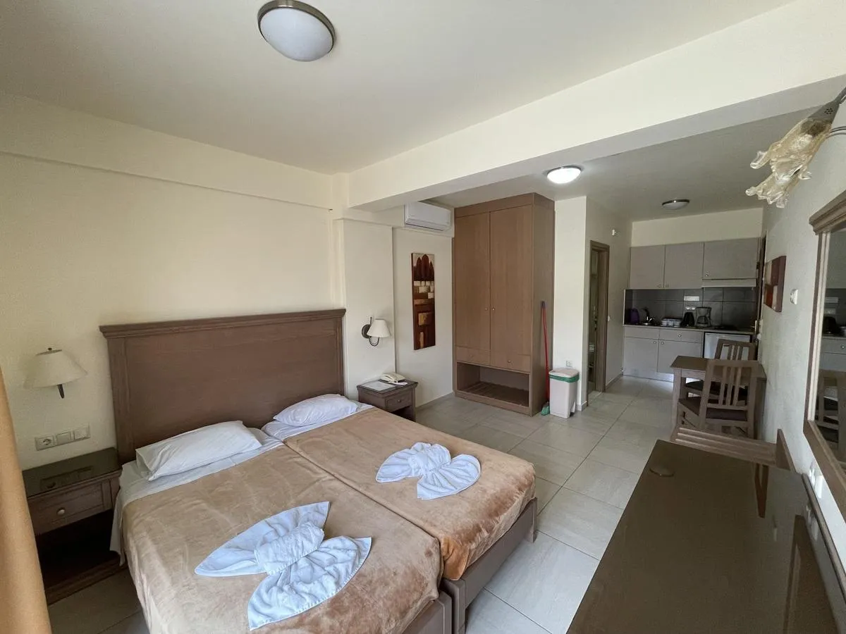 English and German. Standard Apartment (GardenView): With twin bed, baby cot (for free), kitchenette, balcony, kettle (for free), internet (for free) and safe (for a fee) as well as individually adjustable air conditioning (extra fee). Bathroom with shower (room size: 40 m²). Standard Studio (GardenView): With twin bed, kitchenette, balcony, kettle (for free), internet (for free) and safe (for a fee) as well as individually adjustable air conditioning (extra fee). Bathroom with shower (room size: 40 m²). Triple Standard Studio (GardenView): With twin bed, baby cot (for free), kitchenette, balcony, kettle (for free), internet (for free) and safe (for a fee) as well as individually adjustable air conditioning (extra fee). Bathroom with shower (room size: 40 m²). Superior Studio: With twin bed, kitchenette, balcony, kettle (for free), internet (for free) and safe (for a fee) as well as individually adjustable air conditioning (extra fee). Bathroom with shower (room size: 40 m²).