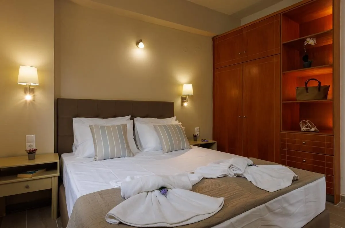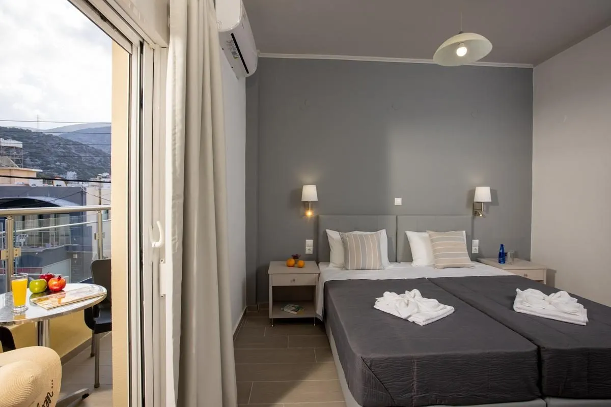 Descriere generală Hotelul Panorama Apts este situat la cca. 270 m de o plajă cu nisip. Pe plajă sunt disponibile umbrele de soare și șezlonguri la un cost suplimentar. Locul de cazare se află la doar câțiva metri de centrul turistic al stațiunii. Orașul Malia este la aprox. 4 km. Veți găsi un supermarket la cca. 1 km. La cele mai apropiate baruri și restaurante se poate ajunge într-un timp foarte scurt. Următoarele atracții pot fi accesate de la hotel: Lixnostatis Folk Museum (cca. 3 km), Aquaworld Aquarium (cca. 5 km) și Cretaquarium Thalassocosmos (cca. 14 km). Aveți la dispoziție o stație de autobuz (cca. 100 m) cea ce vă garantează mobilitatea în vacanță. Aeroportul (CHQ) se află la aprox. 177 km. Un alt aeroport (HER) este la cca. 28 km. Facilități Hotelul, care a fost complet renovat în 2023, dispune de 3 etaje și peste 42 camere repartizate între o clădire principală și de 4 clădiri secundare. Acesta oferă oaspeților săi recepție (check-in de la 15:00, check out până la 11:00), lobby și seif (contra cost). Pentru a satisface apetitul vă stau la dispoziție un restaurant. Accesul la internet WiFi este disponibil gratuit pentru oaspeții hotelului. Serviciul de menaj este gratuit. Piscină Zona exterioară a hotelului include o piscină cu apă dulce precum și o piscină pentru copii integrată în piscina principală. La piscină sunt disponibile gratuit șezlonguri și umbrele de soare. Catering Mic dejun (între orele 08:00 - 10:30) bufet suedez. Informații suplimentare Pentru anumite facilități sau activități se pot aplica taxe suplimentare. Unele servicii depind de anotimp și de condițiile climatice locale. Limbi de serviciu: engleză și greacă. Doppel Annex Zimmer: Cameră cu pat dublu, încălzire (reglabilă individual, contra cost), ceainic (gratuit), balcon, acces la internet (gratuit), seif (contra cost) și TV cu ecran plat precum și aer condiționat reglabil individual (contra cost). Baie cu duș. Prosoapele și lenjeria de pat se schimbă de 2 ori pe săptămână. Dimensiune: 18 m². Doppel Studio: Cameră cu pat dublu, pat pentru bebeluși (gratuit), chicinetă, încălzire (reglabilă individual, contra cost), ceainic (gratuit), balcon sau terasă, acces la internet (gratuit), seif (contra cost) și TV cu ecran plat precum și aer condiționat reglabil individual (contra cost). Baie cu duș. Prosoapele și lenjeria de pat se schimbă de 2 ori pe săptămână. Dimensiune: 20 m².