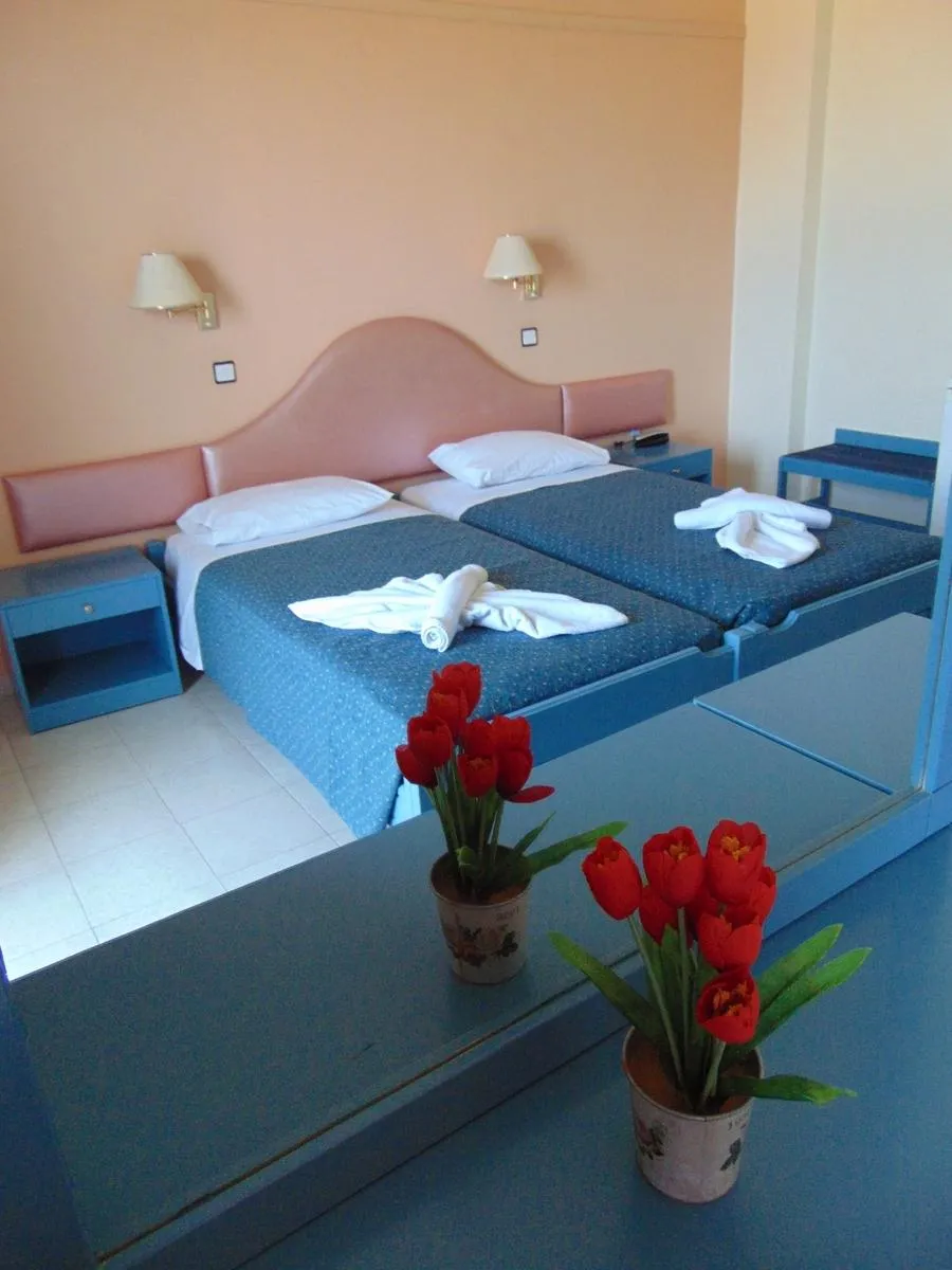 Euro / MasterCard, American Express and Visa. Double Standard Room (Inland View, TypeB): The comfortable furnished rooms are equipped with double bed or twin bed, baby cot (for free), tiled floor, balcony, internet (for free), safe (for free) and sat TV with local broadcasters as well as individually adjustable air conditioning (from May to October, extra fee). Towels are changed 3 times a week (free of charge). Bed linen is changed. Room size: 22 - 26 m². Double Standard Room (Inland View, Balcony or Terrace): The comfortable furnished rooms are equipped with double bed or twin bed, baby cot (for free), tiled floor, balcony, internet (for free), safe (for free) and sat TV with local broadcasters as well as individually adjustable air conditioning (from May to October, extra fee). Towels are changed 3 times a week (free of charge). Bed linen is changed. Room size: 22 - 26 m². Double Standard Room (SeaView, TypeB): The comfortable furnished rooms are equipped with double bed or twin bed, baby cot (for free), tiled floor, balcony, internet (for free), safe (for free) and sat TV with local broadcasters as well as individually adjustable air conditioning (from May to October, extra fee). Towels are changed 3 times a week (free of charge). Bed linen is changed. Room size: 22 - 26 m². Double Standard Room (SeaView, Balcony or Terrace): The comfortable furnished rooms are equipped with double bed or twin bed, baby cot (for free), tiled floor, balcony, internet (for free), safe (for free) and sat TV with local broadcasters as well as individually adjustable air conditioning (from May to October, extra fee). Towels are changed 3 times a week (free of charge). Bed linen is changed. Room size: 22 - 26 m². Triple Standard Room (Balcony or Terrace): The comfortable furnished rooms are equipped with double bed or single bed, baby cot (for free), tiled floor, balcony, internet (for free), safe (for free) and sat TV with local broadcasters as well as individually adjustable air conditioning (from May to October, extra fee). Towels are changed 3 times a week (free of charge). Bed linen is changed. Room size: 22 - 26 m². Superior Room (SeaView, Balcony or Terrace): The comfortable furnished rooms are equipped with double bed or twin bed, baby cot (for free), tiled floor, kettle (for free), balcony, internet (for free) and sat TV with local broadcasters as well as individually adjustable air conditioning (from May to October, extra fee). Towels are changed 3 times a week (free of charge). Bed linen is changed. Room size: 22 - 26 m². Double Superior Room (Inland View, Balcony or Terrace): The comfortable furnished rooms are equipped with double bed or twin bed, baby cot (for free), tiled floor, kettle (for free), balcony, internet (for free) and sat TV with local broadcasters as well as individually adjustable air conditioning (from May to October, extra fee). Towels are changed 3 times a week (free of charge). Bed linen is changed. Room size: 22 - 26 m². Double Superior Room (SeaView, TypeB): The comfortable furnished rooms are equipped with double bed or twin bed, baby cot (for free), tiled floor, kettle (for free), balcony, internet (for free) and sat TV with local broadcasters as well as individually adjustable air conditioning (from May to October, extra fee). Towels are changed 3 times a week (free of charge). Bed linen is changed. Room size: 22 - 26 m². Triple Superior Room (Balcony or Terrace): The comfortable furnished rooms are equipped with double bed or single bed, baby cot (for free), tiled floor, kettle (for free), balcony, internet (for free) and sat TV with local broadcasters as well as individually adjustable air conditioning (from May to October, extra fee). Towels are changed 3 times a week (free of charge). Bed linen is changed. Room size: 22 - 26 m².