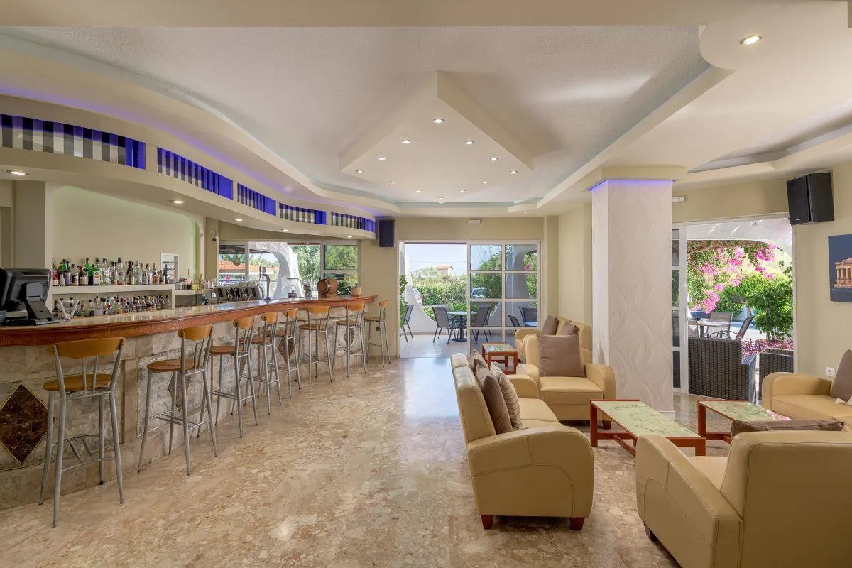 Partially renovated in 2023, the one-storey beach hotel has 47 rooms in total. It offers its guests a reception (check-in from 14:00, check-out until 11:00), a lobby with bar, air conditioning, a safe (for free), a free parking area and a money changing facility. For the meals, there is a restaurant and a snack bar (open from 10:00 - 23:00). You can relax in good company in the hotel bar. WiFi is available for free. For guests dependent on a wheelchair the hotel has a barrier-free access. Room cleaning and concierge service are free of charge. Laundry / ironing service and medical service are available for a fee. Pool: In the outdoor area of the mediterranean-style hotel you will find one fresh water pool. Here, there are sun loungers and sun umbrellas for free available.