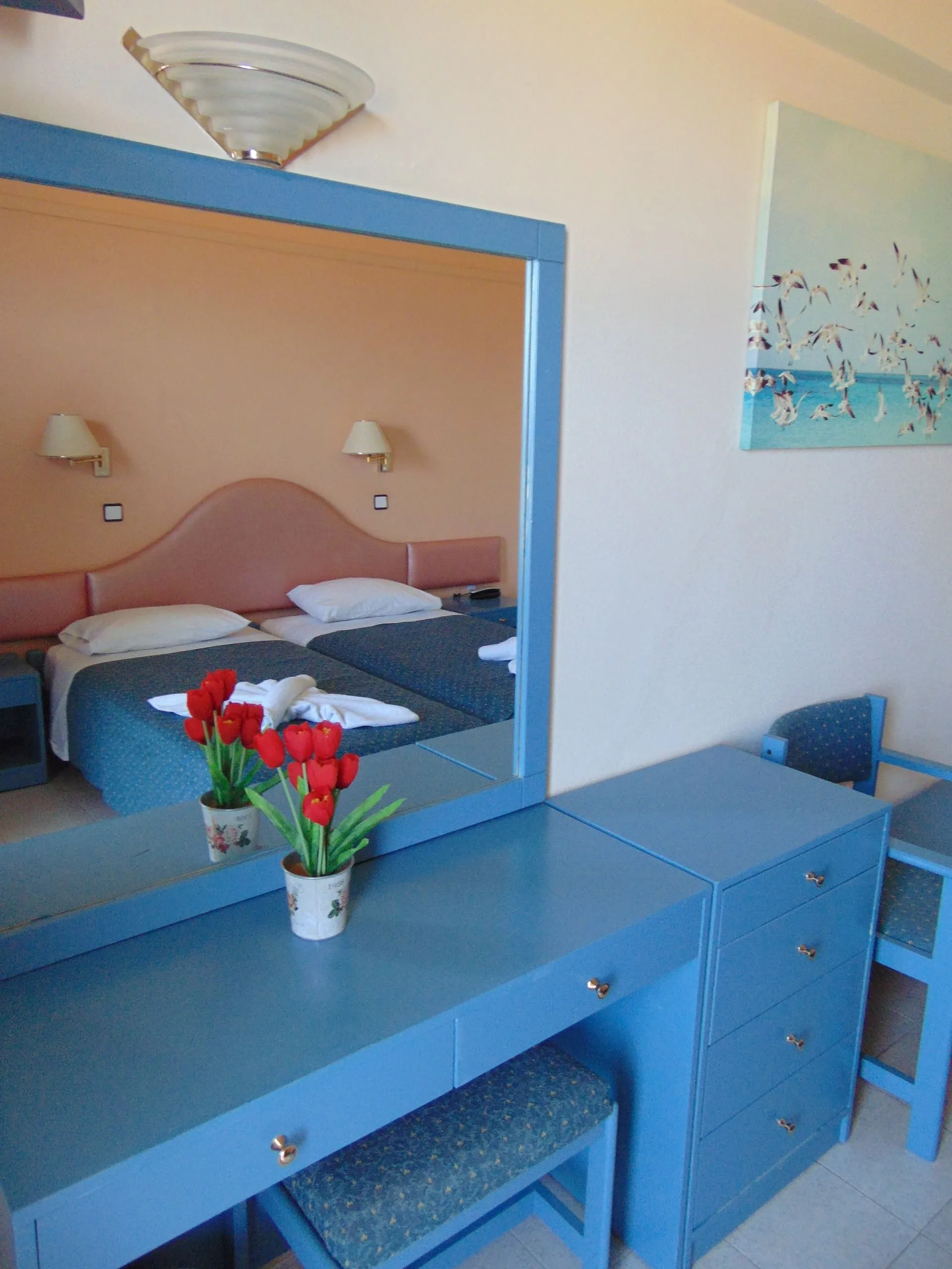 Sports & Leisure For an fee, you can take advantage of various water sports, such as bananaboats. There is also the option to play billiards. Also squash (extra fee) is offered at the hotel. In addition to a tennis court there is also a tennis rental. For cyclists there is a bicycle rental (extra fee). Furthermore, various water sports such as windsurfing are offered in the area. Additional information The hotel has a total of 47 rooms. The hotel staff speak Greek.