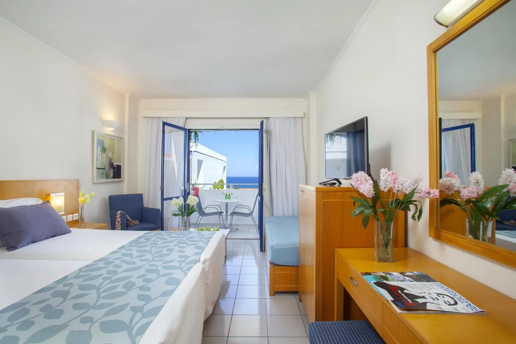 American Express, Visa and Euro / MasterCard. Junior Suite (Inland View): The modern and cosy furnished rooms are equipped with double bed, single bed or twin bed, baby cot (for free), kettle (for free), capsule coffee machine (where applicable, for a fee), balcony or terrace, internet (for a fee), safe (for a fee) and sat TV as well as centrally controlled air conditioning. Bathroom with bathtub and shower (room size: 30 m²). Towels are changed 3 times a week. Bed linen is changed. Junior Suite (SeaFront): The modern and cosy furnished rooms are equipped with double bed, single bed or twin bed, baby cot (for free), kettle (for free), capsule coffee machine (where applicable, for a fee), balcony or terrace, internet (for a fee), safe (for a fee) and sat TV as well as centrally controlled air conditioning. Bathroom with bathtub and shower (room size: 30 m²). Towels are changed 3 times a week. Bed linen is changed. Junior Suite (SeaFront, Package): The modern and cosy furnished rooms are equipped with double bed, single bed or twin bed, baby cot (for free), kettle (for free), capsule coffee machine (where applicable, for a fee), balcony or terrace, internet (for a fee), safe (for a fee) and sat TV as well as centrally controlled air conditioning. Bathroom with bathtub and shower (room size: 30 m²). Towels are changed 3 times a week. Bed linen is changed. Junior Suite (SeaView): The modern and cosy furnished rooms are equipped with double bed, single bed or twin bed, extra bed (sofa bed), baby cot (for free), kettle (for free), capsule coffee machine (where applicable, for a fee), balcony or terrace, internet (for a fee), safe (for a fee) and sat TV as well as centrally controlled air conditioning. Bathroom with bathtub and shower (room size: 30 m²). Towels are changed 3 times a week. Bed linen is changed. Junior Suite (SeaView, SwimUp-PoolTerrace): The modern and cosy furnished rooms are equipped with double bed, single bed or twin bed, baby cot (for free), kettle (for free), capsule coffee machine (where applicable, for a fee), balcony or terrace, internet (for a fee), safe (for a fee) and sat TV as well as centrally controlled air conditioning. Bathroom with bathtub and shower (room size: 30 m²). Towels are changed 3 times a week. Bed linen is changed. Junior Suite (SeaView, SwimUp-PoolTerrace SpecialPackage): The modern and cosy furnished rooms are equipped with double bed, single bed or twin bed, baby cot (for free), kettle (for free), capsule coffee machine (where applicable, for a fee), balcony or terrace, internet (for a fee), safe (for a fee) and sat TV as well as centrally controlled air conditioning. Bathroom with bathtub and shower (room size: 30 m²). Towels are changed 3 times a week. Bed linen is changed. Single Junior Suite (SeaFront): The modern and cosy furnished rooms are equipped with double bed, single bed or twin bed, baby cot (for free), kettle (for free), capsule coffee machine (where applicable, for a fee), balcony or terrace, internet (for a fee), safe (for a fee) and sat TV as well as centrally controlled air conditioning. Bathroom with bathtub and shower (room size: 30 m²). Towels are changed 3 times a week. Bed linen is changed. Single Junior Suite (SeaFront, Package): The modern and cosy furnished rooms are equipped with double bed, single bed or twin bed, baby cot (for free), kettle (for free), capsule coffee machine (where applicable, for a fee), balcony or terrace, internet (for a fee), safe (for a fee) and sat TV as well as centrally controlled air conditioning. Bathroom with bathtub and shower (room size: 30 m²). Towels are changed 3 times a week. Bed linen is changed. Single Junior Suite (SeaView, SwimUp-PoolTerrace): The modern and cosy furnished rooms are equipped with double bed, single bed or twin bed, baby cot (for free), kettle (for free), capsule coffee machine (where applicable, for a fee), balcony or terrace, internet (for a fee), safe (for a fee) and sat TV as well as centrally controlled air conditioning. Bathroom with bathtub and shower (room size: 30 m²). Towels are changed 3 times a week. Bed linen is changed. Single Junior Suite (SeaView, SwimUp-PoolTerrace SpecialPackage): The modern and cosy furnished rooms are equipped with double bed, single bed or twin bed, baby cot (for free), kettle (for free), capsule coffee machine (where applicable, for a fee), balcony or terrace, internet (for a fee), safe (for a fee) and sat TV as well as centrally controlled air conditioning. Bathroom with bathtub and shower (room size: 30 m²). Towels are changed 3 times a week. Bed linen is changed. Double Room (Inland View): The modern and cosy furnished rooms are equipped with double bed, single bed or twin bed, baby cot (for free), kettle (for free), capsule coffee machine (where applicable, for a fee), balcony or terrace, internet (for a fee), safe (for a fee) and sat TV as well as centrally controlled air conditioning. Bathroom with bathtub and shower (room size: 30 m²). Towels are changed 3 times a week. Bed linen is changed. Double Room (Inland View, Package): The modern and cosy furnished rooms are equipped with double bed, single bed or twin bed, baby cot (for free), kettle (for free), capsule coffee machine (where applicable, for a fee), balcony or terrace, internet (for a fee), safe (for a fee) and sat TV as well as centrally controlled air conditioning. Bathroom with bathtub and shower (room size: 30 m²). Towels are changed 3 times a week. Bed linen is changed. Double Room (LateralSeaView): The modern and cosy furnished rooms are equipped with double bed, single bed or twin bed, baby cot (for free), kettle (for free), capsule coffee machine (where applicable, for a fee), balcony or terrace, internet (for a fee), safe (for a fee) and sat TV as well as centrally controlled air conditioning. Bathroom with bathtub and shower (room size: 30 m²). Towels are changed 3 times a week. Bed linen is changed. Double Room (LateralSeaView, Package): T