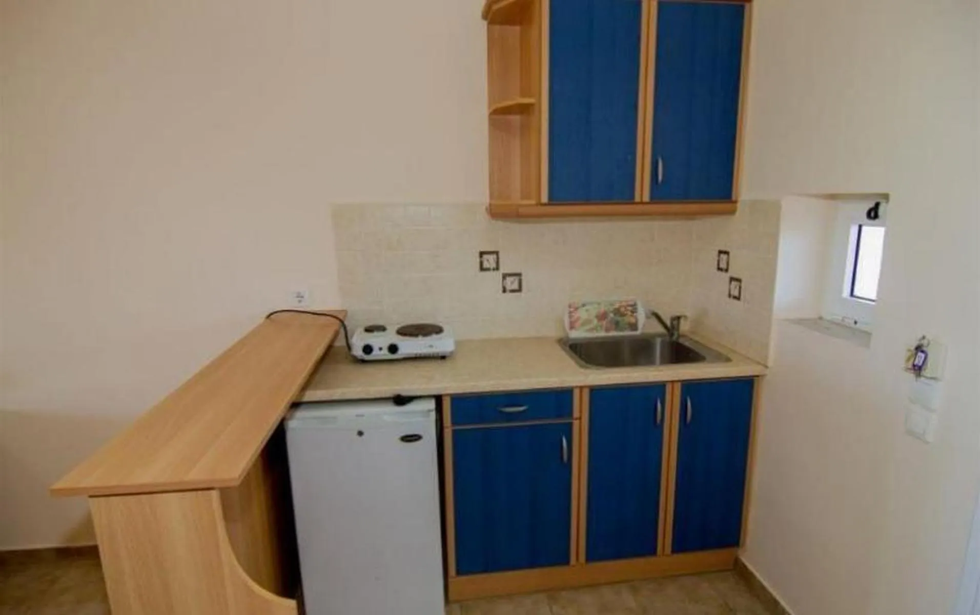 Descriere generală Hotelul Sandy Maria Hotel este locat la cca. 500 m de o plajă cu nisip. Pe plajă sunt disponibile șezlonguri și umbrele de soare la un cost suplimentar. Centrul turistic al stațiunii se află la aprox. 500 m. Orașul Tsilivi este la aprox. 500 m (Zakynthos cca. 4 km). Puteți face cumpărături în diverse magazine și într-un magazin alimentar aflat la cca. 500 m distanță. De asemenea, cele mai apropiate baruri și restaurante sunt la cca. 500 m. O discotecă aflată la aprox. 500 m vă invită la dans. Hotelul dispune de serviciu de rentacar. De asemenea, aveți în apropiere o stație de autobuz (cca. 300 m) și o stație de taxi (cca. 500 m) cea ce vă garantează mobilitatea pe insulă. Pentru îngrijiri medicale în caz de urgență, există un spital la cca. 4 km distanță. Aeroportul (ZTH) se află la aprox. 8 km. Facilități Hotelul dispune de 3 etaje și peste 35 camere repartizate între o clădire principală și o clădire secundară. Acesta oferă oaspeților săi recepție (check-in de la 14:00, check out până la 11:00), lobby, parcare (gratuită) și birou de schimb valutar. Pentru a satisface apetitul aveți la dispoziție în hotel un snackbar. Accesul la internet WiFi este disponibil gratuit pentru oaspeții hotelului. Piscină În grădinile acestui hotelul există o piscină pentru copii. Acolo sunt disponibile gratuit șezlonguri și umbrele de soare. La barul piscinei va puteți bucura de o băutura răcoritoare. Sport/Leisure Există serviciu de închiriere de biciclete. Informații suplimentare Pentru anumite facilități sau activități se pot aplica taxe suplimentare. Unele servicii depind de anotimp și de condițiile climatice locale. Limba de serviciu: engleză. 1 Schlafzimmer Apartment: Cameră cu pat twin, o canapea extensibilă ca pat suplimentar, pat pentru bebeluși (contra cost), chicinetă, ceainic (gratuit), balcon sau terasă și seif (contra cost) precum și aer condiționat reglabil individual (contra cost). Baie cu duș. Dimensiune: 50 m². Standard Studio: Dotate cu pat twin, pat pentru bebeluși (contra cost), chicinetă, ceainic (gratuit), balcon sau terasă și seif (contra cost) precum și aer condiționat reglabil individual (contra cost). Baie cu duș. Dimensiune: 35 m².