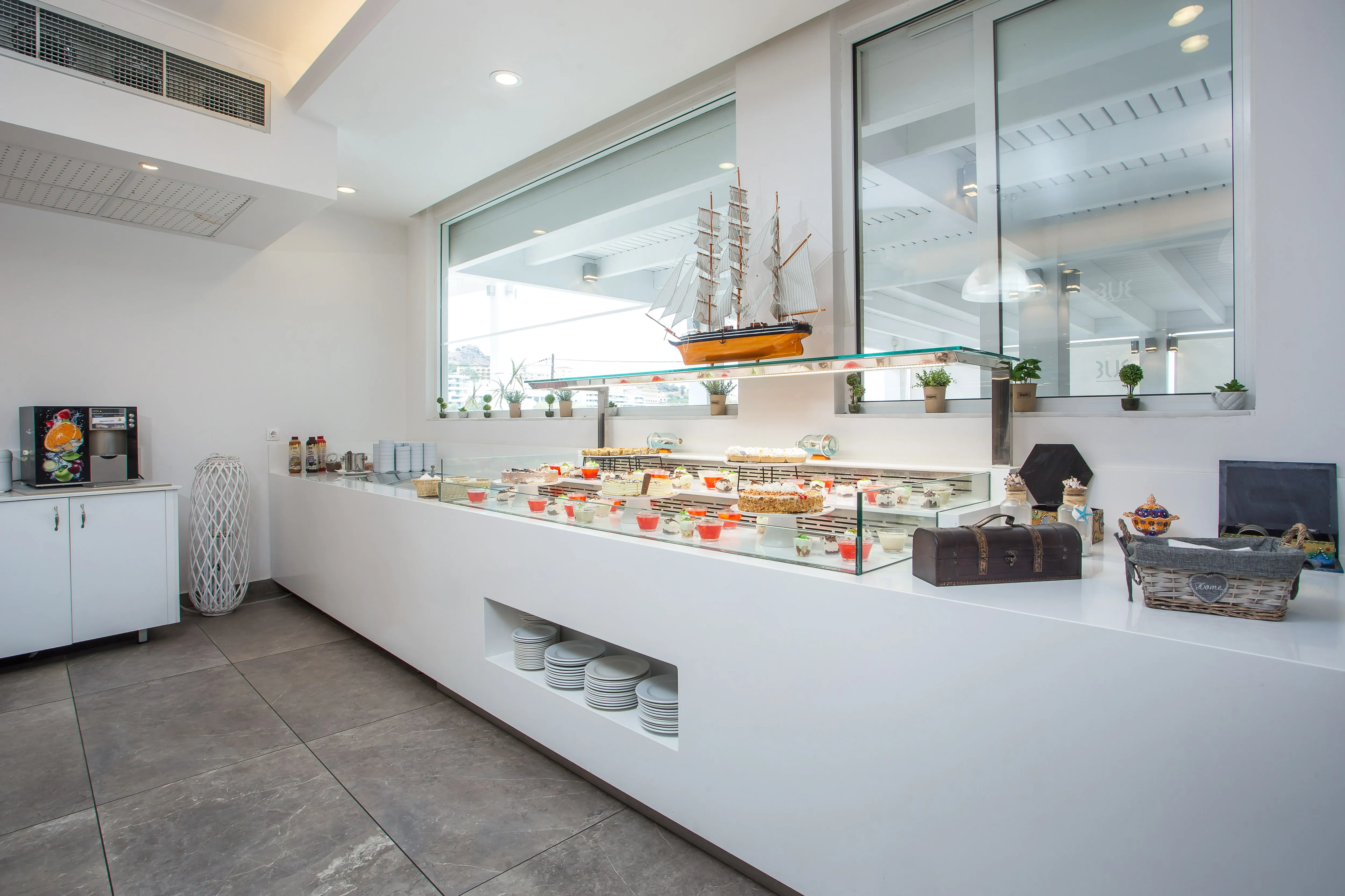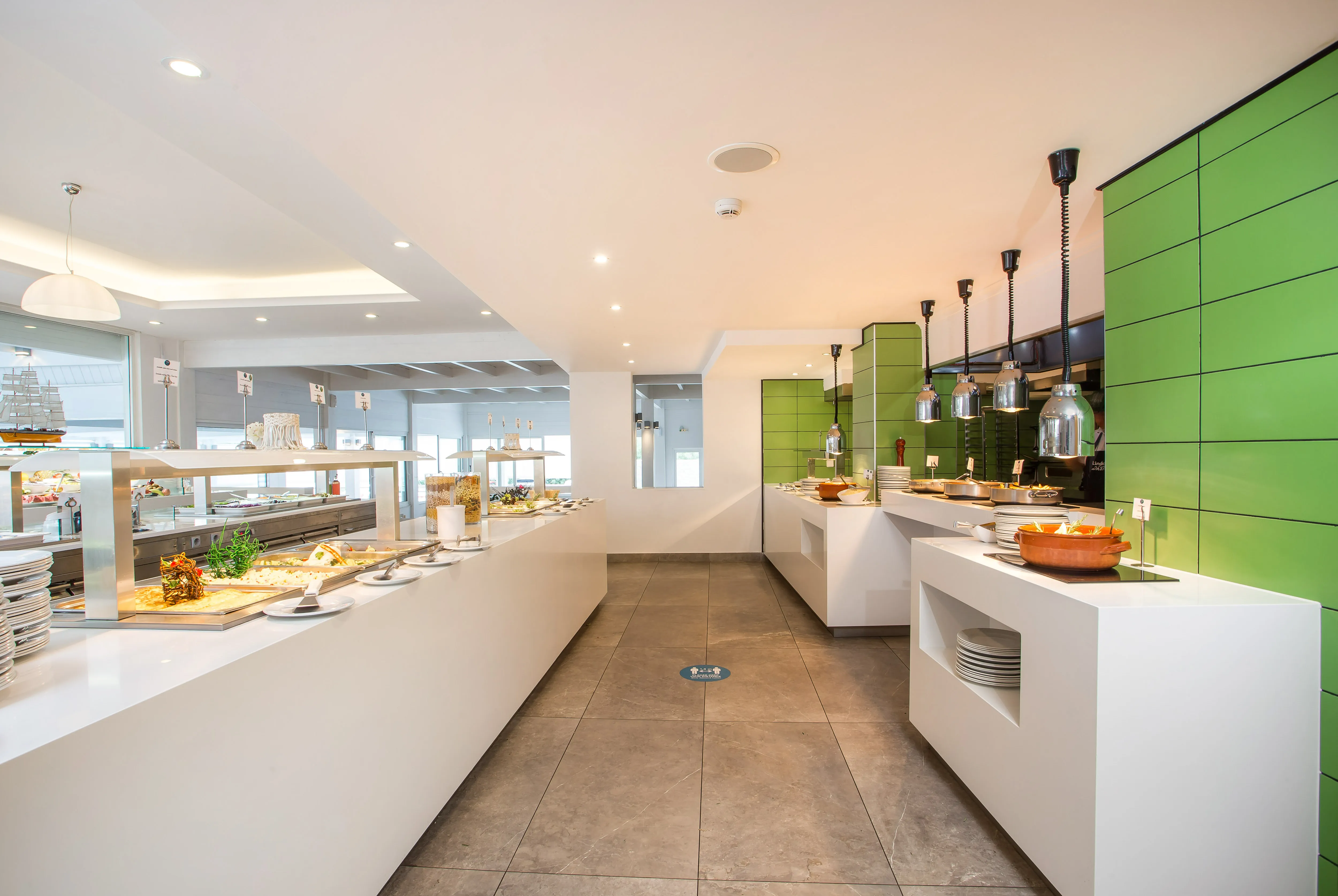 Breakfast; Breakfast buffet; Early bird breakfast; Buffet lunch; À la carte lunch; Buffet dinner; À la carte dinner; All inclusive; All inclusive with alcoholic drinks own brands; Vegetarian meal; Snacks Things to keep in mind:Identification card at arrival; Non-smoking establishment Sports:Windsurfing (Extra Fee); Table tennis; Billiards (Extra Fee); Tennis (Extra Fee); Darts Healthy & Safety (COVID):Greece - Health First