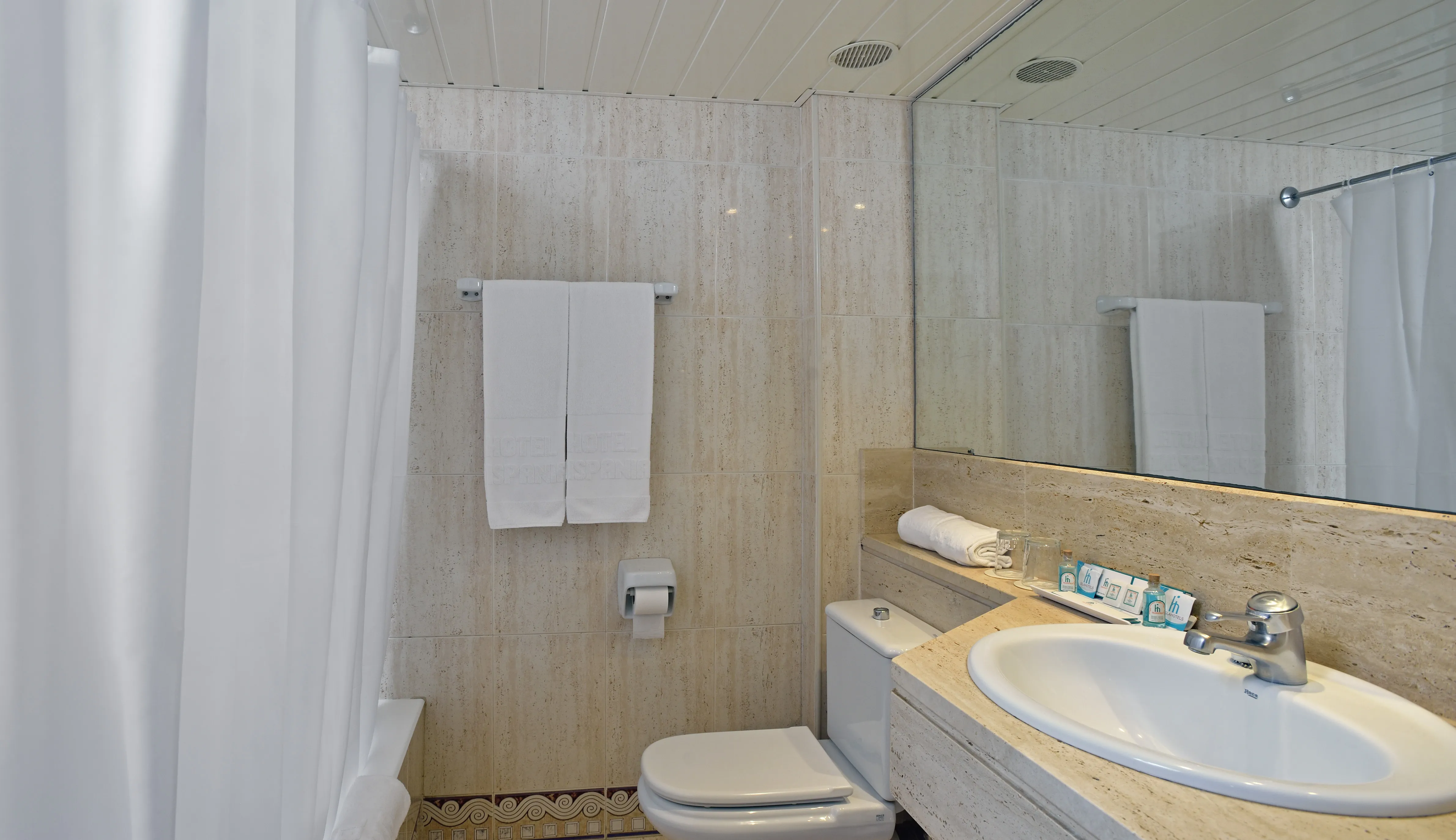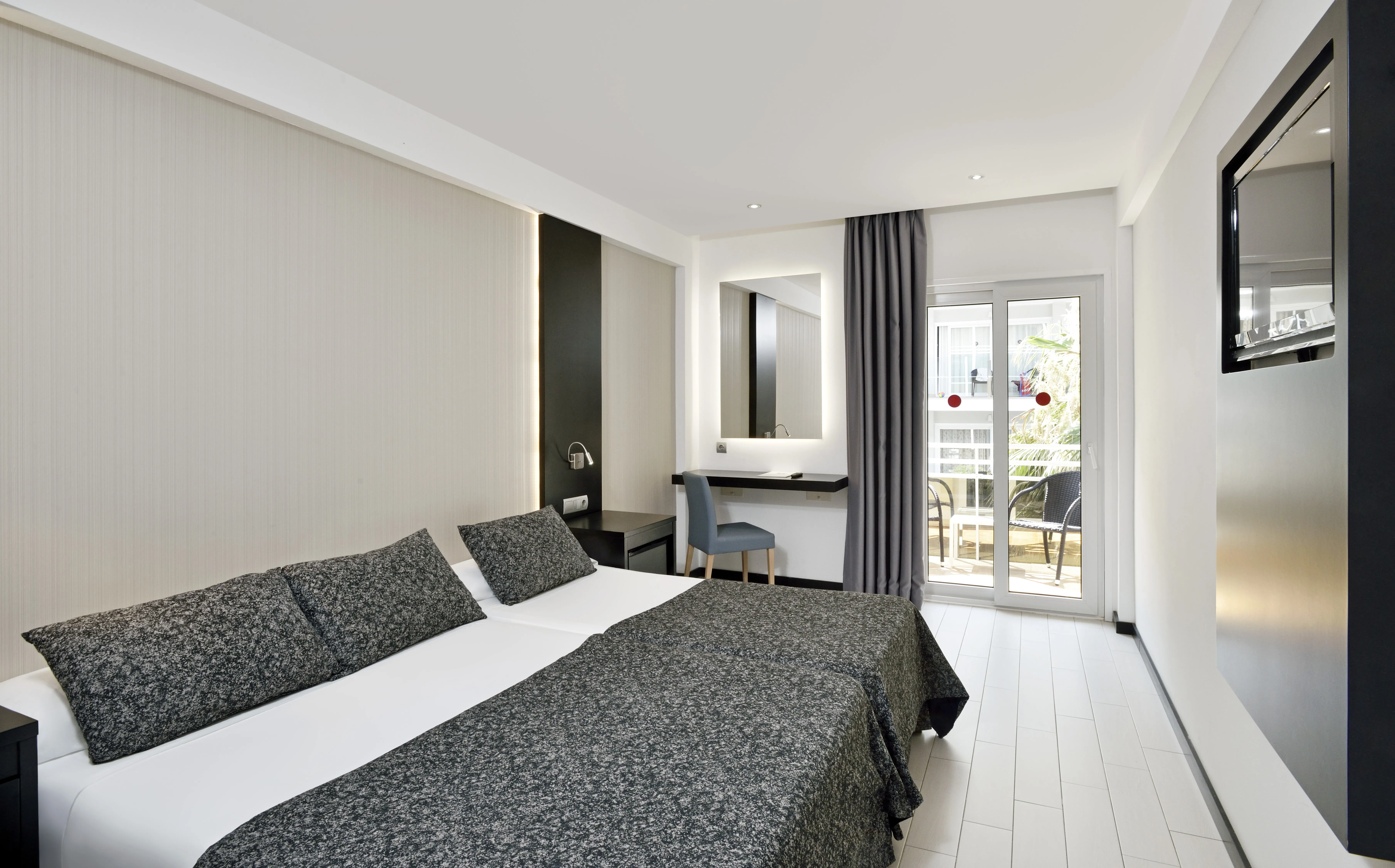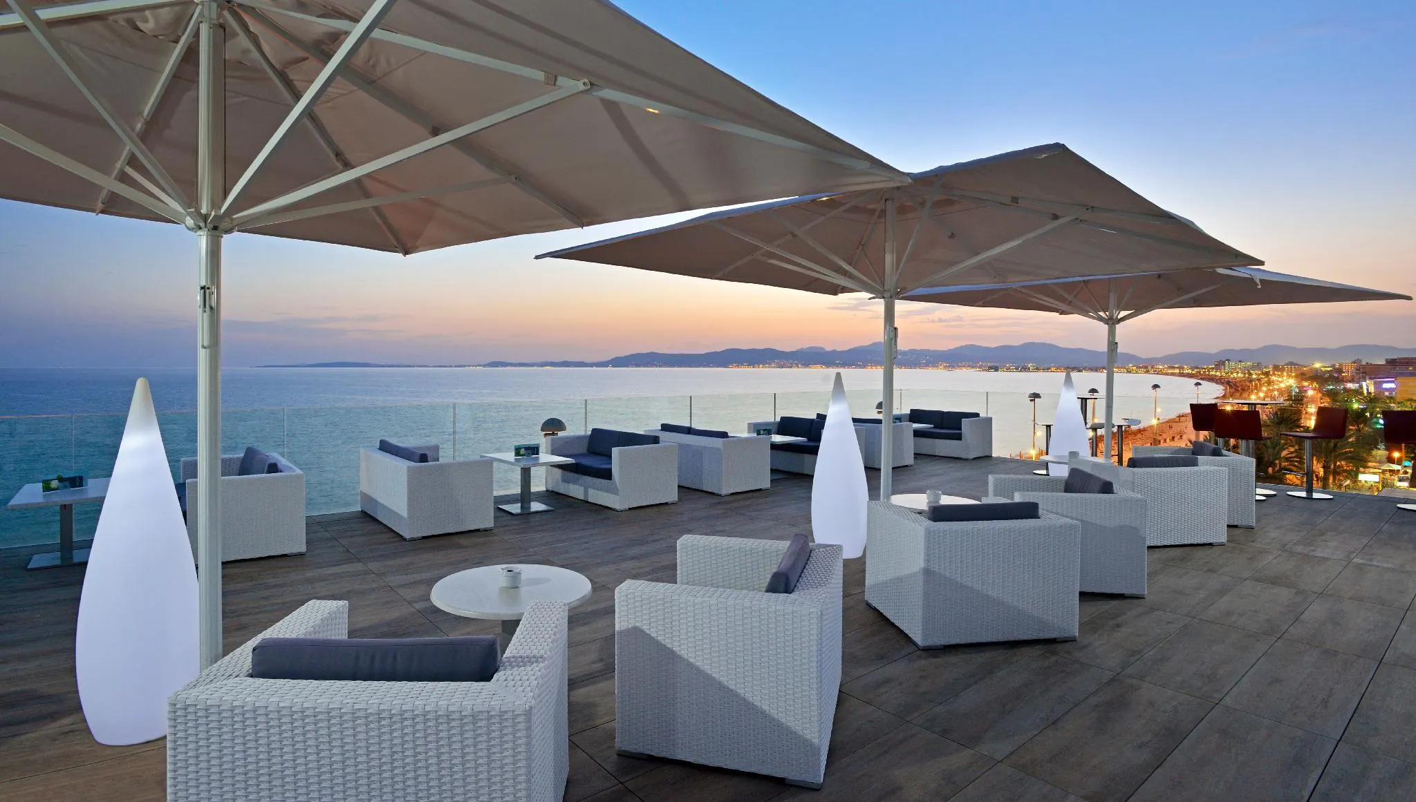Completely renovated Hotel in 2012, located on the seafront of Playa de Palma, is 5 minutes from the airport or 15 minutes from our capital city Palma de Mallorca, has taxi service and bus stops only 5 metres from it. The Hotel disposes of a sea view restaurant with show cooking, terrace and theme dinners and 3 bars: our sky bar located on the 5th floor, where you can enjoy the beautiful sea views overlooking the Bay of Palma during the day or the night, while enjoying a relaxing time in the solarium terrace with hot tub; The Cafetería Marítimo located on the beautiful palm lined promenade with sea view and our Bar Hotel Hispania situated on the main floor with view overlooking the pool, which offers its service in our spacious lounge and in the outside pool terrace. All our bars have food- and drinks service at our guests disposal. For free time: Spa&Wellness area (hot tub, steam bath, sauna, hydrotherapy showers and thermal beds), the gym overlooking the pool, a quiet reading area with beautiful sea views, the pool with special area for children or you can enjoy cycling in our privileged surroundings; for this purpose, we have a special garage. The 5.5 km beach with fine sand has access to the best premises and offers excellent entertaining services, where you can enjoy all kind of sports, especially water sports. Moreover we offer free WiFi connection throughout the Hotel and a meeting room with daylight. Rooms, which have been reformed between 2013 and 2018, are fully equipped also with free WiFi connection and complete bathroom. Location:1995 Year of most recent renovation; 164 Total number of rooms; 4 Number of floors (main building); 23 Single rooms; 141 Double rooms Hotel type:hotel Methods of payment:MasterCard; Visa Distances (in meters):Beach (25); Golf course (9900) Room facilities (Standard room):1 Number of bedrooms; Bathroom; Disability-friendly bathroom; Shower; Bathtub; Hairdryer; Toiletries; Make-up mirror; Wi-fi; Internet access; Direct dial telephone; TV; Satellite TV ; Cable TV; Alarm clock; Fridge; Mini fridge; Centrally regulated air conditioning; Individually adjustable air conditioning; Central heating; Individually adjustable heating ; Safe; Terrace; Wake-up service; Desk; Smoking rooms; Smoke detector; Housekeeping; Cot on demand; Fitness room; Solarium; Garden; Dining Area Facilities:Wheelchair-accessible; Car park (Extra Fee); 24-hour reception; Check-in hour; Check-out hour; Wi-fi (Extra Fee); Car hire (Extra Fee); Transfer service (Extra Fee); Airport Shuttle (Extra Fee); Room service (Extra Fee); Laundry service (Extra Fee); Medical service; Bicycle hire service; Multilingual staff; Bellboy service (Extra Fee); Air conditioning in public areas; Smoke detector; Hotel safe (Extra Fee); Cloakroom; Lift access; Garden; Terrace; Bicycle storage; Concierge; Sun terrace; Gym; Luggage room; 2 Dining area; 1 Private pool; Library; Towels and bed linen Catering:Café; Bar; Restaurant; Non-smoking area; Highchairs; Poolside snack bar; Show cooking; Air conditioning in Restaurant Business:Conference room; 1 Meeting room; Projector (Extra Fee); Printer (Extra Fee); Photocopier (Extra Fee); Business centre (Extra Fee); Audio-visual equipment rental (Extra Fee); Fax (Extra Fee) Entertainment:1 Outdoor freshwater pool; 1 Children’s swimming area; Sun loungers; Parasols; TV lounge Health:Sauna (Extra Fee); Steam bath (Extra Fee); Hot tub; Turkish bath (hamam); Solarium ; Massage (Extra Fee); Spa centre (Extra Fee)