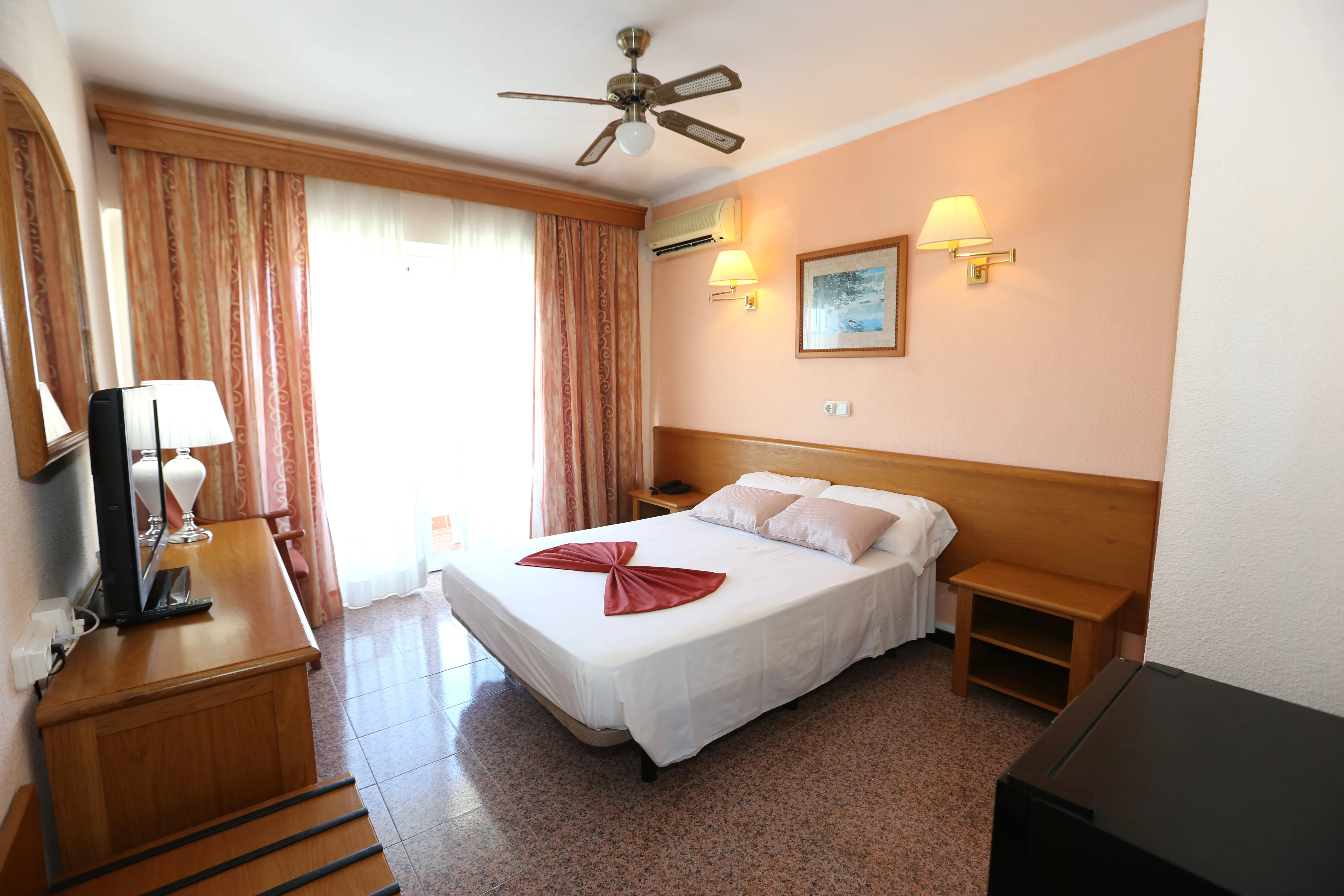 This charming hotel is situated in a side street in the centre of El Arenal. Within walking distance guests will be able to reach the endless local beach, which is located 600 m away. Countless opportunities for shopping and entertainment are within easy reach, either on foot or by bus. It is a perfect location for those who wish to spend holidays beside the beach in a vibrant and touristic area. Location:2002 Year of most recent renovation; 195 Total number of rooms; 5 Number of floors (main building); 5 Single rooms; 95 Double rooms Hotel type:hotel Methods of payment:American Express; MasterCard; Visa; Visa Electrón Distances (in meters):City centre (15000); Nearest Bus / Metro Stop (160); Airport (11400); Beach (600); Golf course (7900); Entertainment Area (600) Room facilities (Standard room):1 Number of bedrooms; Bathroom; Disability-friendly bathroom; Shower; Hairdryer; Wi-fi (Extra Fee); Internet access; Direct dial telephone; Satellite TV ; Fridge; Central heating; Balcony; Wheelchair-accessible; Smoking rooms Facilities:Wheelchair-accessible; Car park; 24-hour reception; Check-in hour; Check-out hour; Late Check-out (Extra Fee); Wi-fi (Extra Fee); Local and international calls (Extra Fee); Room service; Laundry service; Launderette (Extra Fee); Bicycle hire service (Extra Fee); Multilingual staff; Smoke detector; Hotel safe (Extra Fee); Lift access; Terrace; Concierge; Sun terrace; Luggage room; Clothes dryer Catering:Café; Bar; Restaurant; Non-smoking area; Poolside snack bar; Show cooking Business:Conference room; Meeting room Entertainment:1 Indoor freshwater pool; 1 Outdoor freshwater pool; Sun loungers; TV lounge Health:Hot tub