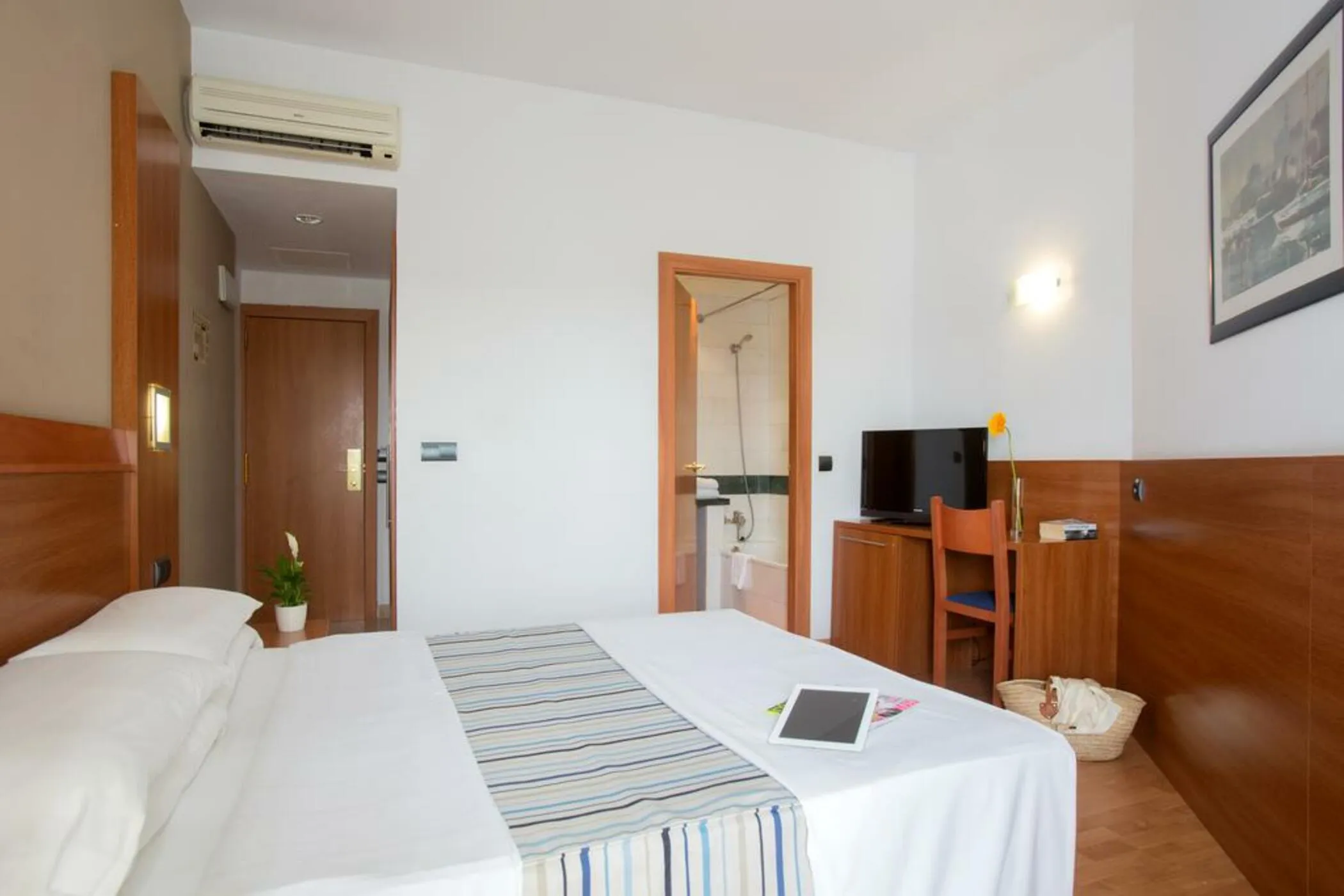 The hotel is located in one of the most active areas of the island, El Arenal. It is an ideal place for young people and groups of friends who want to enjoy the more lively nightlife of the island. It is very close to Son Veri forest and about 600 meters away from the beach. The airport is located 6 km away and the city of Palma de Mallorca is 10 km from the hotel. Location:1964 Year of construction; 2006 Year of most recent renovation; 112 Total number of rooms; 7 Number of floors (main building); 24 Single rooms; 86 Double rooms; 2 Disability-friendly rooms Hotel type:hotel Methods of payment:American Express; MasterCard; Visa Distances (in meters):City centre (500); Bus/Train station (50); Airport (6000); Harbour (8000); Beach (700); Golf course (7900) Room facilities (Standard room):1 Number of bedrooms; 1 Bathroom; Disability-friendly bathroom; Hairdryer; Wi-fi (Extra Fee); Direct dial telephone; Satellite TV ; Individually adjustable air conditioning; Individually adjustable heating ; Safe; Wheelchair-accessible; Desk; Smoking rooms; Smoke detector; Extra beds on demand Facilities:Wheelchair-accessible; Car park; 24-hour reception; Check-in hour; Check-out hour; Wired Internet (Extra Fee); Wi-fi (Extra Fee); Car hire (Extra Fee); Transfer service (Extra Fee); Airport Shuttle (Extra Fee); Laundry service (Extra Fee); Medical service (Extra Fee); Bicycle hire service (Extra Fee); Multilingual staff; 24-hour security; Air conditioning in public areas; Smoke detector; Hotel safe (Extra Fee); Currency exchange facilities; Lift access; Terrace; Sun terrace; Luggage room Catering:Bar; Restaurant; Poolside snack bar; Air conditioning in Restaurant Entertainment:1 Outdoor freshwater pool; 1 Children’s swimming area; Sun loungers; Parasols; TV lounge
