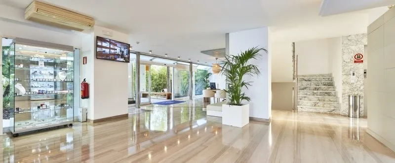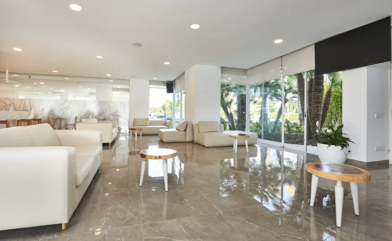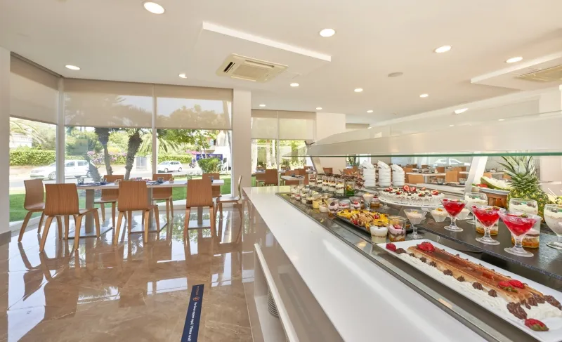 The hotel Globales Cala Bona Suites is located approximately 150 m from a beach. The hotel is equipped with a 24h reception, Wi-Fi, a lift, a jacuzzi as well as showers and changing rooms. In the outdoor area you will find a garden as well as a pool that is open seasonally, where sun loungers and sun umbrellas are available for free. There is also a separate children's pool. Furthermore, you can relax outdoors on the sun terrace. Inside the hotel you can use an indoor pool. For very young guests, cots can also be provided. There is also a laundry service available at an additional cost to customers. If necessary, you can contact the medical centre (for a fee). The energy supply is 220 Volts. If you want to explore the holiday region, you can use the car rental service close to the hotel (extra fee). Euro/Master Card and Visa are accepted as means of payment. Due to its barrier-free facilities , such as barrier-free entrances, the hotel is also suitable for wheelchair users. Catering Breakfast is offered from the buffet. Lunch and dinner are also served from the buffet. For the meals, there are a buffet restaurant with terrace and the pool bar. The drinks menu of the hotel includes water, soft drinks, beer and wine. Distances