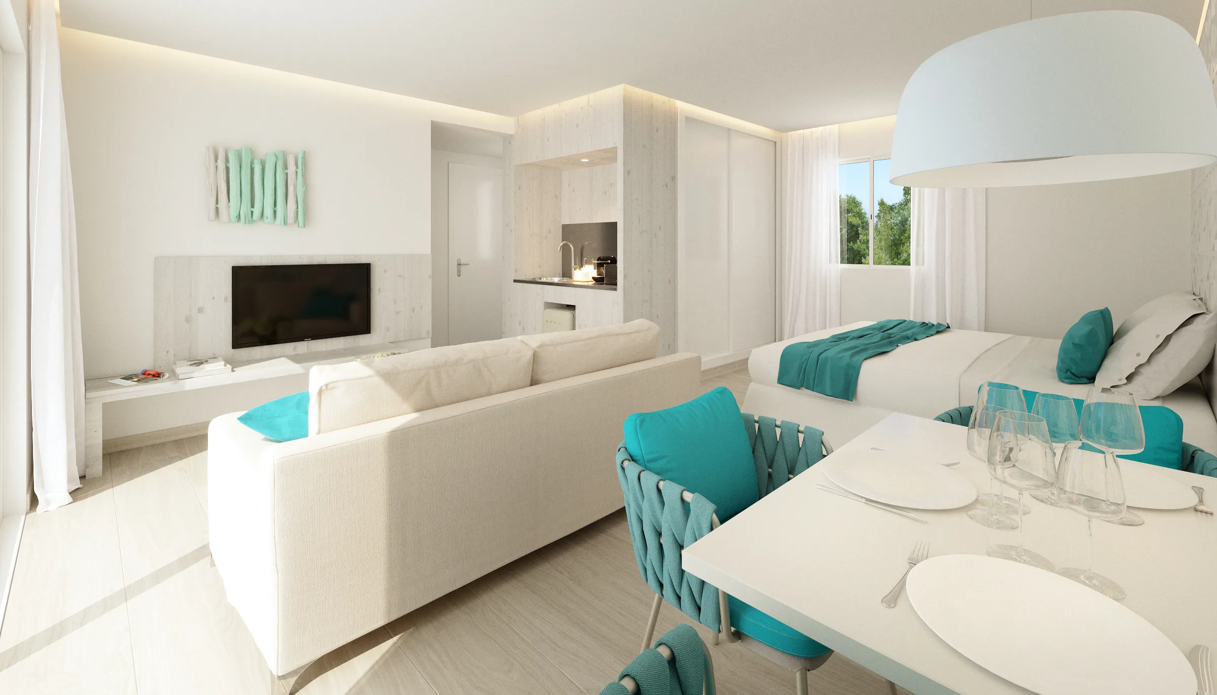 Breakfast buffet; Buffet lunch; Buffet dinner; All inclusive with alcoholic drinks own brands; Snacks Sports:Aqua fit; Table tennis; Aerobics; Fitness; Archery; Horse riding (Extra Fee); Beach volleyball; Paddle tennis; Darts; Golf practice facility (Extra Fee) Healthy & Safety (COVID):Spain - Safe Tourism Certified