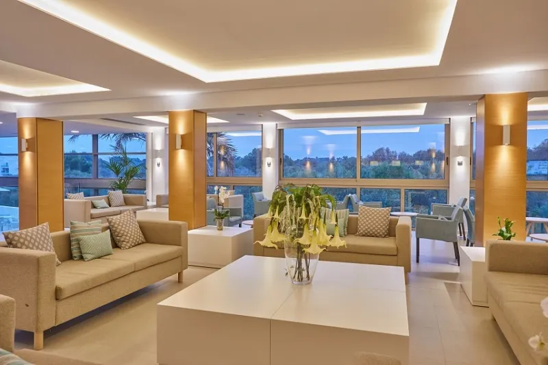 In the vicinity of the sandy beach is located the hotel Monsuau Cala D’Or Hotel - Adults Only. The beach is patrolled by a lifeguard. Here, there are beach towels available. The air-conditioned hotel has a 24h reception (check-in is possible around the clock), a lobby bar, Wi-Fi, 5 lifts, a jacuzzi, showers and changing rooms, a first aid kit, parking spaces as well as a TV lounge with satellite TV. In the outdoor area you will find a garden as well as a pool that is open seasonally (open all year), where sun loungers, sun umbrellas and pool towels are available for free. Furthermore, outside you can find a terrace. You can store your valuables in the safe, and your luggage in the hotel`s storage room. There is also a laundry and ironing service. For your comfort, in addition to the concierge service the hotel page will ensure you are looked after. If necessary, you can contact the medical centre at any time. Guests at the accommodation can get a wake-up call from the hotel personnel. If you want to explore the holiday region, you can use the car and motorbike rental service close to the hotel (extra fee). At the reception, tickets are offered for excursions in the area. For guests on their honeymoon, the hotel has special offers such as special honeymoon packages. In your hotel, a lot of focus is placed on sustainability. This includes the hotel`s own recycling bins and organic food and ecological meals. The hotel requires that all guests pay a deposit upon arrival. Due to its barrier-free facilities , such as barrier-free entrances, wheelchair accessible rooms and wheelchair-accessible bathrooms, the hotel is also suitable for wheelchair users. Catering As catering services the hotel offers half board. Breakfast is offered from the buffet. Dinner is served as a set meal or à la carte. For the meals, there are a buffet restaurant with terrace (calorie-reduced, gluten-free and vegetarian dishes) and 2 bars, the cafeteria as well as the pool bar. A picnic bench can be used by guests for self-catering. Sports & Leisure In the surrounding you can try your hand for example at water aerobics. During your holiday you can also take part in aerobics and yoga courses. For cyclists there is a bicycle rental (extra fee). For your wellbeing the hotel also offers massages (extra fee). In terms of adult entertainment, live music is presented on certain days. Additional information The hotel has a total of 109 rooms.