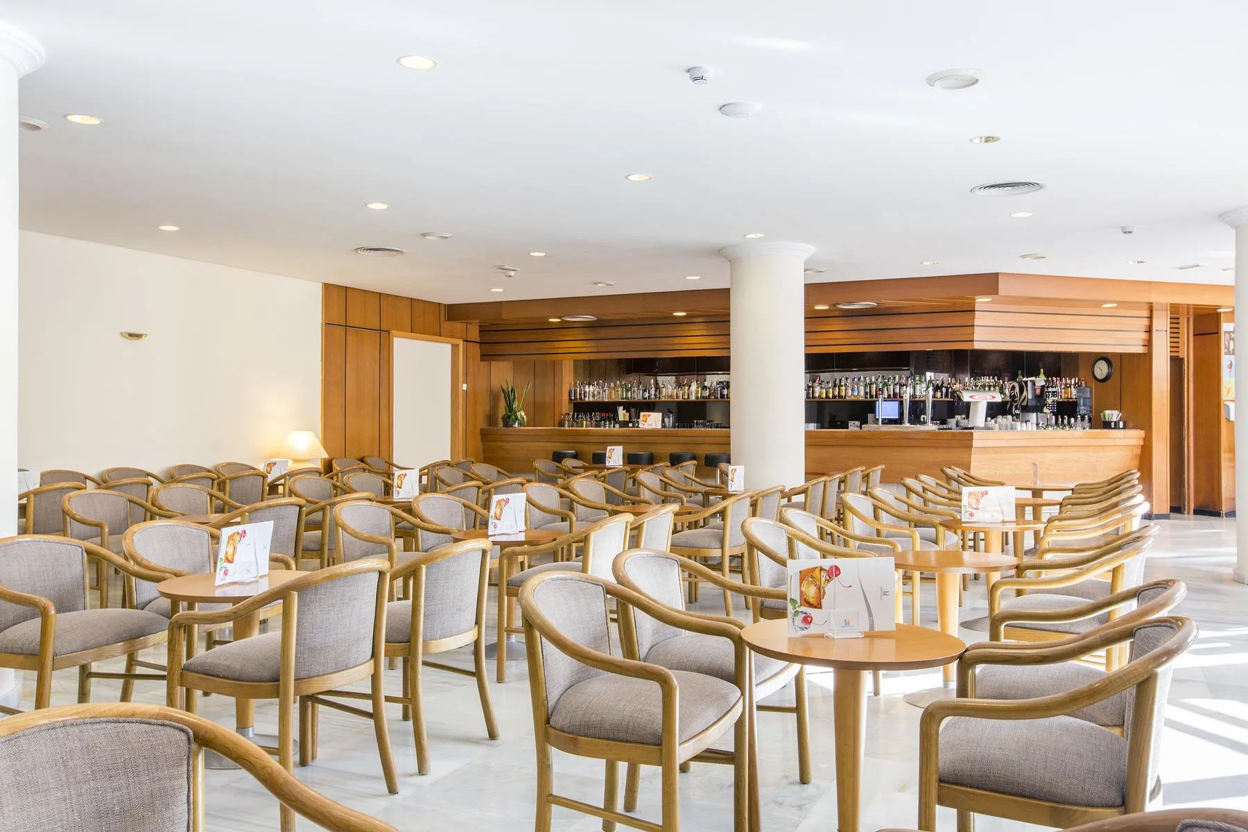 The 7-storey hotel has 159 rooms, and spread over one main building and one adjoining building. It is equipped with a 24h reception (check-in from 14:00, check-out until 12:00), a lobby, 4 lifts, an air conditioning, a safe (for a fee), a security entry system as well as a money changing facility. For the meals, there is a restaurant (air-conditioned) and a snack bar. You can relax in good company in the hotel bar. WiFi is available for free. For guests dependent on a wheelchair the hotel has a wheelchair accessible lift and a number of wheelchair accessible bathrooms. Laundry / ironing service and medical service are available for a fee. For the room cleaning and concierge service the hotel charges a fee (where applicable). Pool: In the outdoor area of the mediterranean-style hotel you will find one fresh water pool (approx. 108 m²) with a children´s pool (open from June to September). Here, there are sun loungers and sun umbrellas for free available. Refreshing beverages can be consumed directly at the pool bar.